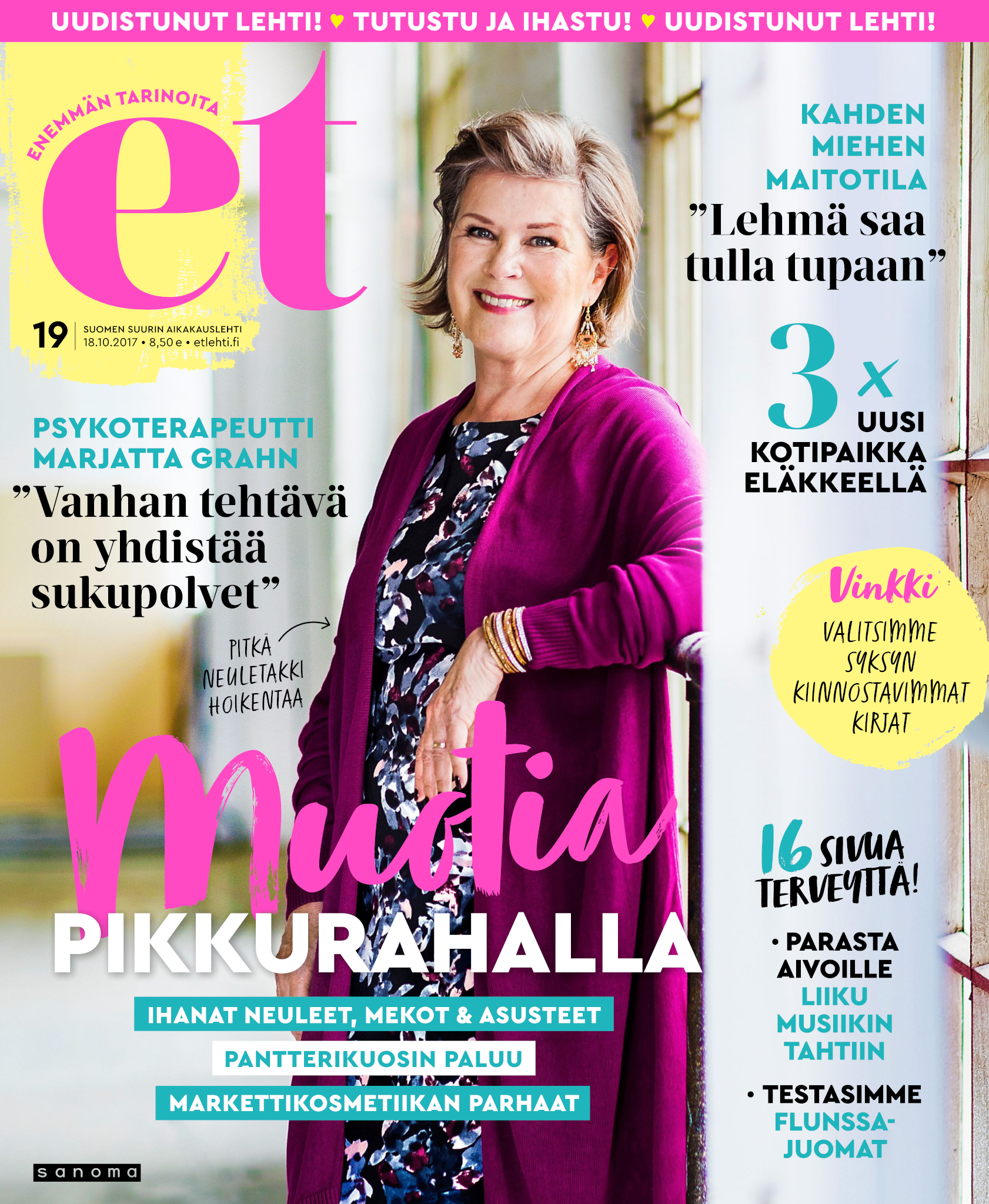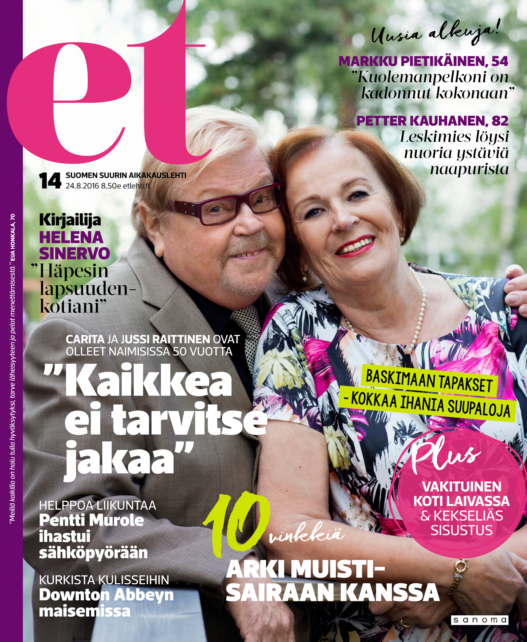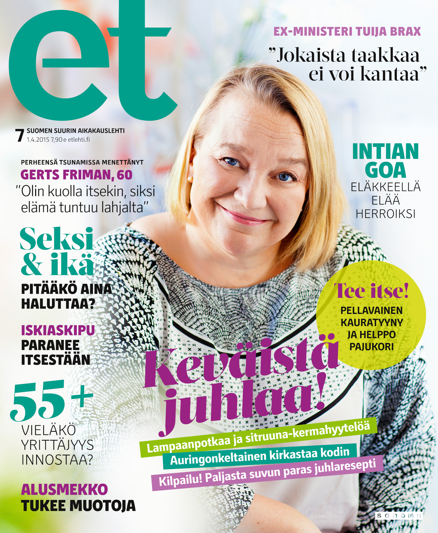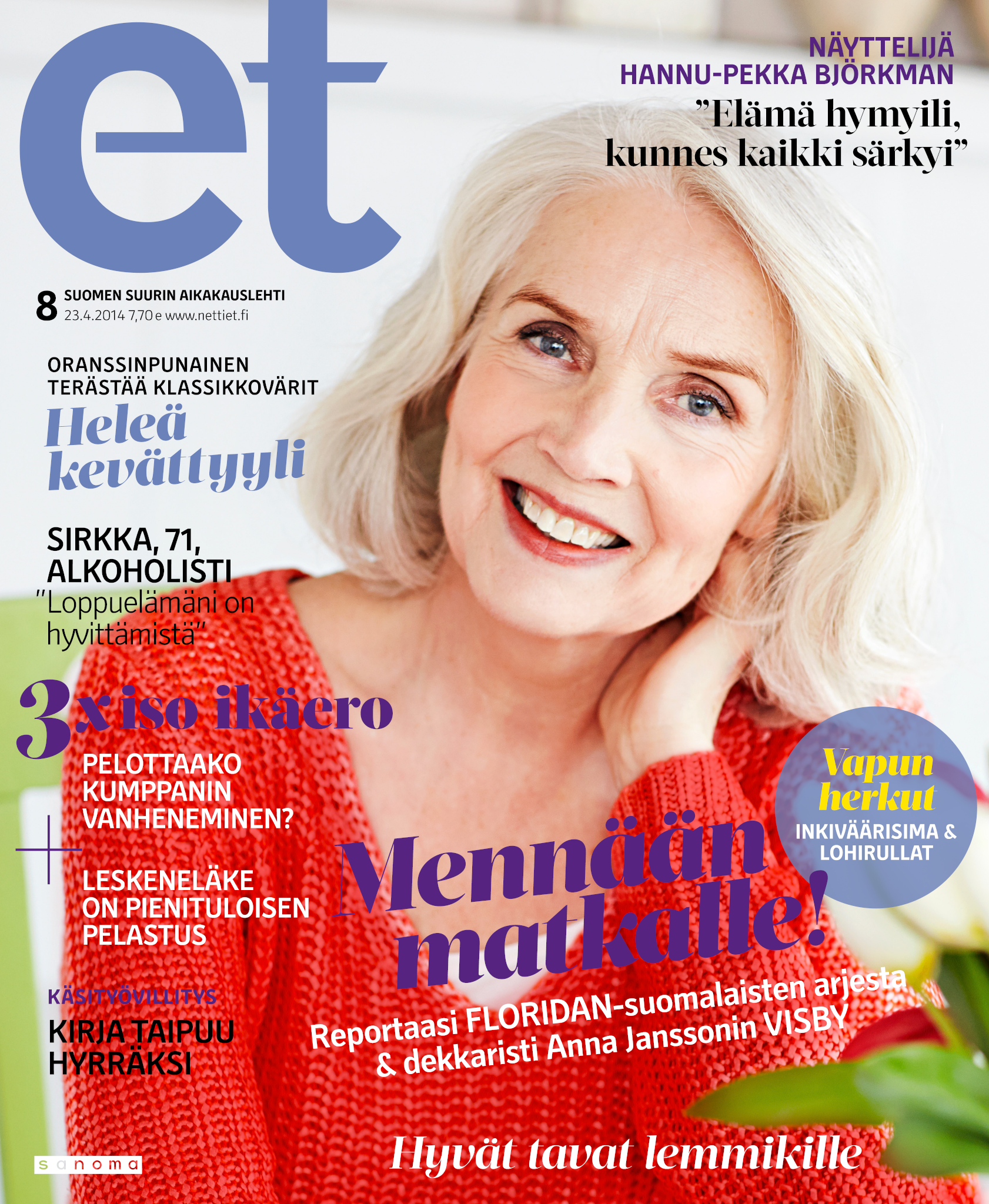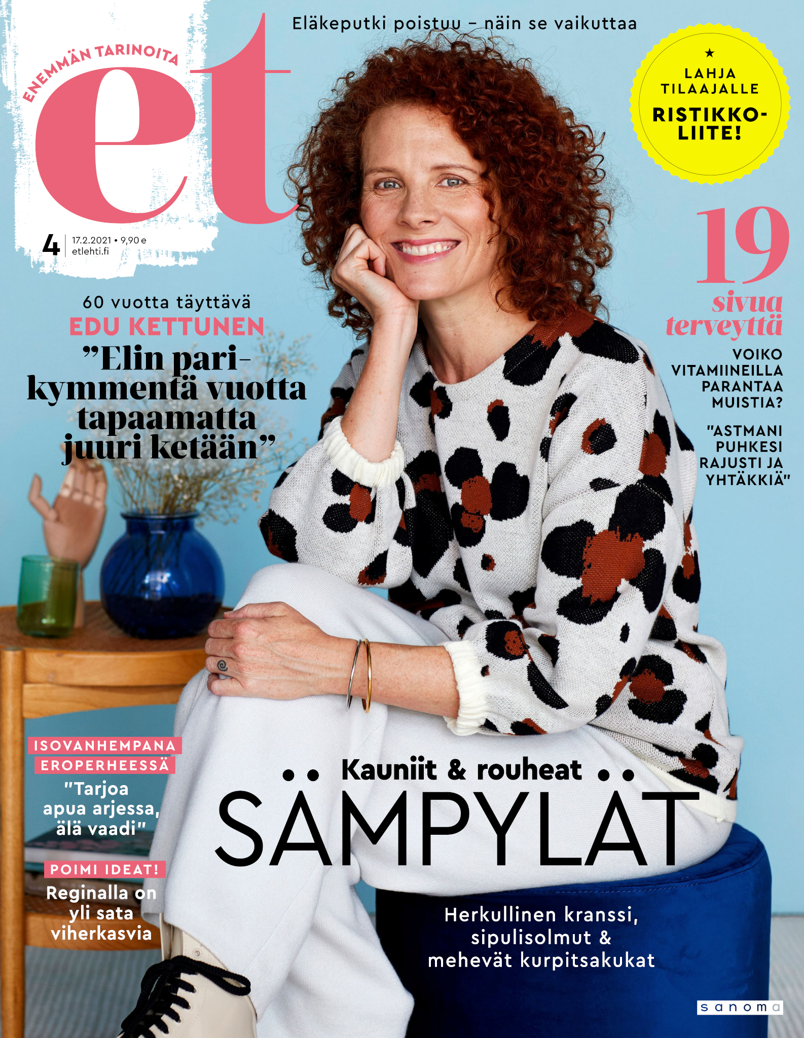 Tervetuloa mukaan ET:n innostavaan seuraan! Annamme vertaistukea ja tarjoamme hyötytiedon lisäksi nautinnollisia lukujuttuja kiinnostavista ihmisistä ja heidän elämänkohtaloistaan. ET kannustaa elämään omannäköistä elämää. Nautiskele arjen arvokkaista, pienistä asioista tai hanki uusia kokemuksia, löydä uusia kiinnostuksen kohteita tai löhöä sohvalla vaikka koko päivä! Kaikki käy! Me ET:ssä uskomme, että uteliaisuus elämän pieniä ja suuria asioita kohtaan pitää jokaisen päivän mielenkiintoisena ja mielen avoimena uusille kokemuksille. Uusi elämänvaihe on ihana ja jännittävä - otetaan siitä kaikki irti!