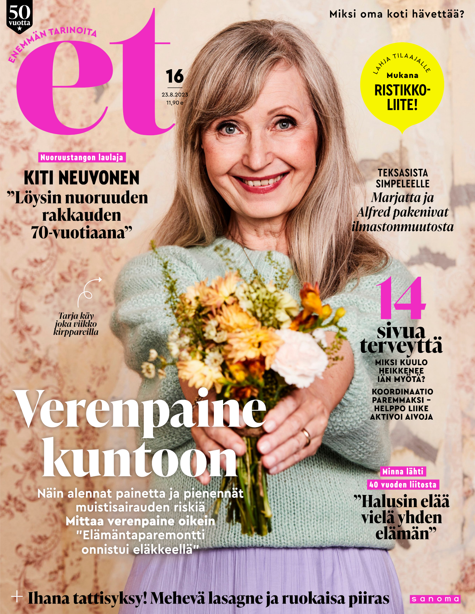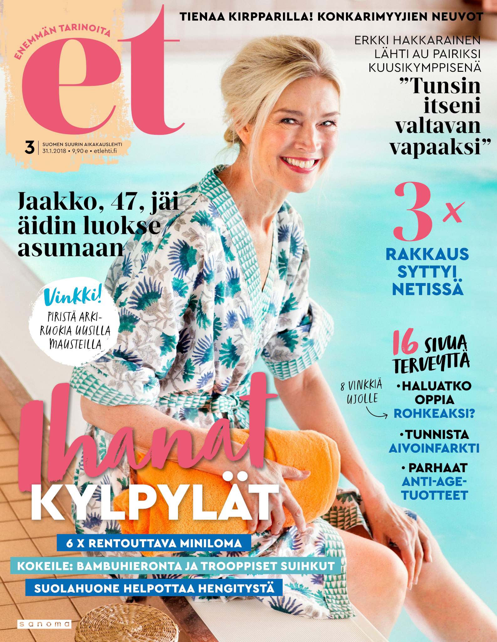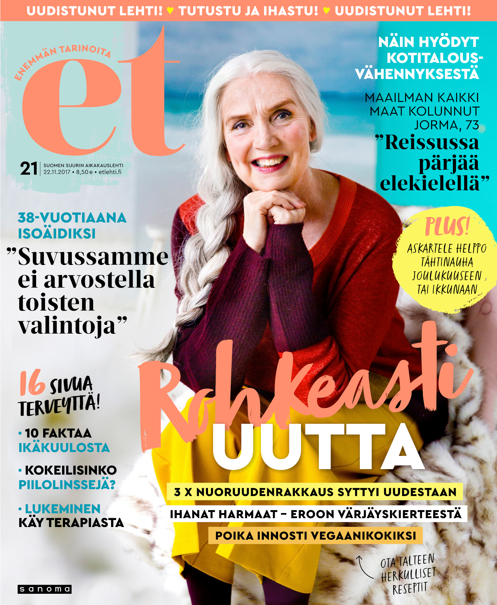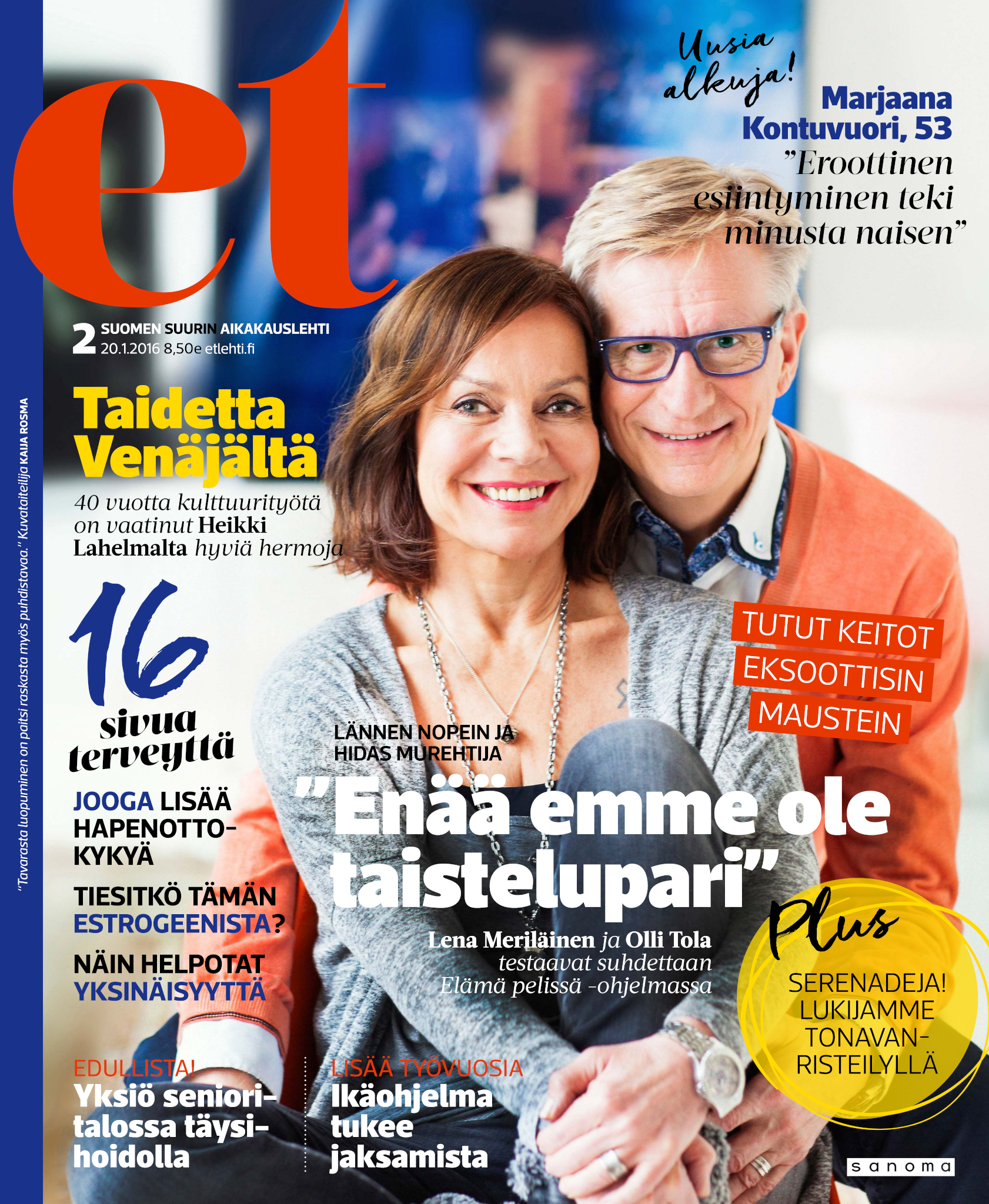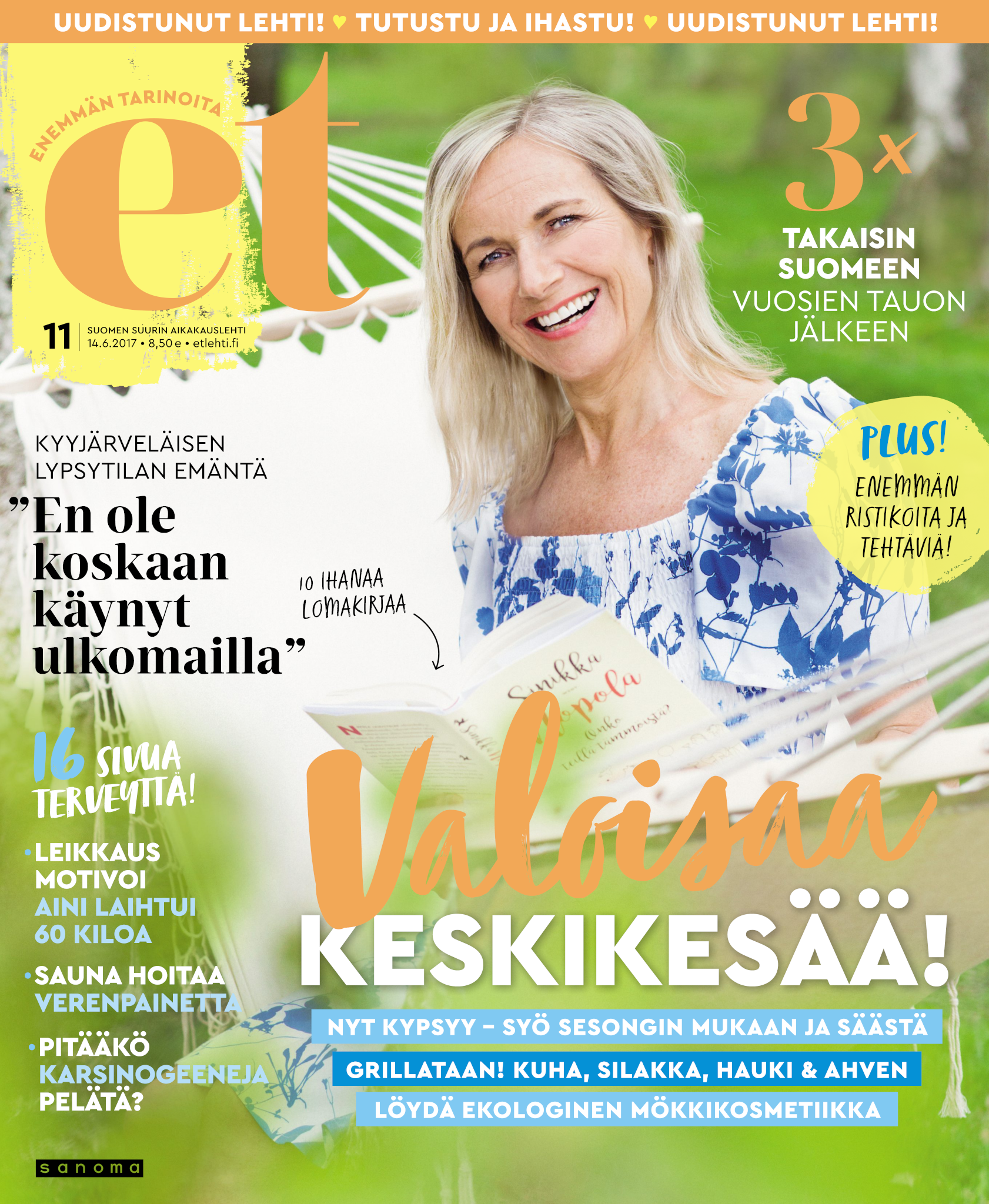 Tervetuloa mukaan ET:n innostavaan seuraan! Annamme vertaistukea ja tarjoamme hyötytiedon lisäksi nautinnollisia lukujuttuja kiinnostavista ihmisistä ja heidän elämänkohtaloistaan. ET kannustaa elämään omannäköistä elämää. Nautiskele arjen arvokkaista, pienistä asioista tai hanki uusia kokemuksia, löydä uusia kiinnostuksen kohteita tai löhöä sohvalla vaikka koko päivä! Kaikki käy! Me ET:ssä uskomme, että uteliaisuus elämän pieniä ja suuria asioita kohtaan pitää jokaisen päivän mielenkiintoisena ja mielen avoimena uusille kokemuksille. Uusi elämänvaihe on ihana ja jännittävä - otetaan siitä kaikki irti!