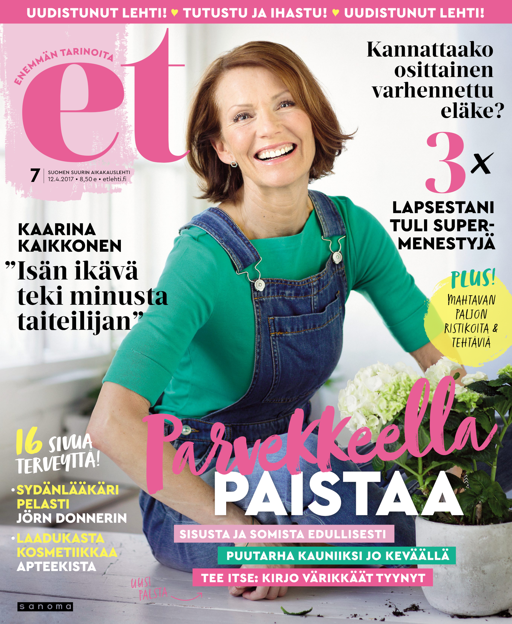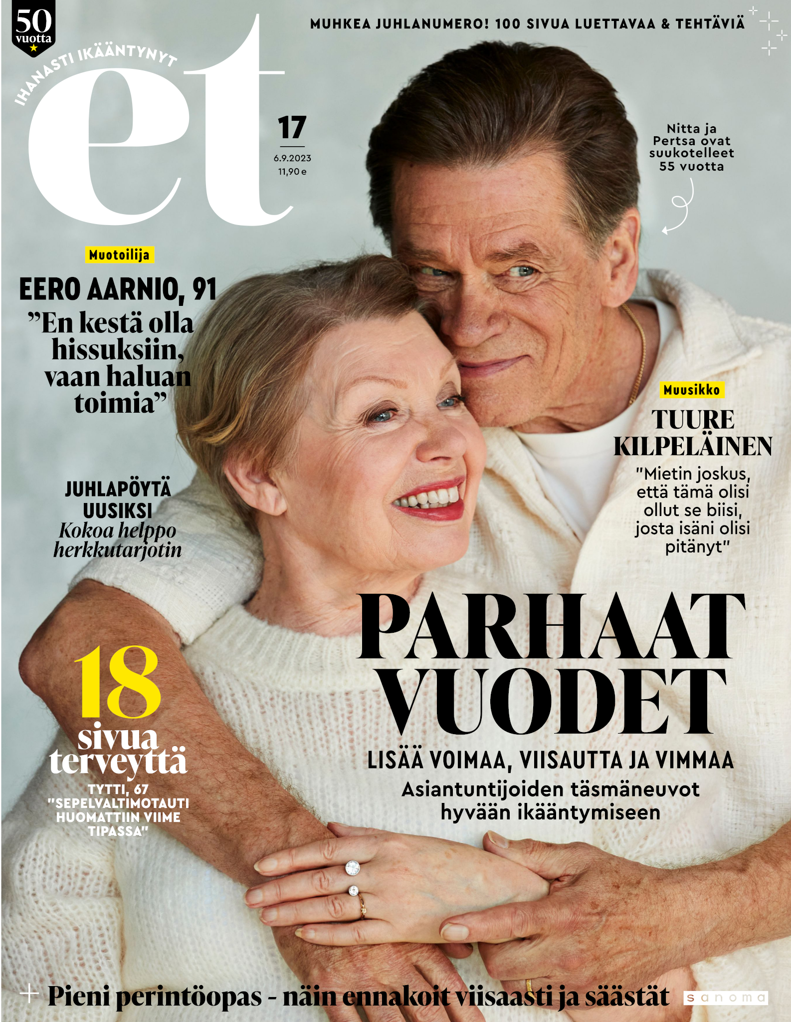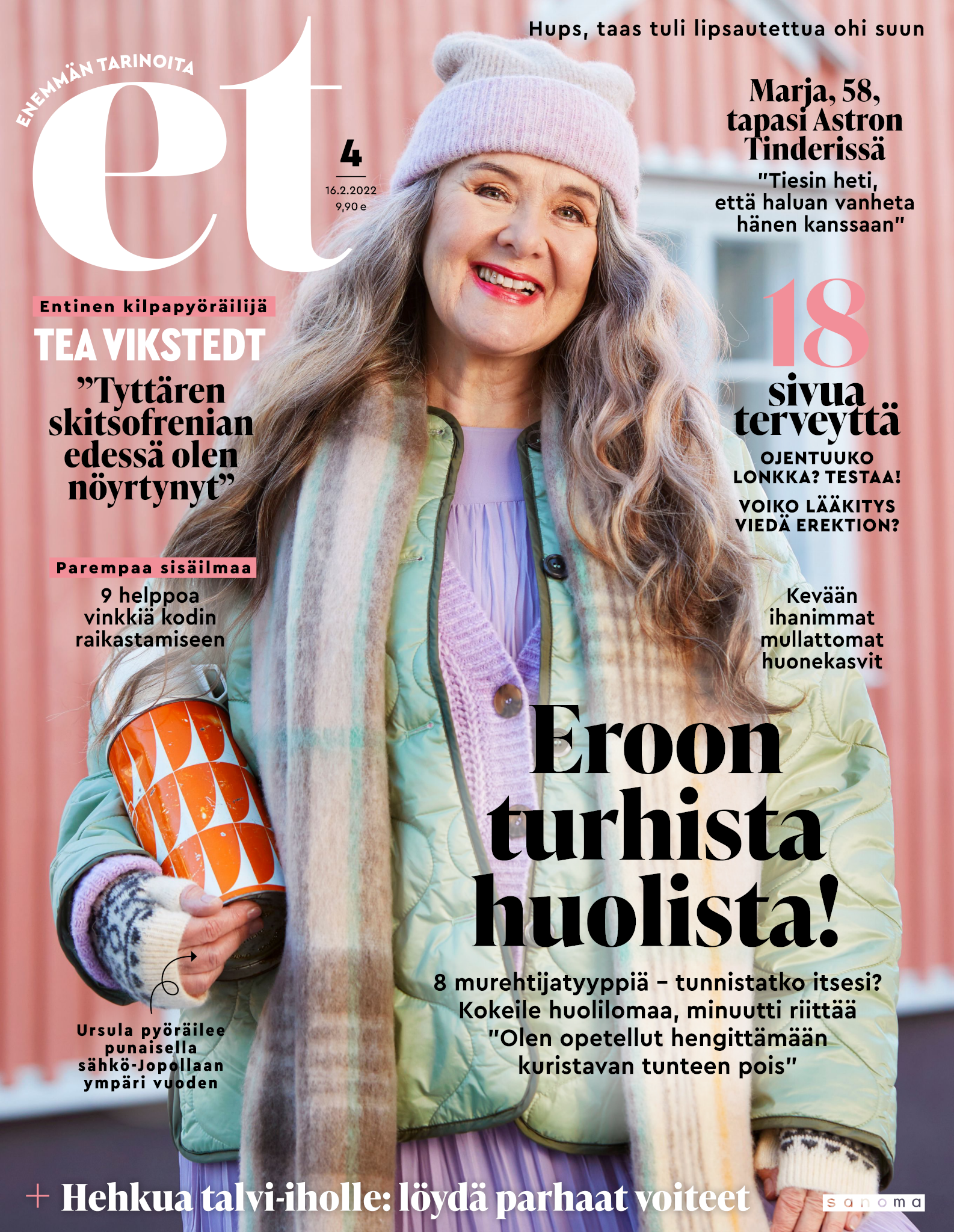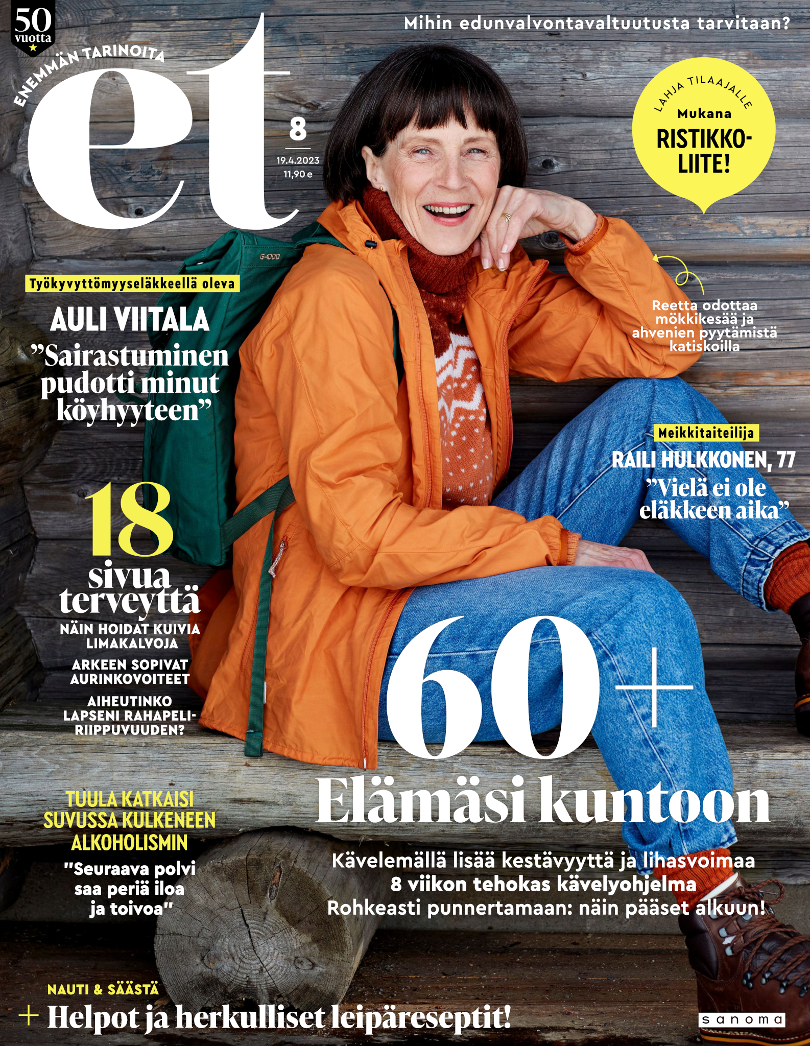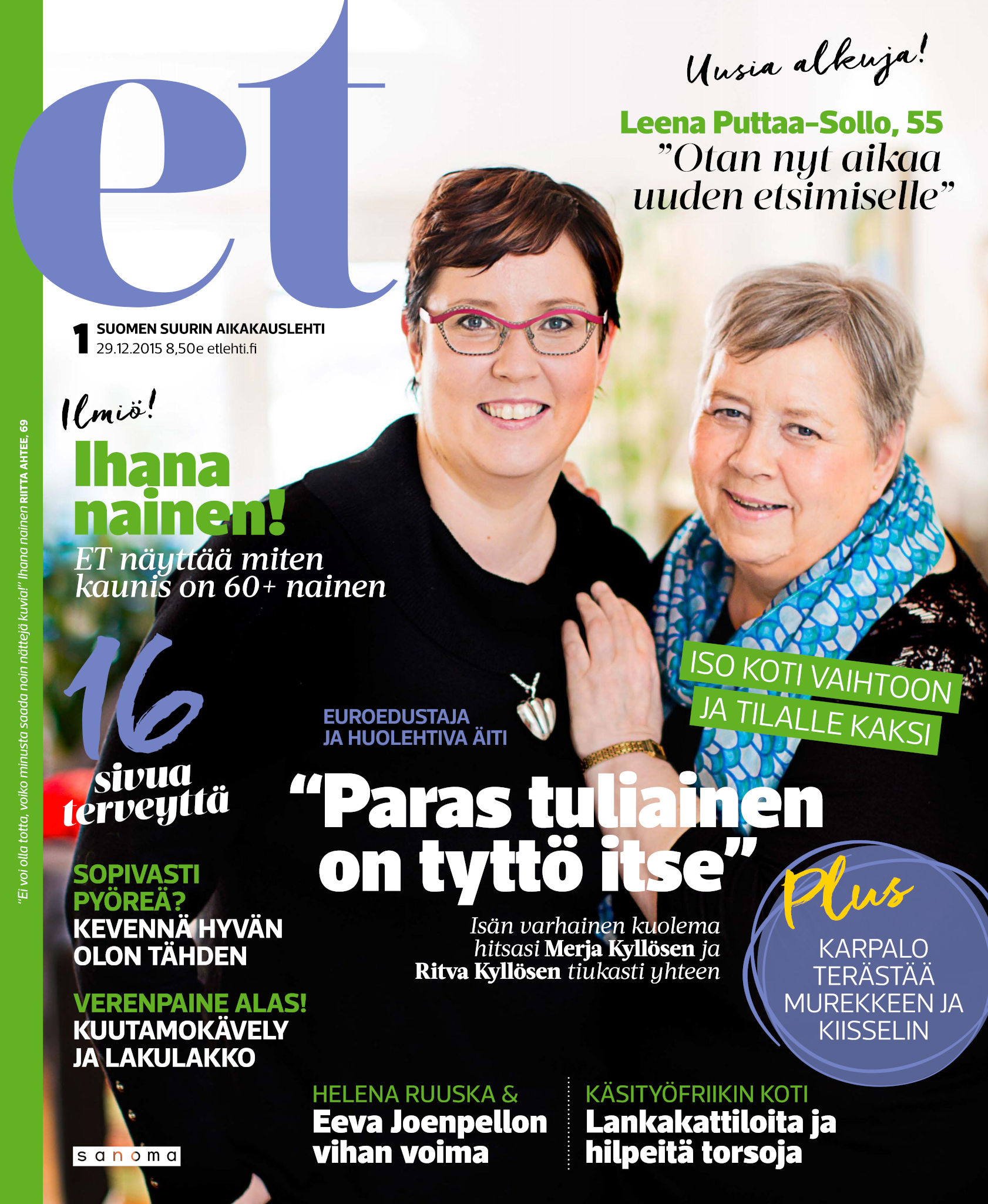 Tervetuloa mukaan ET:n innostavaan seuraan! Annamme vertaistukea ja tarjoamme hyötytiedon lisäksi nautinnollisia lukujuttuja kiinnostavista ihmisistä ja heidän elämänkohtaloistaan. ET kannustaa elämään omannäköistä elämää. Nautiskele arjen arvokkaista, pienistä asioista tai hanki uusia kokemuksia, löydä uusia kiinnostuksen kohteita tai löhöä sohvalla vaikka koko päivä! Kaikki käy! Me ET:ssä uskomme, että uteliaisuus elämän pieniä ja suuria asioita kohtaan pitää jokaisen päivän mielenkiintoisena ja mielen avoimena uusille kokemuksille. Uusi elämänvaihe on ihana ja jännittävä - otetaan siitä kaikki irti!