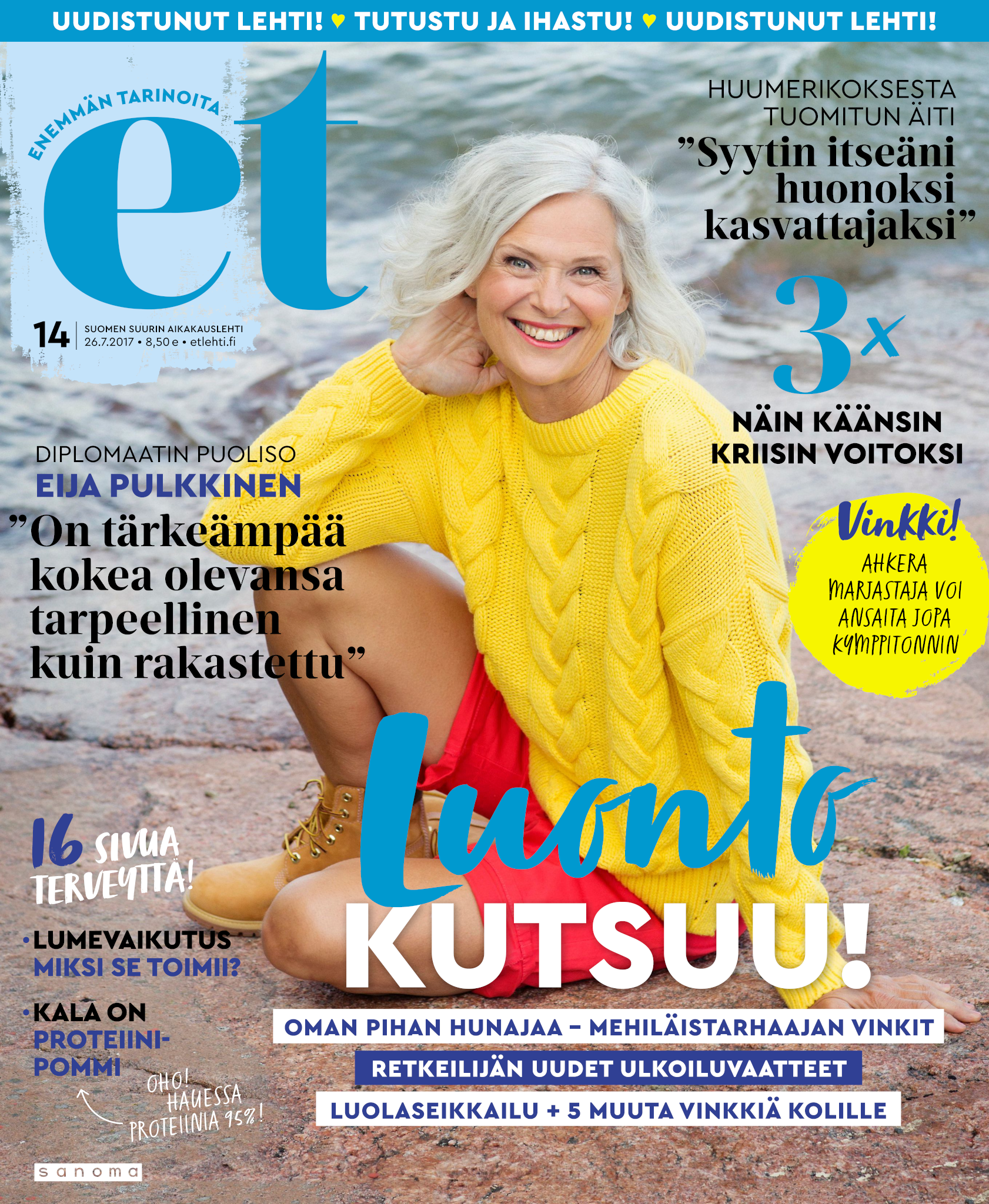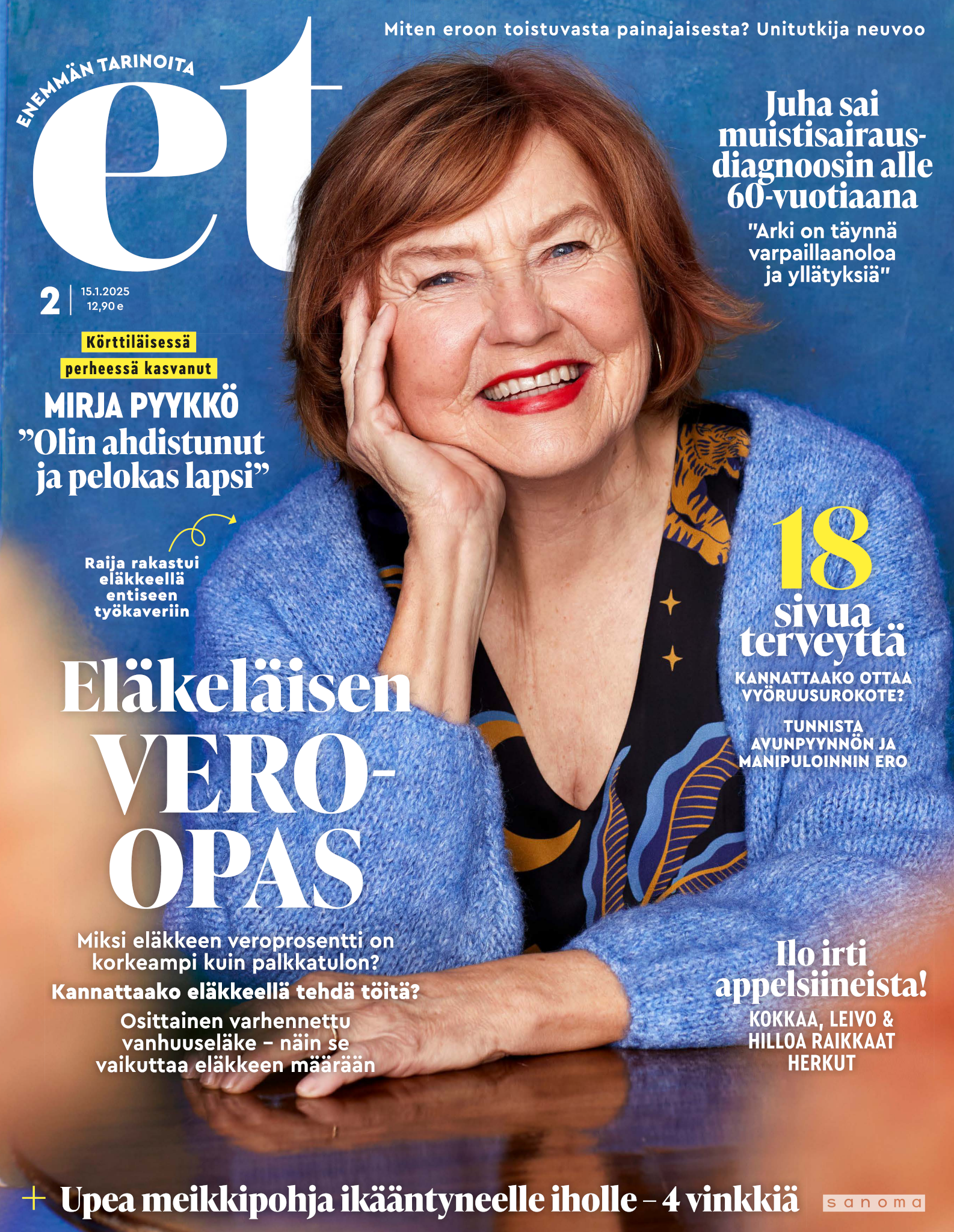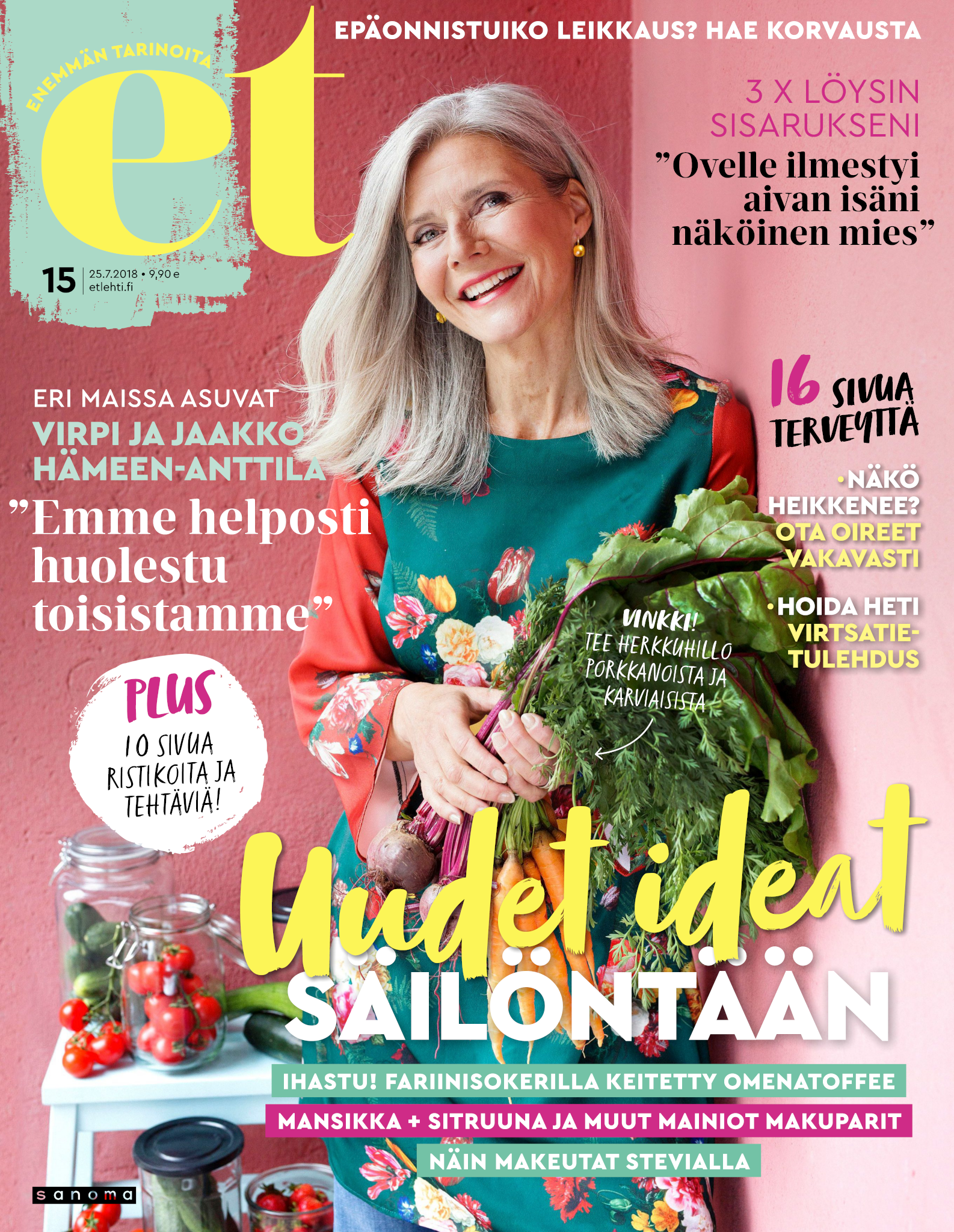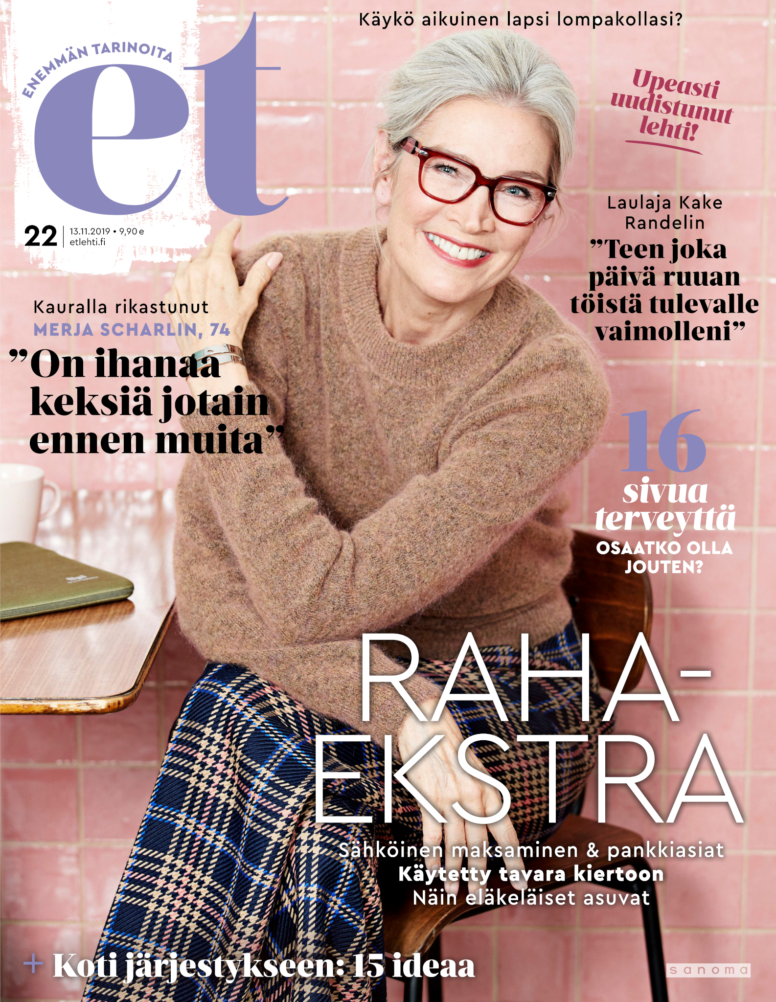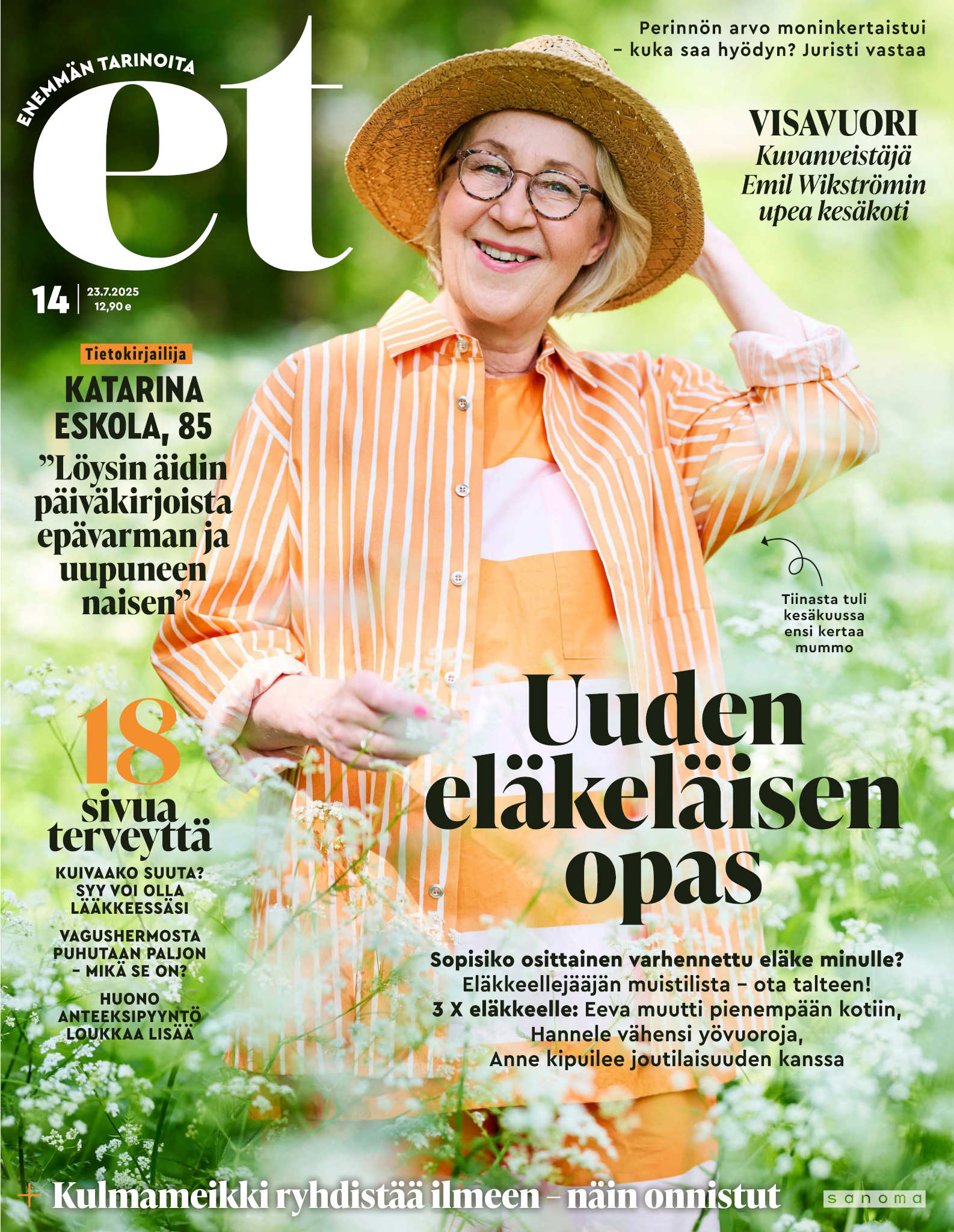 Tervetuloa mukaan ET:n innostavaan seuraan! Annamme vertaistukea ja tarjoamme hyötytiedon lisäksi nautinnollisia lukujuttuja kiinnostavista ihmisistä ja heidän elämänkohtaloistaan. ET kannustaa elämään omannäköistä elämää. Nautiskele arjen arvokkaista, pienistä asioista tai hanki uusia kokemuksia, löydä uusia kiinnostuksen kohteita tai löhöä sohvalla vaikka koko päivä! Kaikki käy! Me ET:ssä uskomme, että uteliaisuus elämän pieniä ja suuria asioita kohtaan pitää jokaisen päivän mielenkiintoisena ja mielen avoimena uusille kokemuksille. Uusi elämänvaihe on ihana ja jännittävä - otetaan siitä kaikki irti!