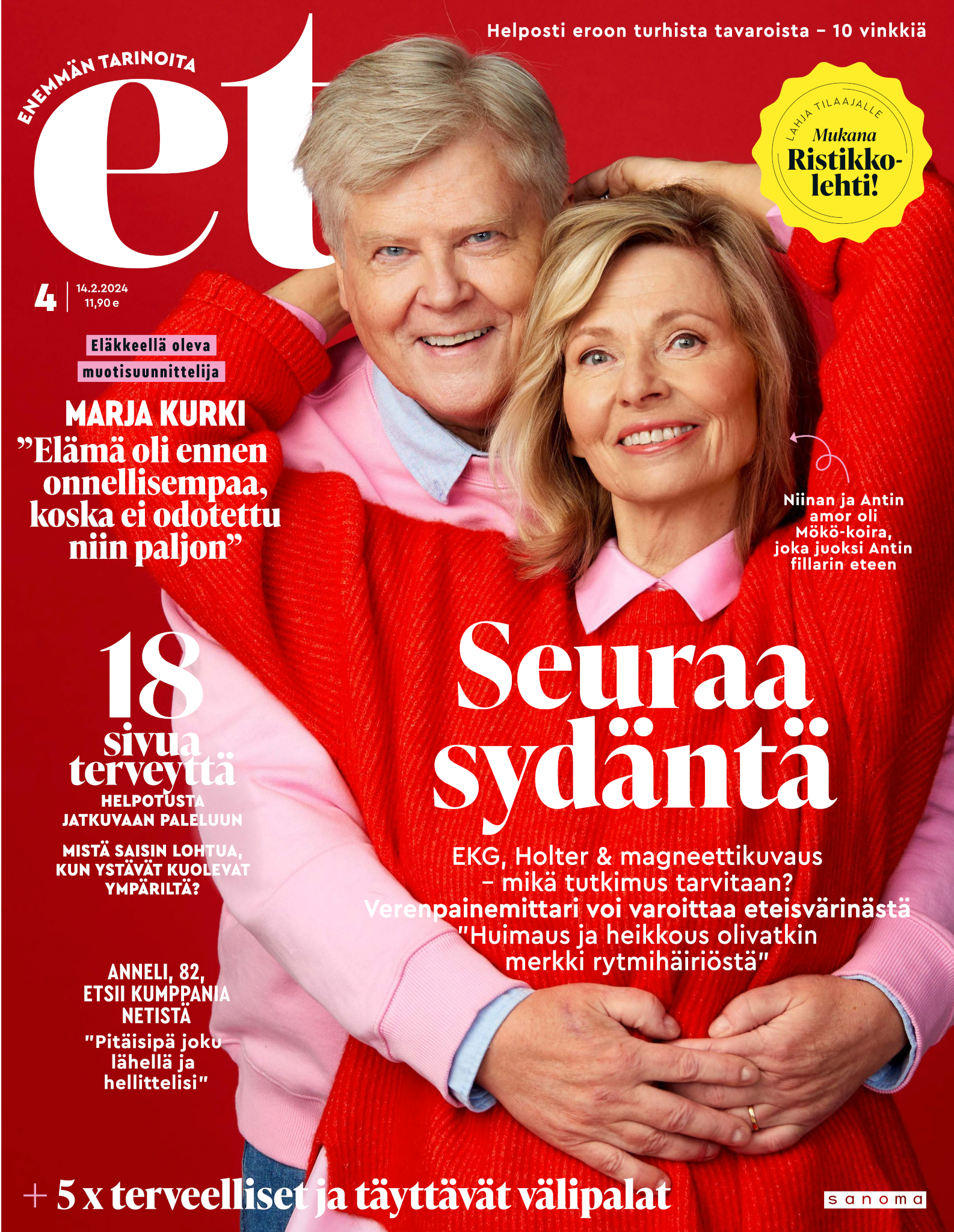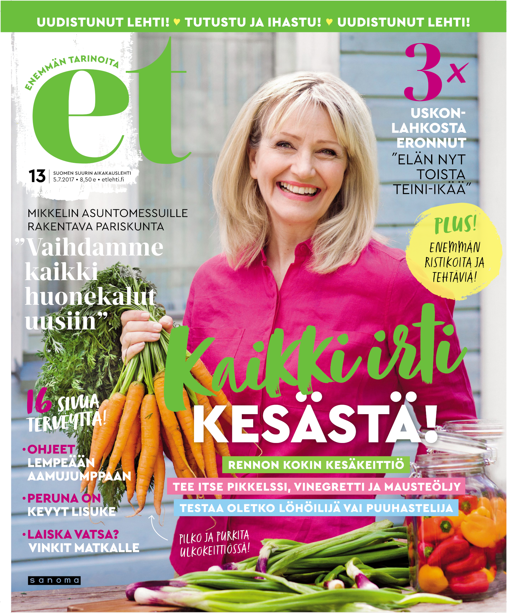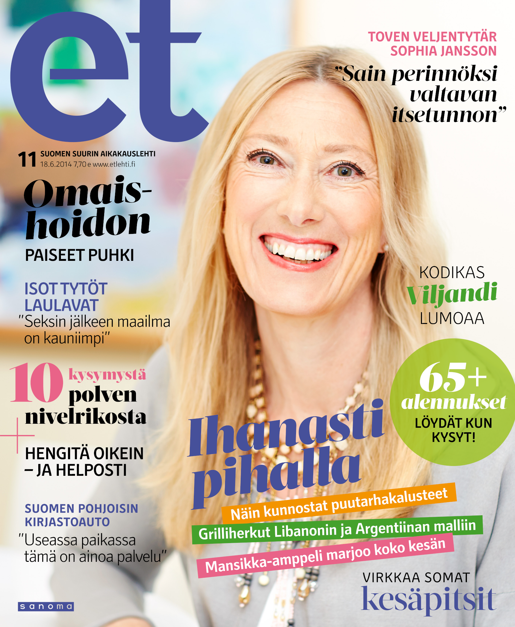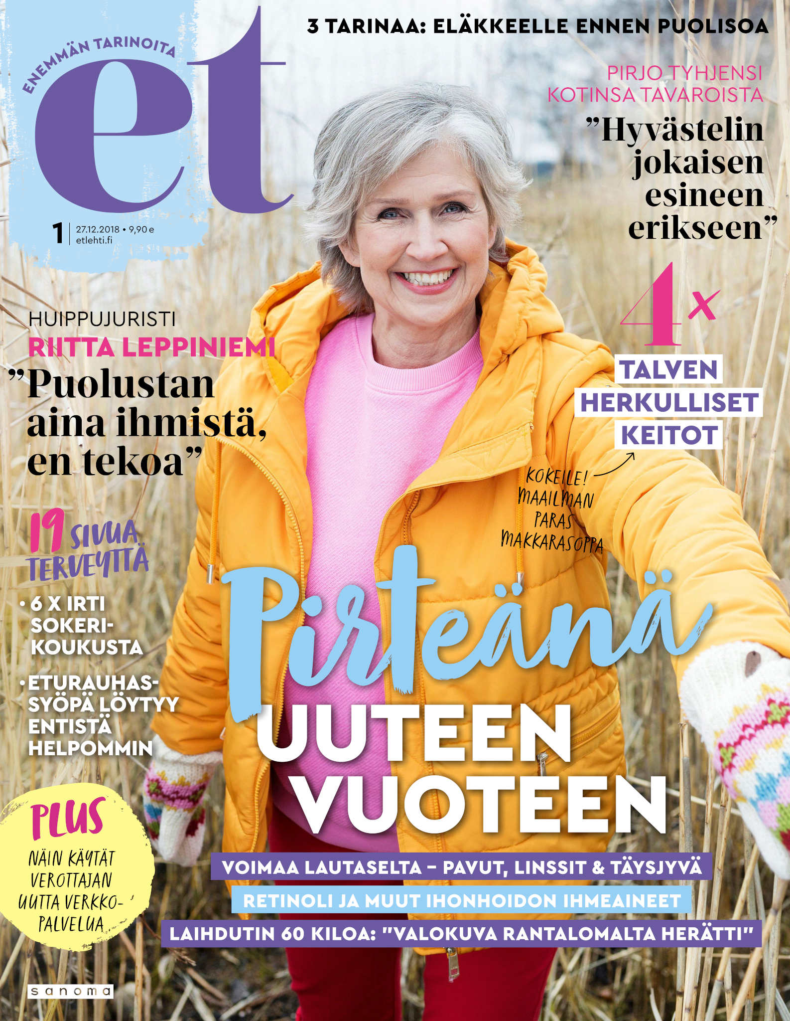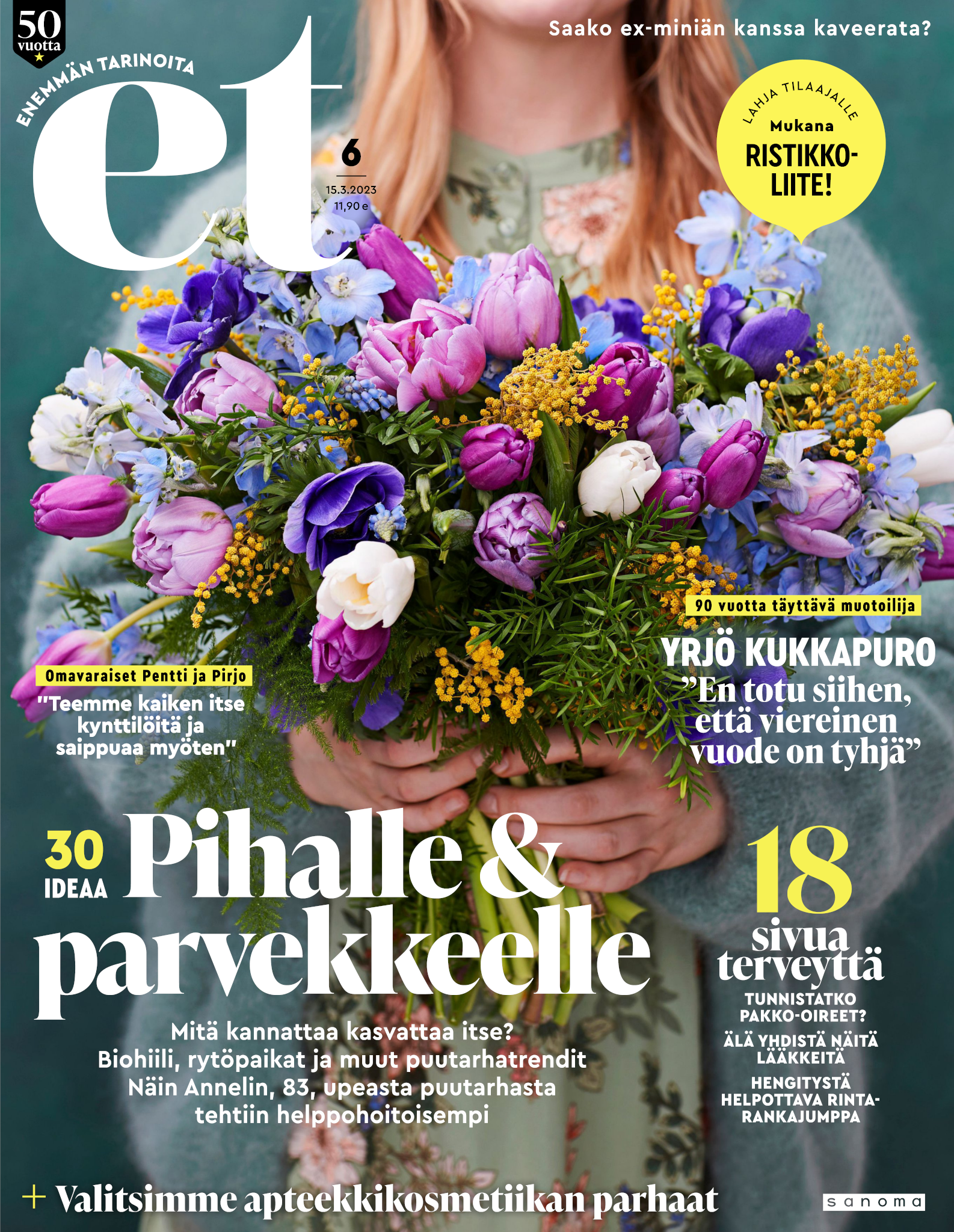 Tervetuloa mukaan ET:n innostavaan seuraan! Annamme vertaistukea ja tarjoamme hyötytiedon lisäksi nautinnollisia lukujuttuja kiinnostavista ihmisistä ja heidän elämänkohtaloistaan. ET kannustaa elämään omannäköistä elämää. Nautiskele arjen arvokkaista, pienistä asioista tai hanki uusia kokemuksia, löydä uusia kiinnostuksen kohteita tai löhöä sohvalla vaikka koko päivä! Kaikki käy! Me ET:ssä uskomme, että uteliaisuus elämän pieniä ja suuria asioita kohtaan pitää jokaisen päivän mielenkiintoisena ja mielen avoimena uusille kokemuksille. Uusi elämänvaihe on ihana ja jännittävä - otetaan siitä kaikki irti!