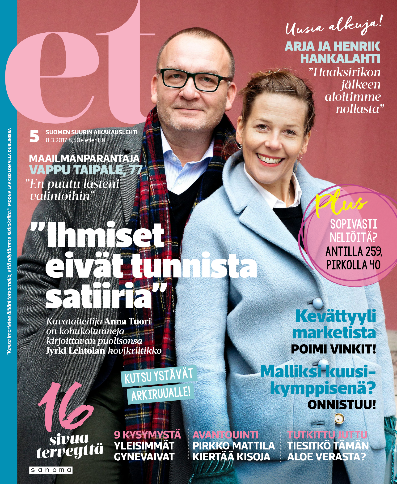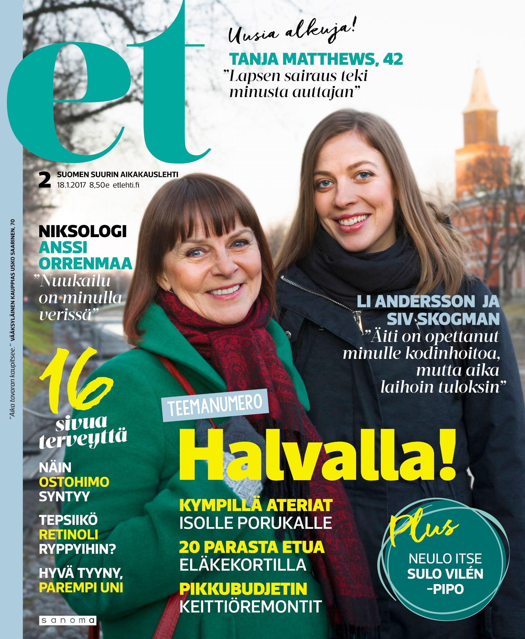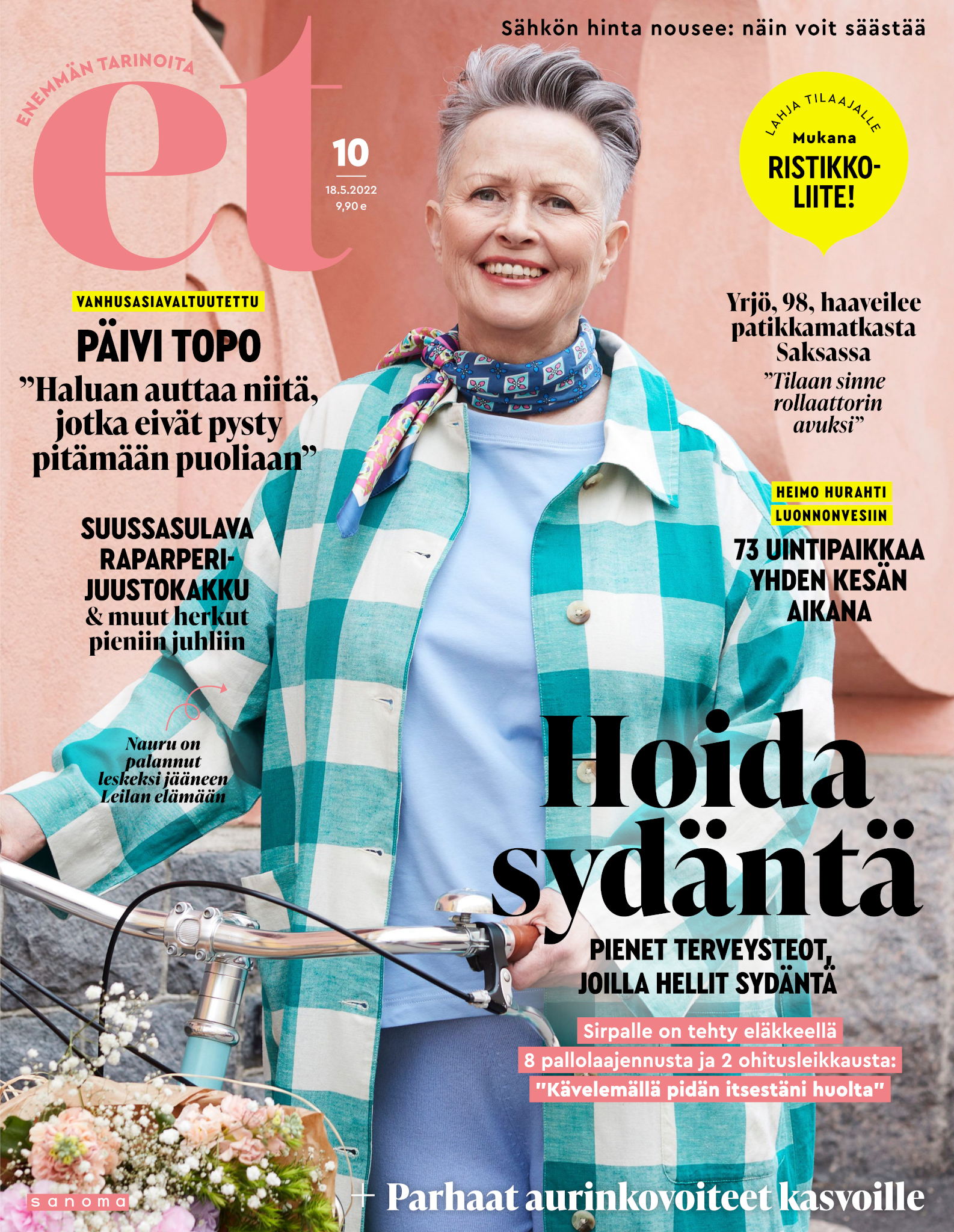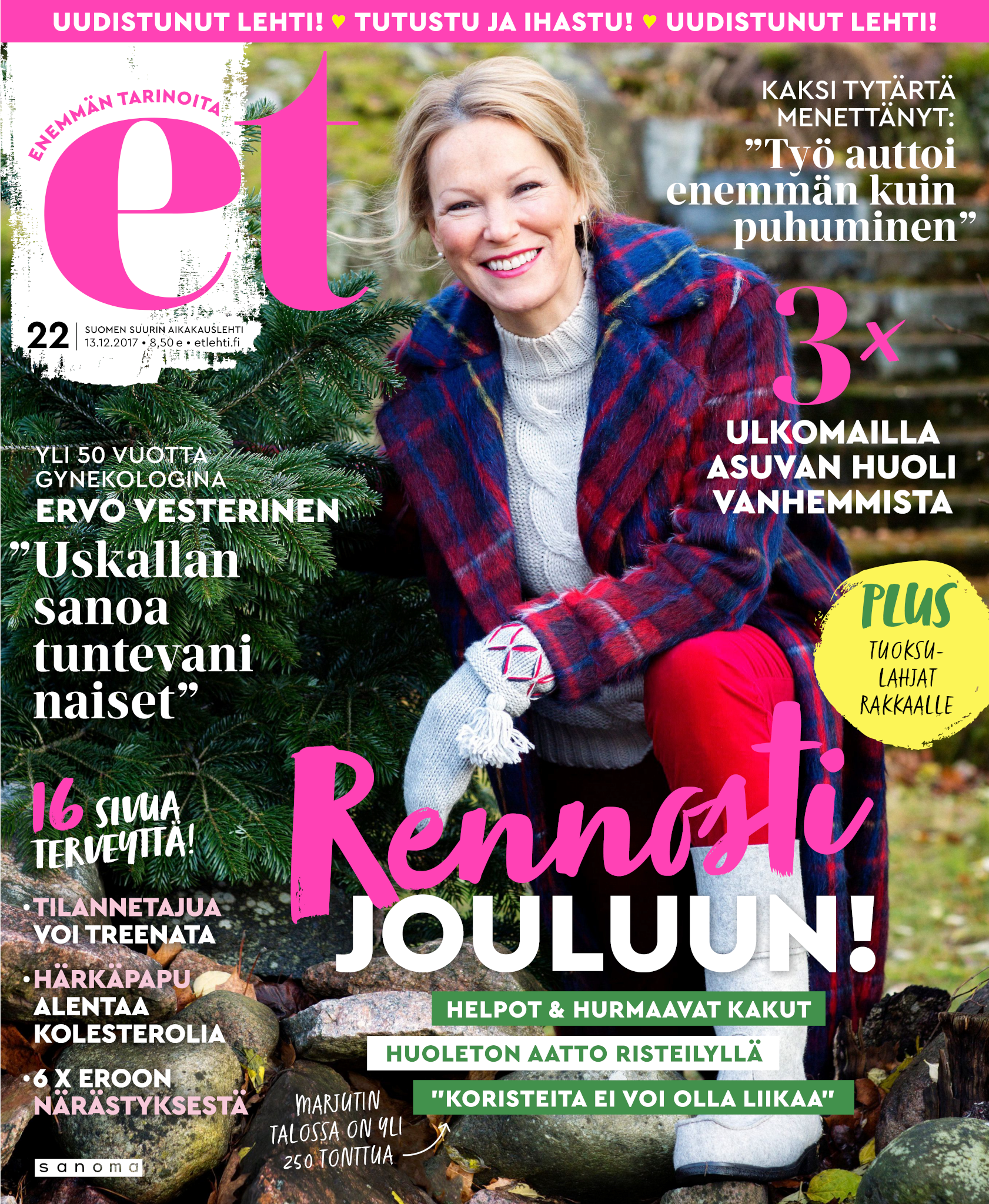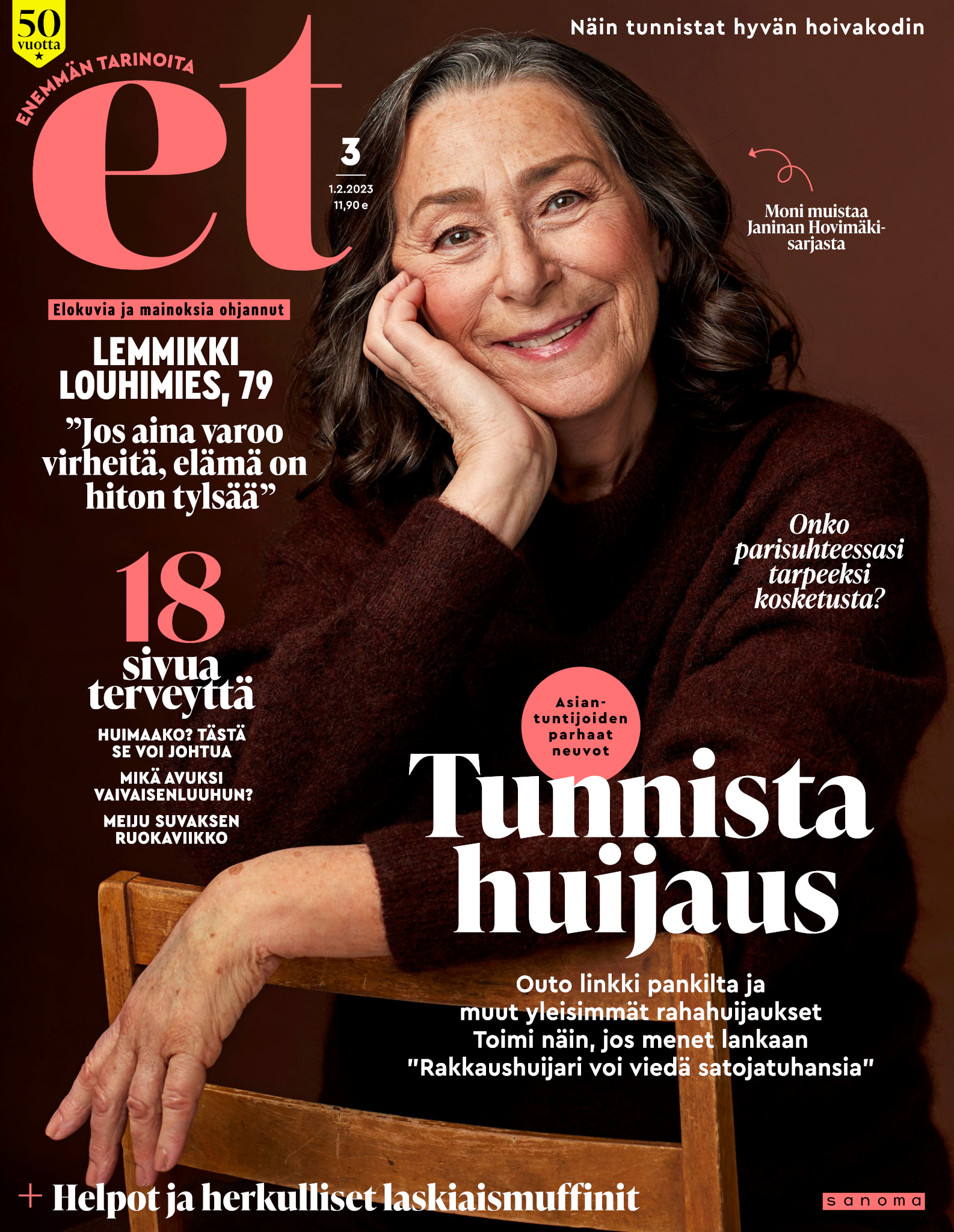 Tervetuloa mukaan ET:n innostavaan seuraan! Annamme vertaistukea ja tarjoamme hyötytiedon lisäksi nautinnollisia lukujuttuja kiinnostavista ihmisistä ja heidän elämänkohtaloistaan. ET kannustaa elämään omannäköistä elämää. Nautiskele arjen arvokkaista, pienistä asioista tai hanki uusia kokemuksia, löydä uusia kiinnostuksen kohteita tai löhöä sohvalla vaikka koko päivä! Kaikki käy! Me ET:ssä uskomme, että uteliaisuus elämän pieniä ja suuria asioita kohtaan pitää jokaisen päivän mielenkiintoisena ja mielen avoimena uusille kokemuksille. Uusi elämänvaihe on ihana ja jännittävä - otetaan siitä kaikki irti!