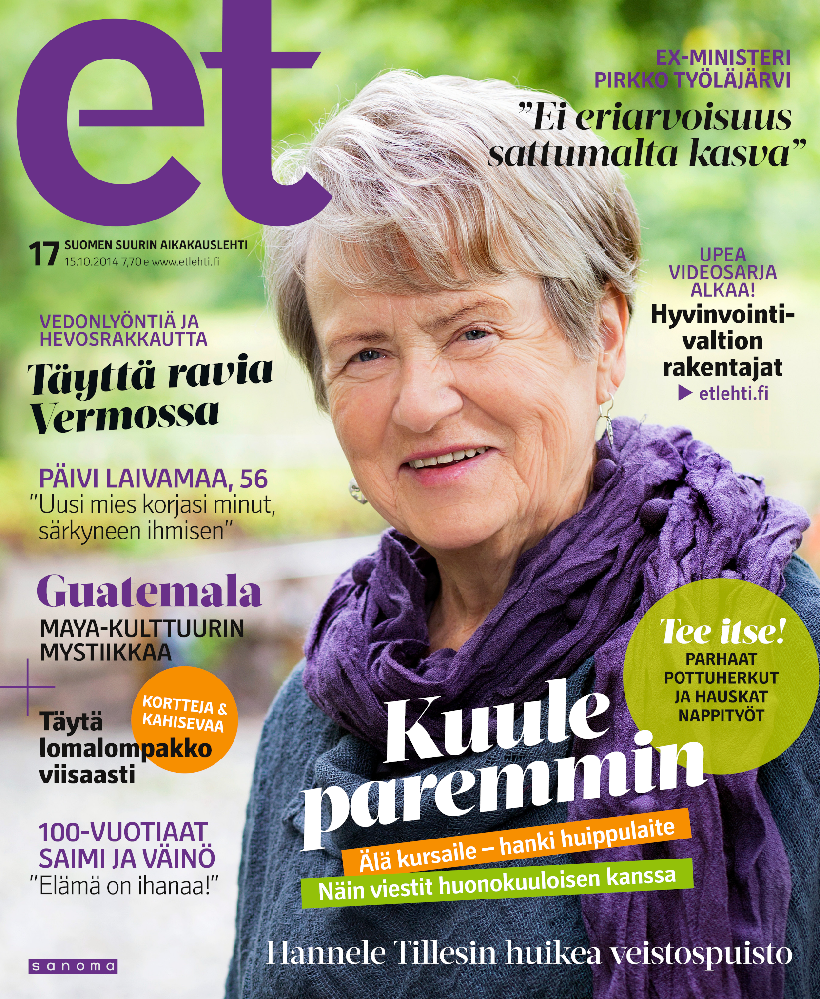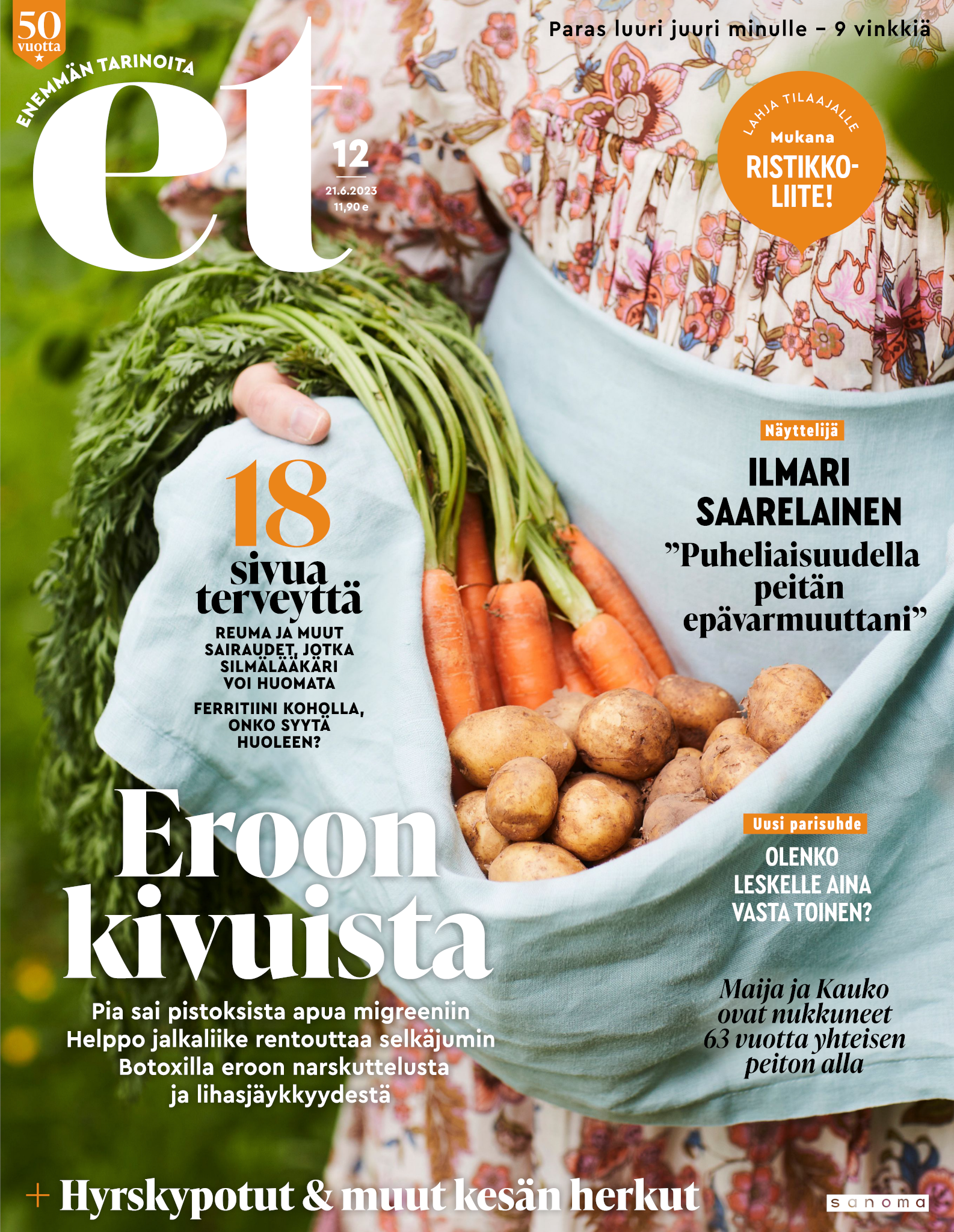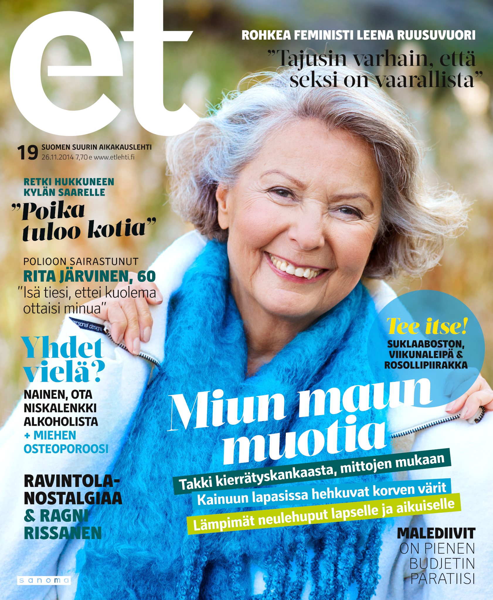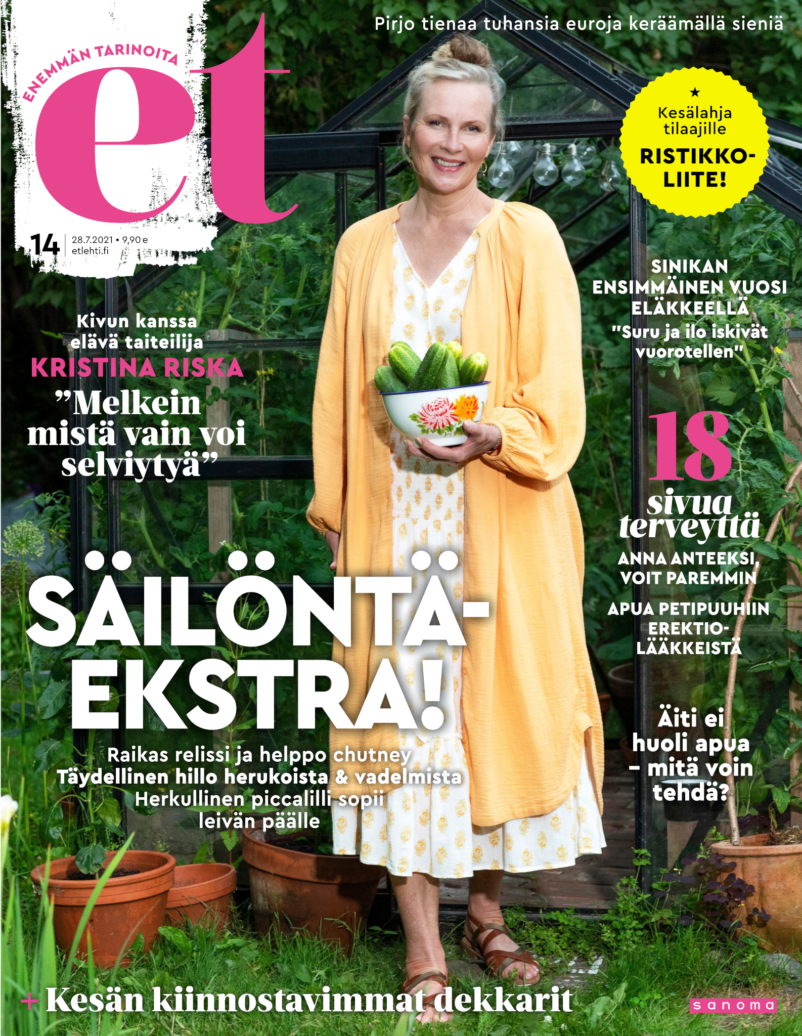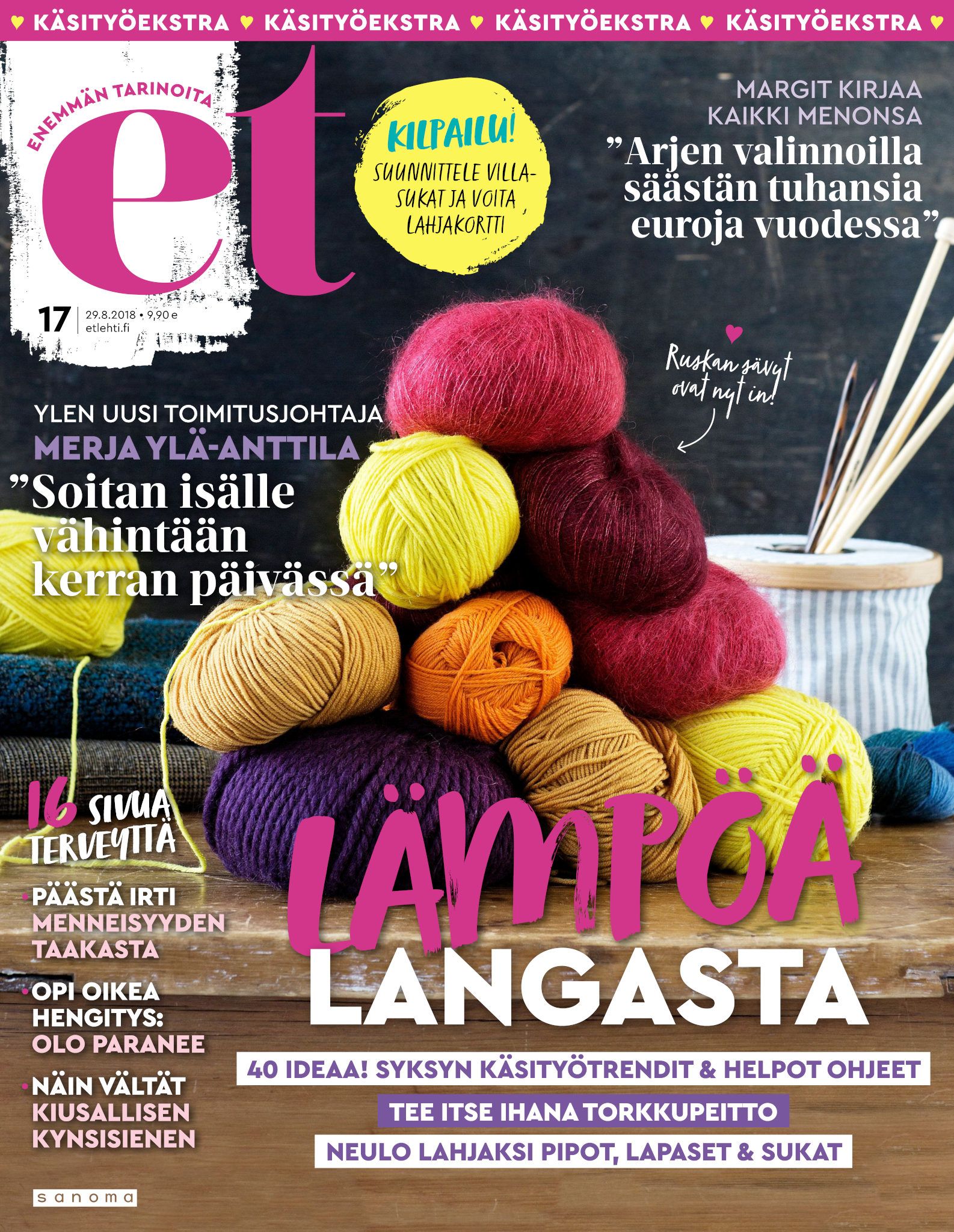 Tervetuloa mukaan ET:n innostavaan seuraan! Annamme vertaistukea ja tarjoamme hyötytiedon lisäksi nautinnollisia lukujuttuja kiinnostavista ihmisistä ja heidän elämänkohtaloistaan. ET kannustaa elämään omannäköistä elämää. Nautiskele arjen arvokkaista, pienistä asioista tai hanki uusia kokemuksia, löydä uusia kiinnostuksen kohteita tai löhöä sohvalla vaikka koko päivä! Kaikki käy! Me ET:ssä uskomme, että uteliaisuus elämän pieniä ja suuria asioita kohtaan pitää jokaisen päivän mielenkiintoisena ja mielen avoimena uusille kokemuksille. Uusi elämänvaihe on ihana ja jännittävä - otetaan siitä kaikki irti!