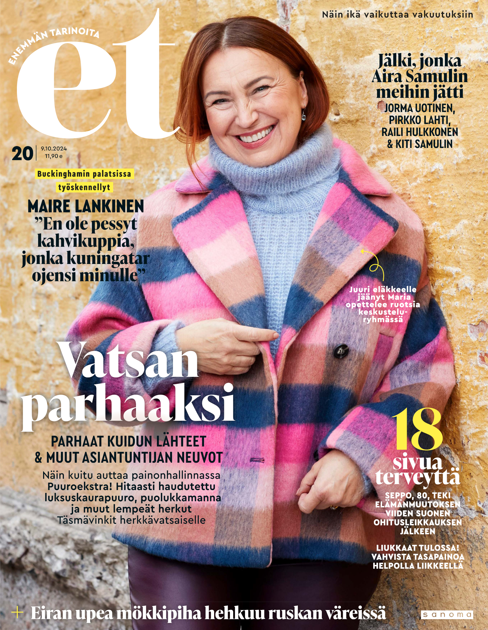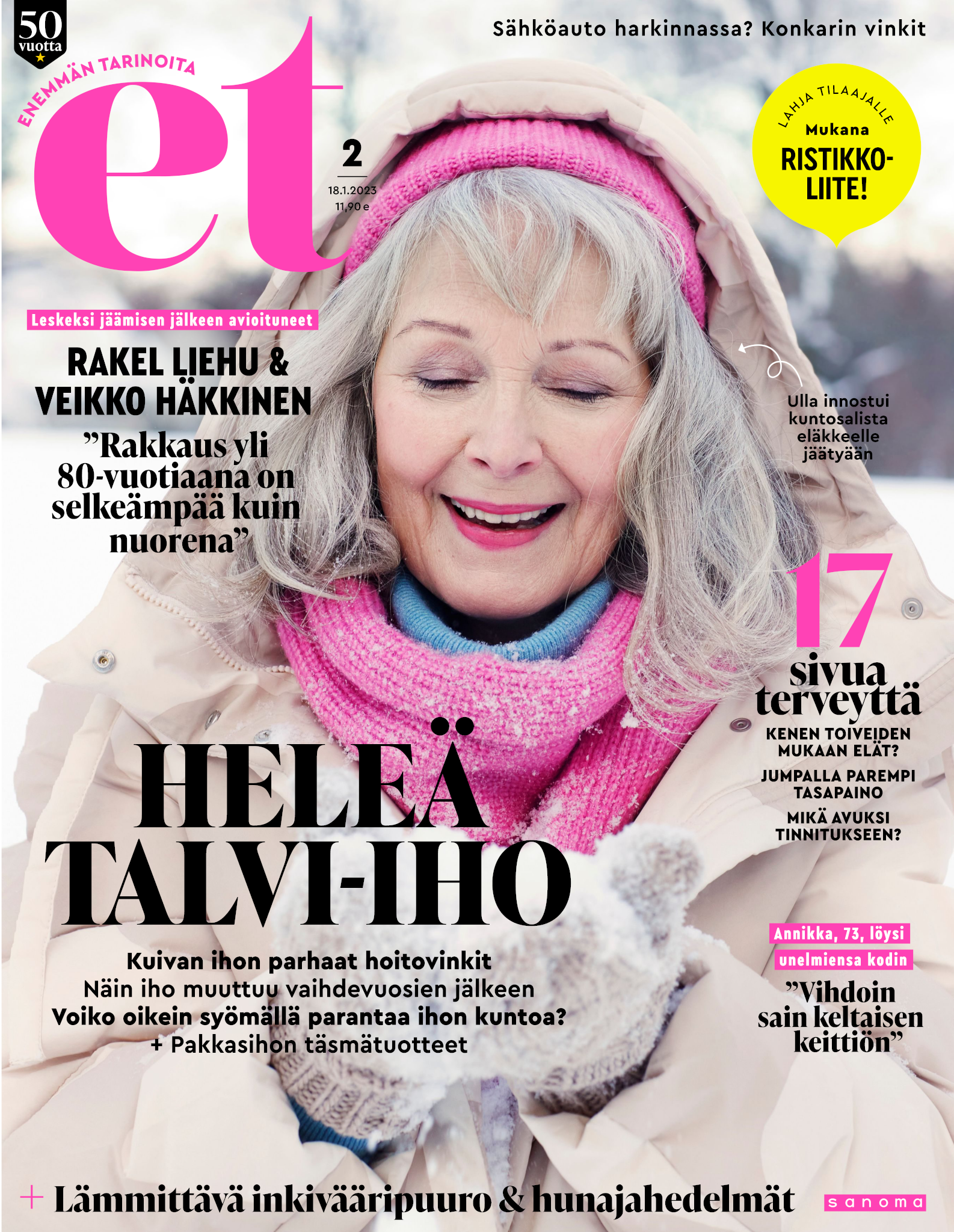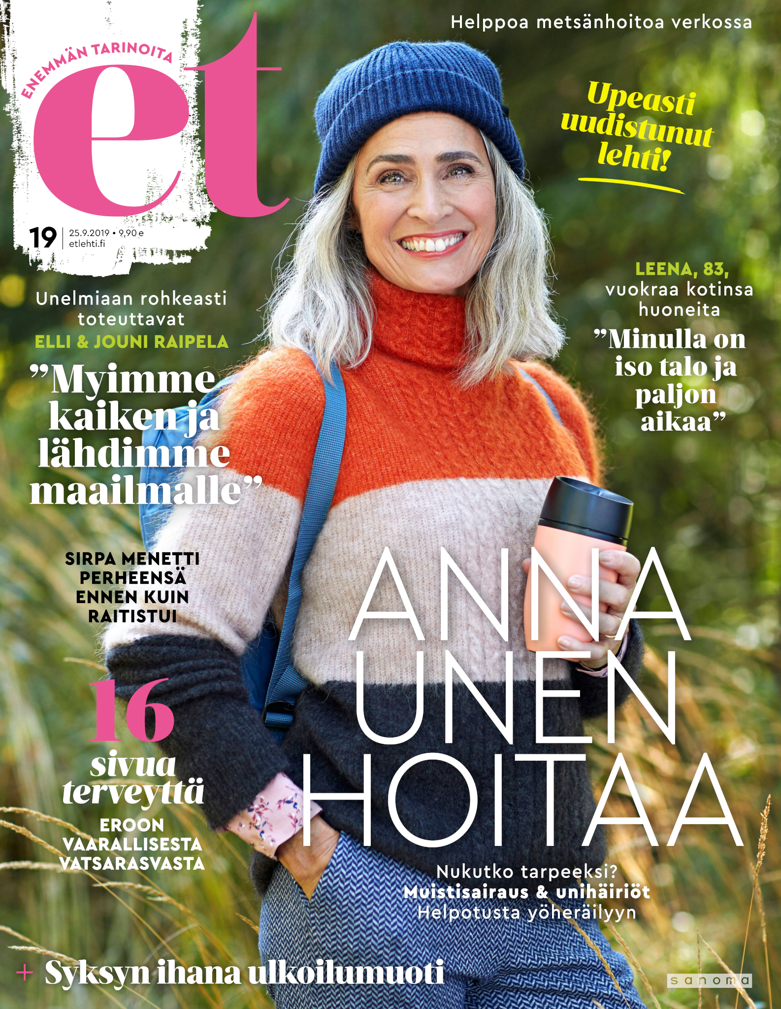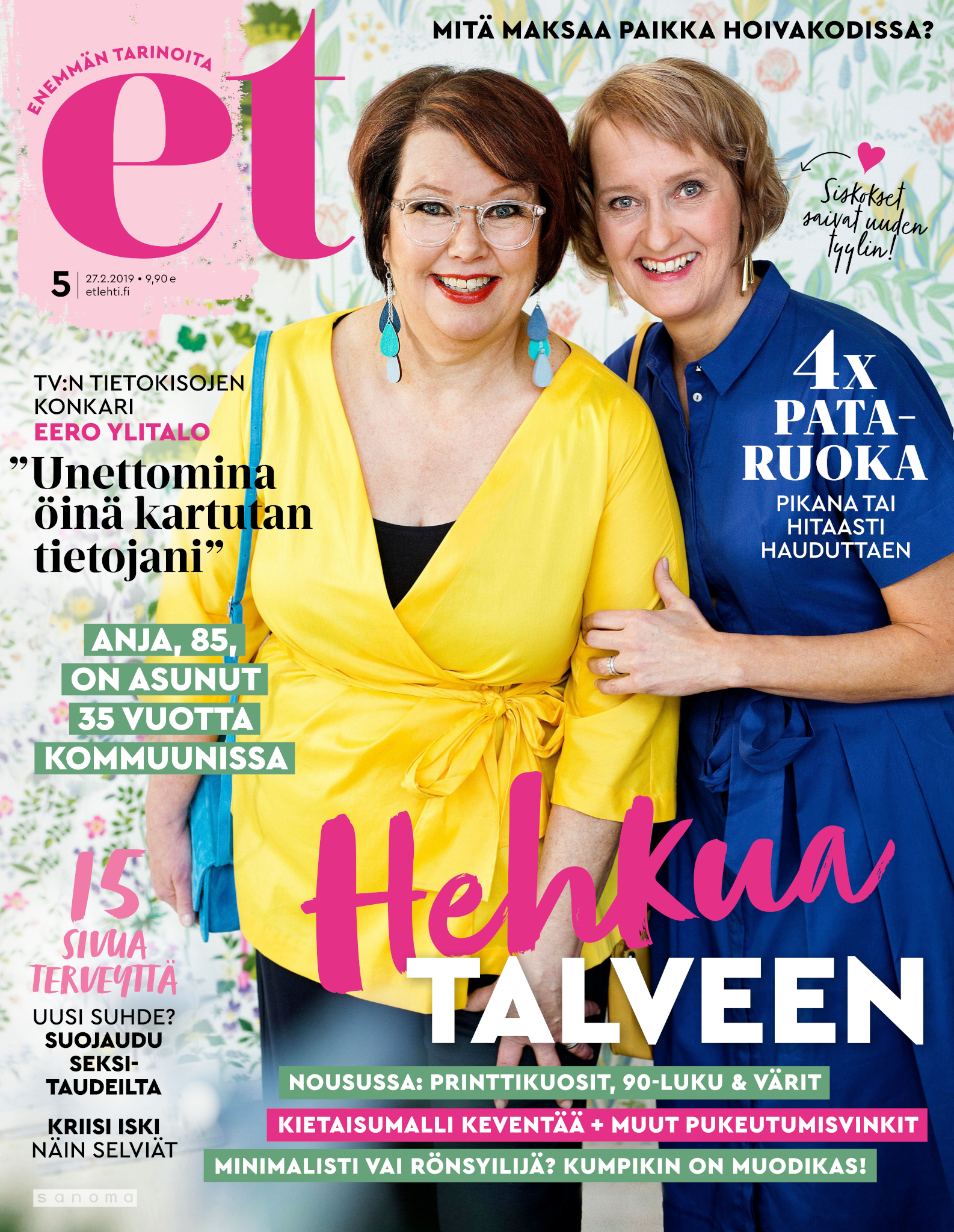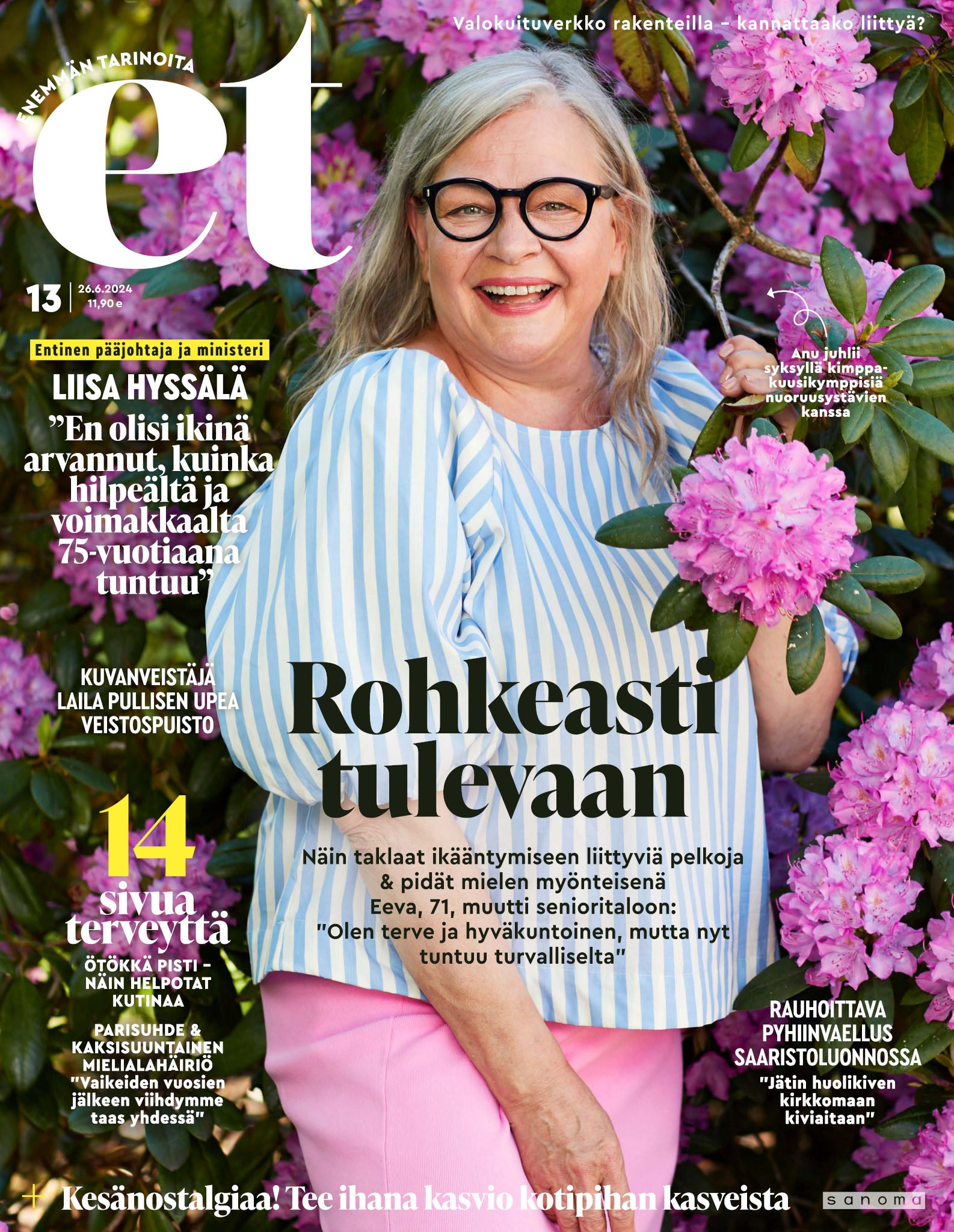 Tervetuloa mukaan ET:n innostavaan seuraan! Annamme vertaistukea ja tarjoamme hyötytiedon lisäksi nautinnollisia lukujuttuja kiinnostavista ihmisistä ja heidän elämänkohtaloistaan. ET kannustaa elämään omannäköistä elämää. Nautiskele arjen arvokkaista, pienistä asioista tai hanki uusia kokemuksia, löydä uusia kiinnostuksen kohteita tai löhöä sohvalla vaikka koko päivä! Kaikki käy! Me ET:ssä uskomme, että uteliaisuus elämän pieniä ja suuria asioita kohtaan pitää jokaisen päivän mielenkiintoisena ja mielen avoimena uusille kokemuksille. Uusi elämänvaihe on ihana ja jännittävä - otetaan siitä kaikki irti!
