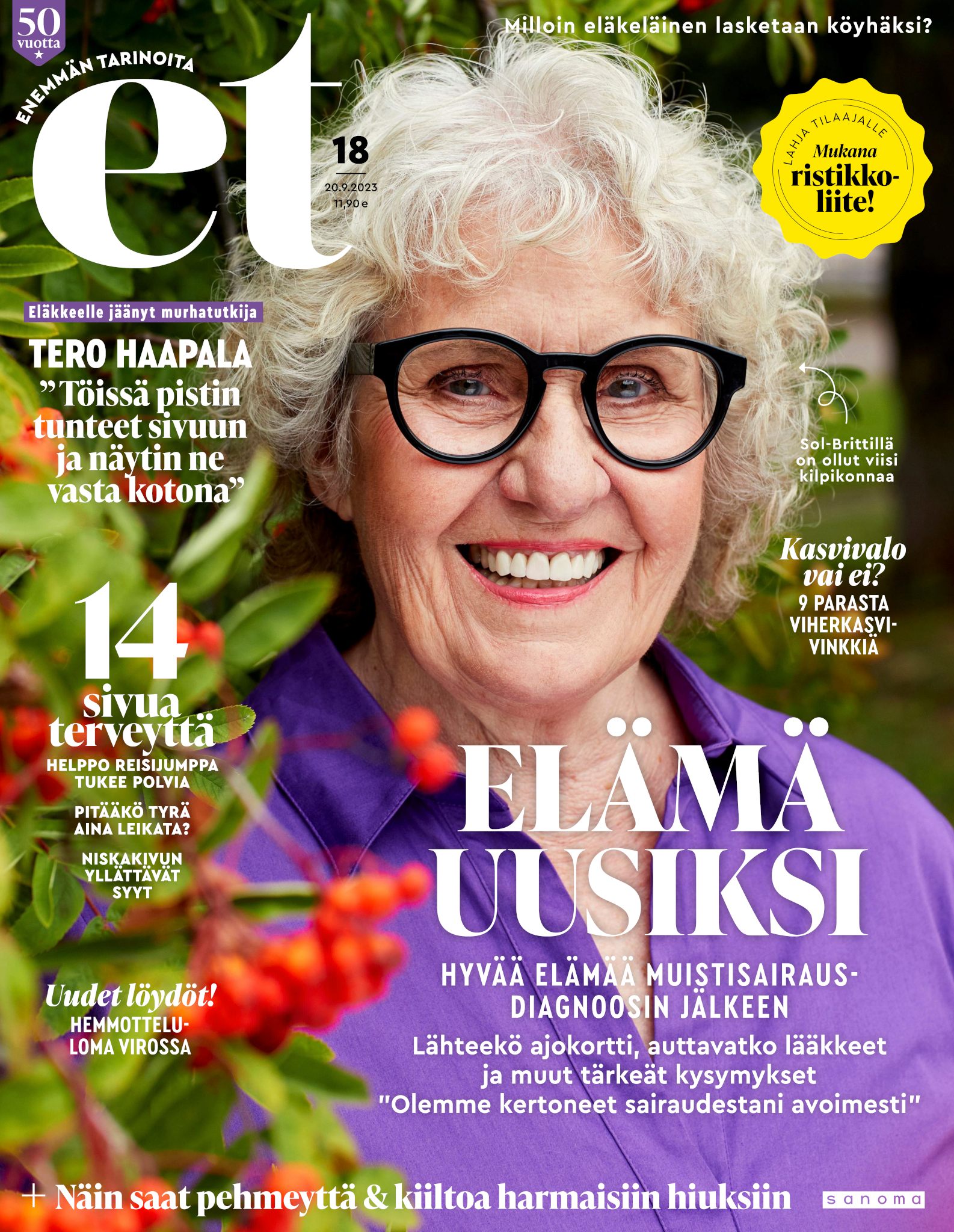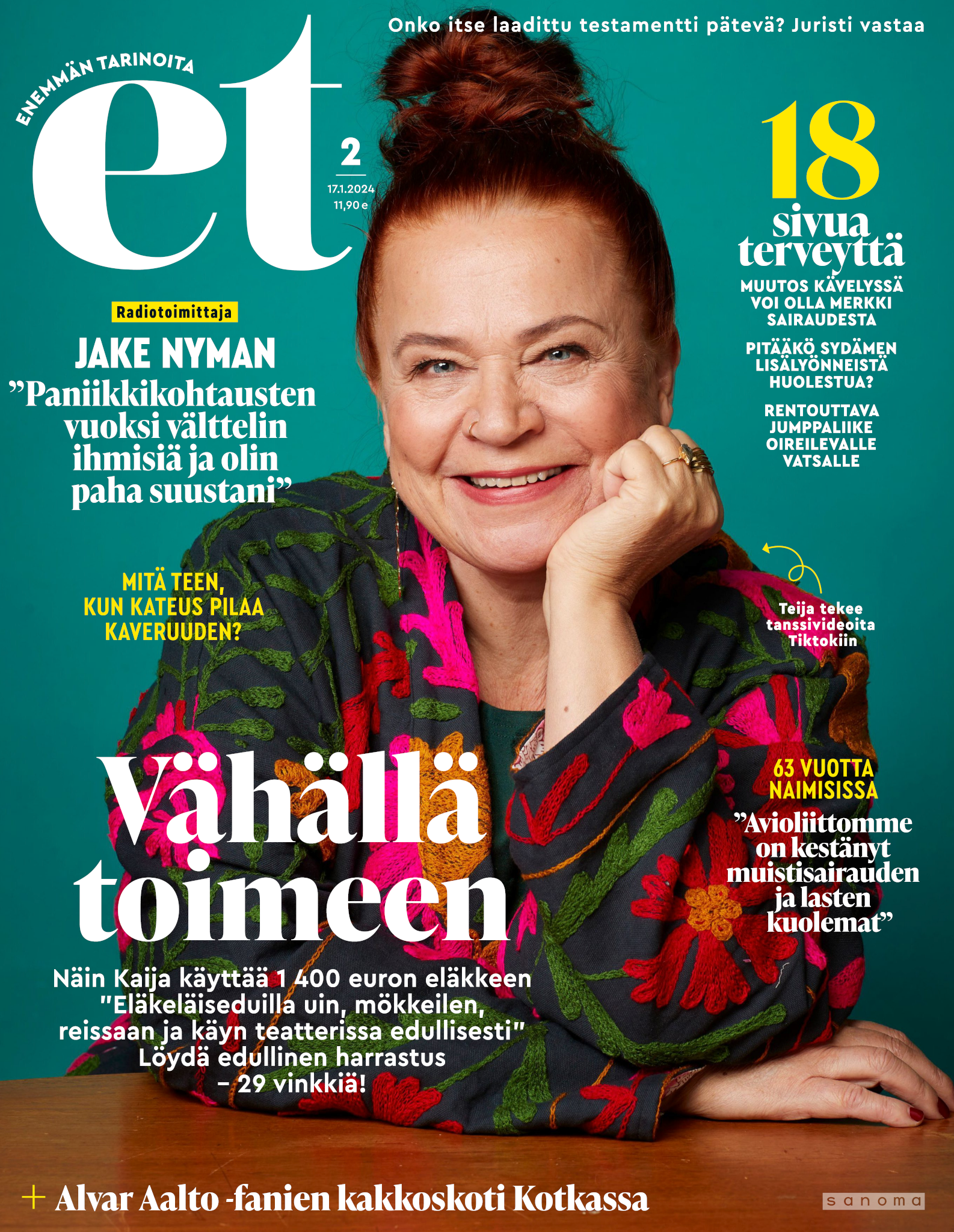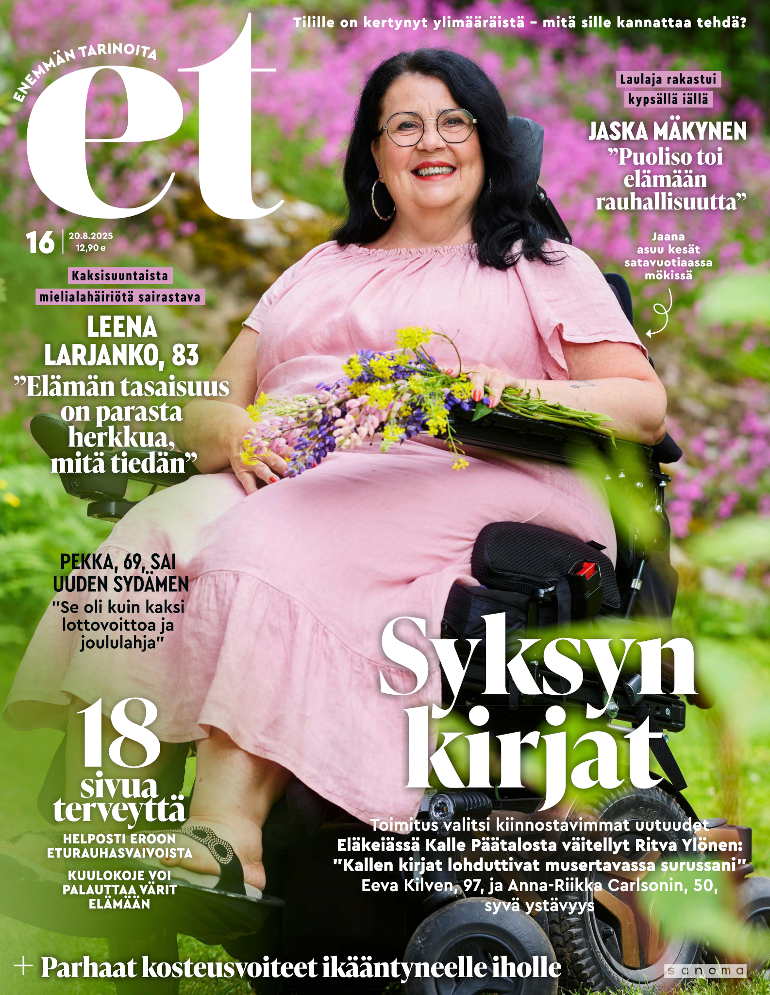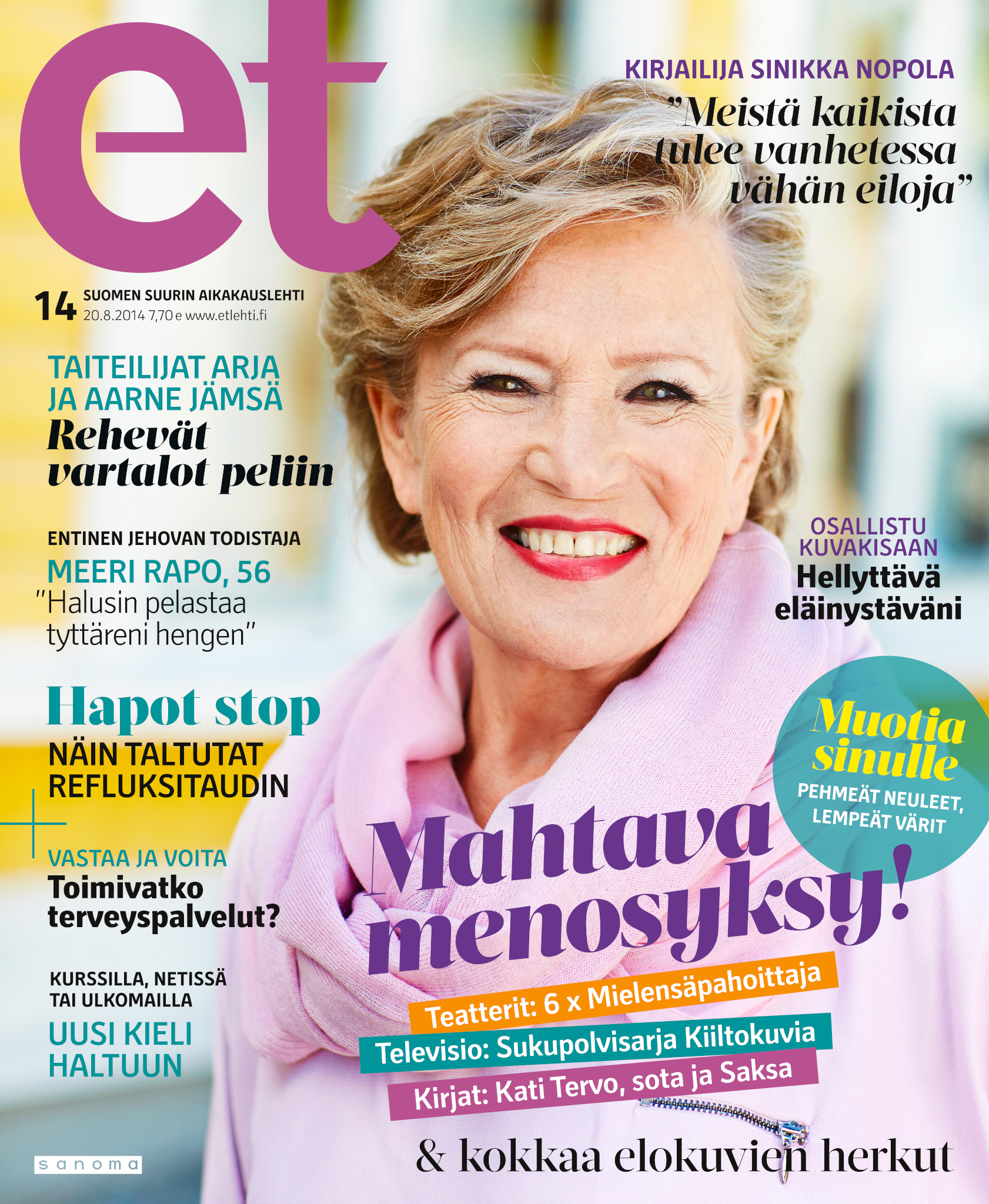 Tervetuloa mukaan ET:n innostavaan seuraan! Annamme vertaistukea ja tarjoamme hyötytiedon lisäksi nautinnollisia lukujuttuja kiinnostavista ihmisistä ja heidän elämänkohtaloistaan. ET kannustaa elämään omannäköistä elämää. Nautiskele arjen arvokkaista, pienistä asioista tai hanki uusia kokemuksia, löydä uusia kiinnostuksen kohteita tai löhöä sohvalla vaikka koko päivä! Kaikki käy! Me ET:ssä uskomme, että uteliaisuus elämän pieniä ja suuria asioita kohtaan pitää jokaisen päivän mielenkiintoisena ja mielen avoimena uusille kokemuksille. Uusi elämänvaihe on ihana ja jännittävä - otetaan siitä kaikki irti!