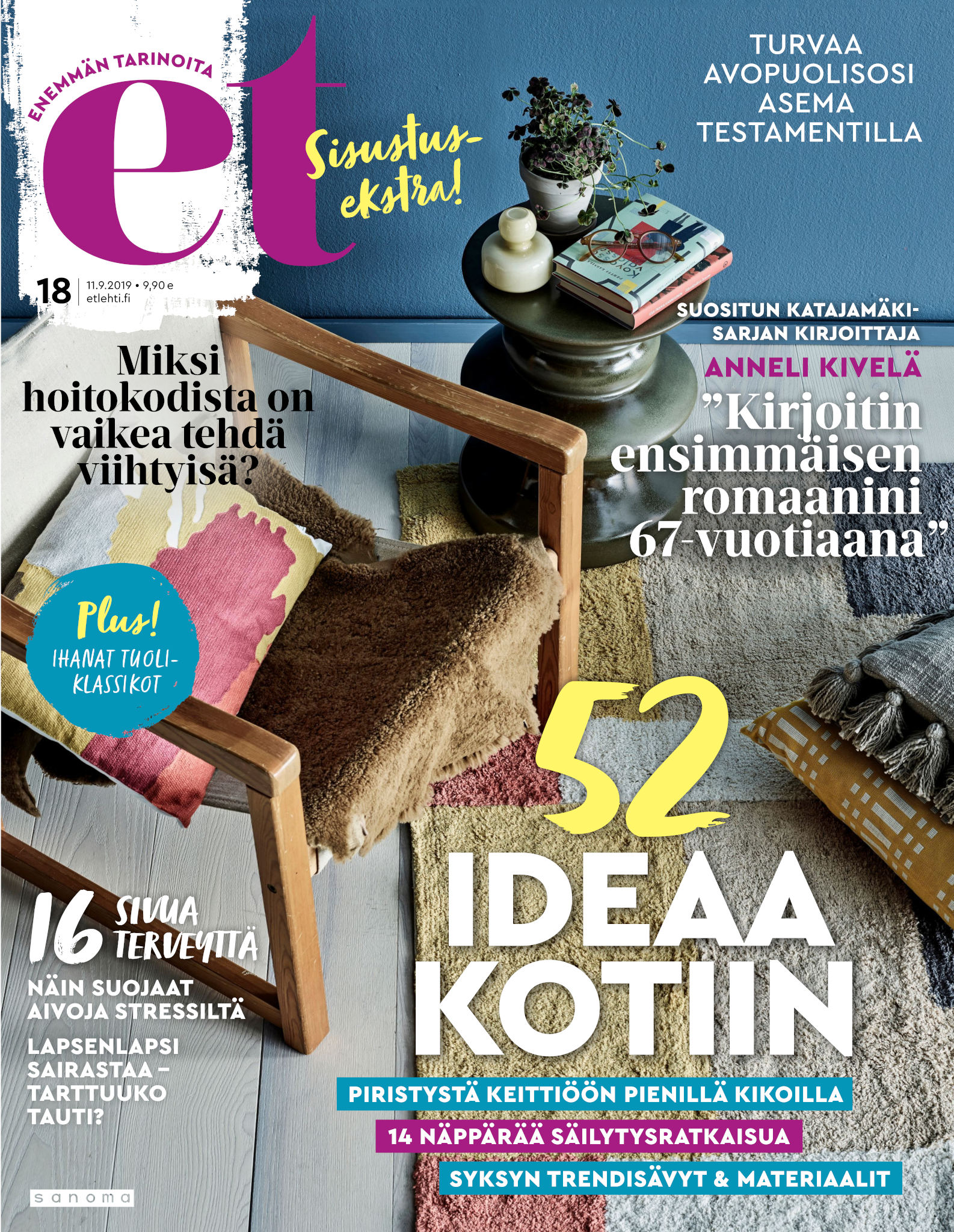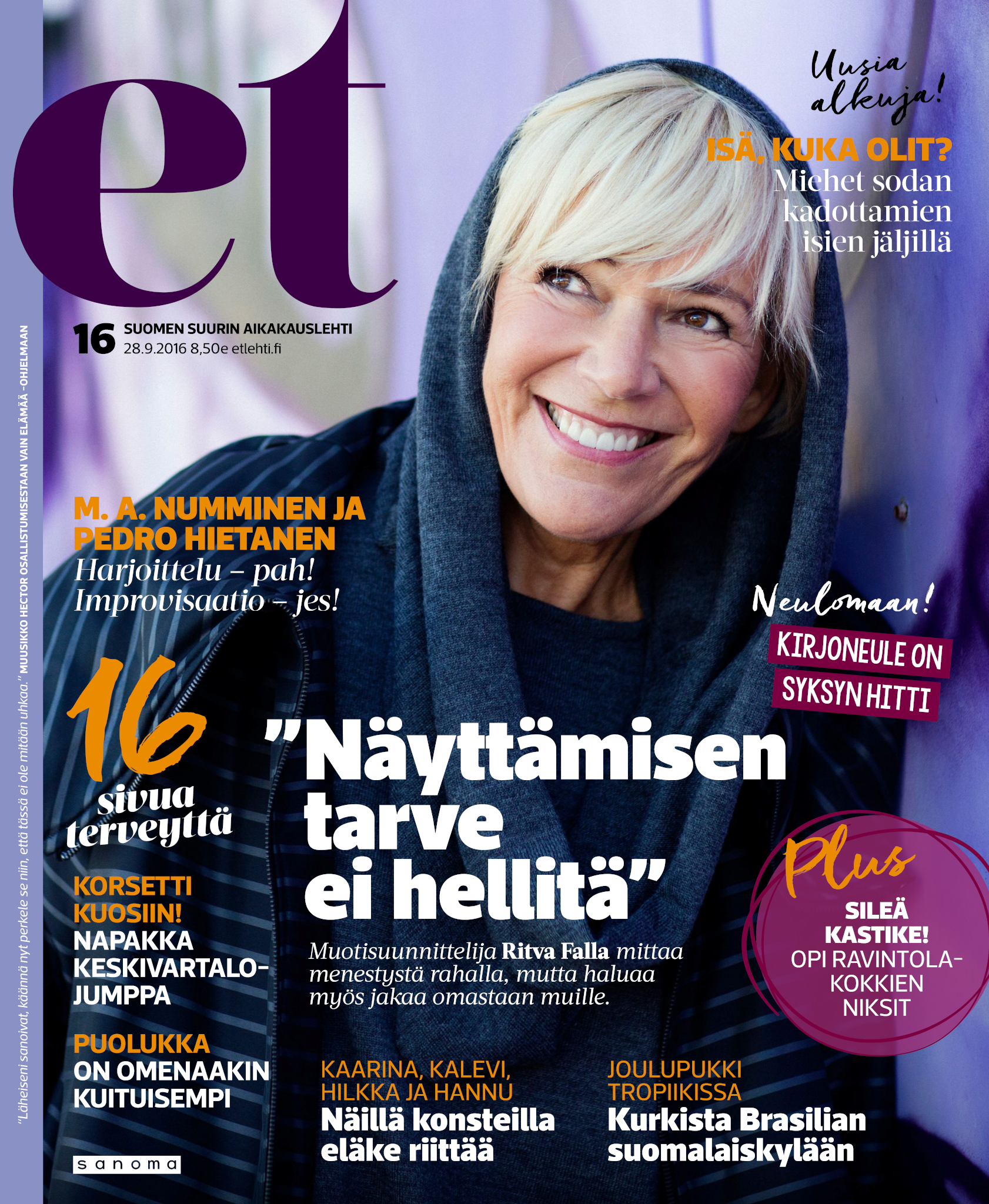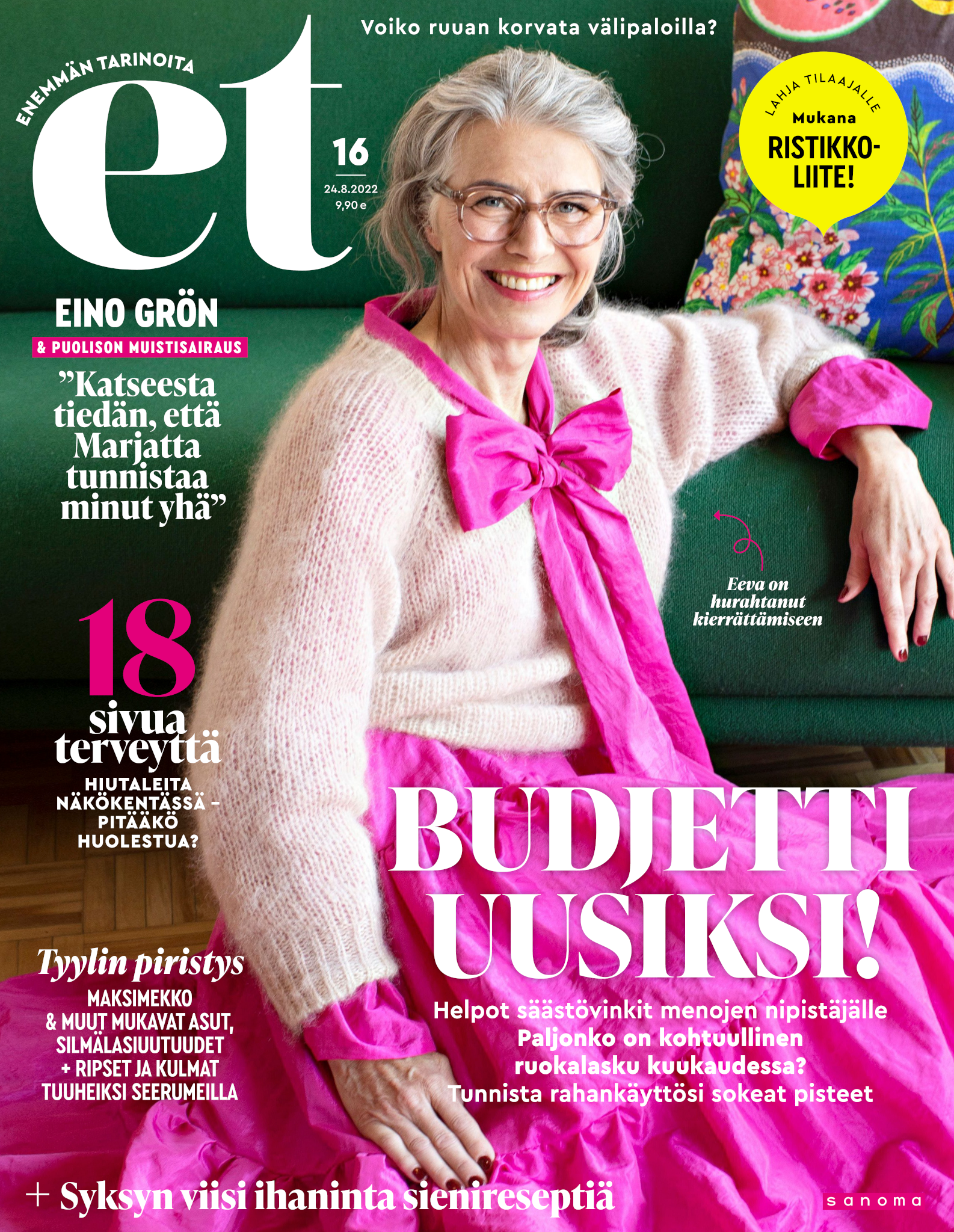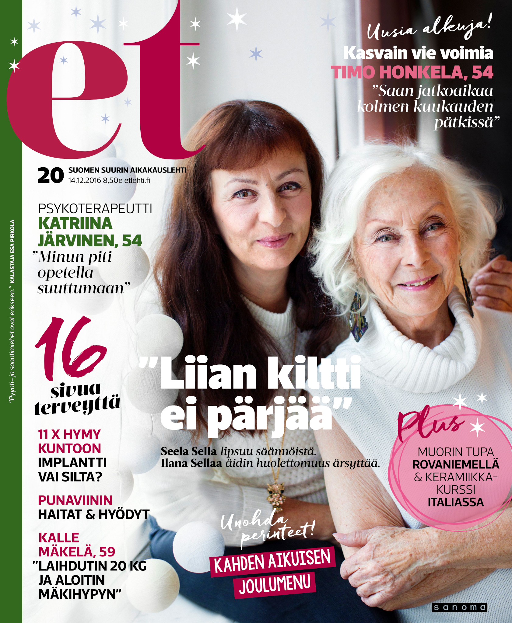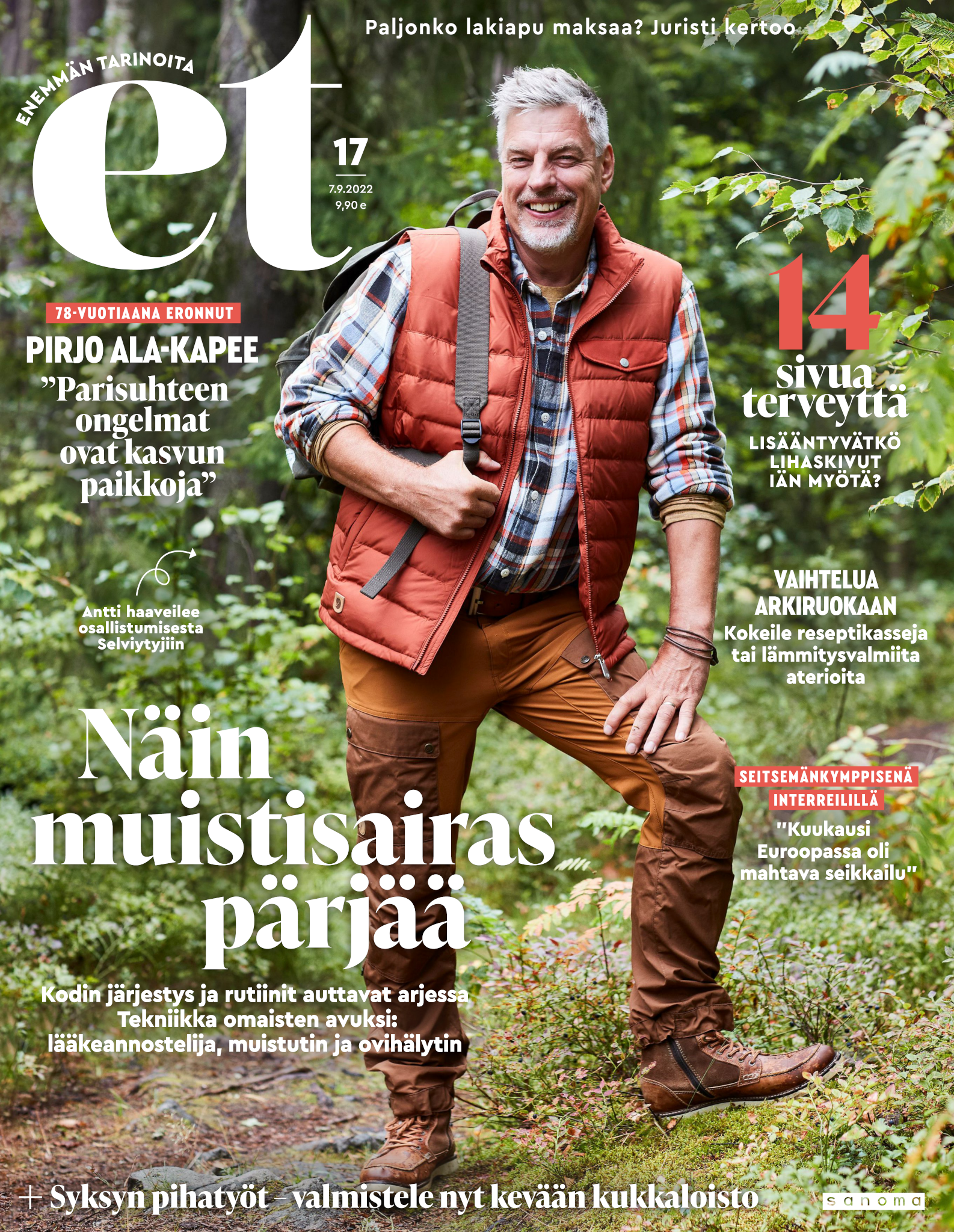 Tervetuloa mukaan ET:n innostavaan seuraan! Annamme vertaistukea ja tarjoamme hyötytiedon lisäksi nautinnollisia lukujuttuja kiinnostavista ihmisistä ja heidän elämänkohtaloistaan. ET kannustaa elämään omannäköistä elämää. Nautiskele arjen arvokkaista, pienistä asioista tai hanki uusia kokemuksia, löydä uusia kiinnostuksen kohteita tai löhöä sohvalla vaikka koko päivä! Kaikki käy! Me ET:ssä uskomme, että uteliaisuus elämän pieniä ja suuria asioita kohtaan pitää jokaisen päivän mielenkiintoisena ja mielen avoimena uusille kokemuksille. Uusi elämänvaihe on ihana ja jännittävä - otetaan siitä kaikki irti!