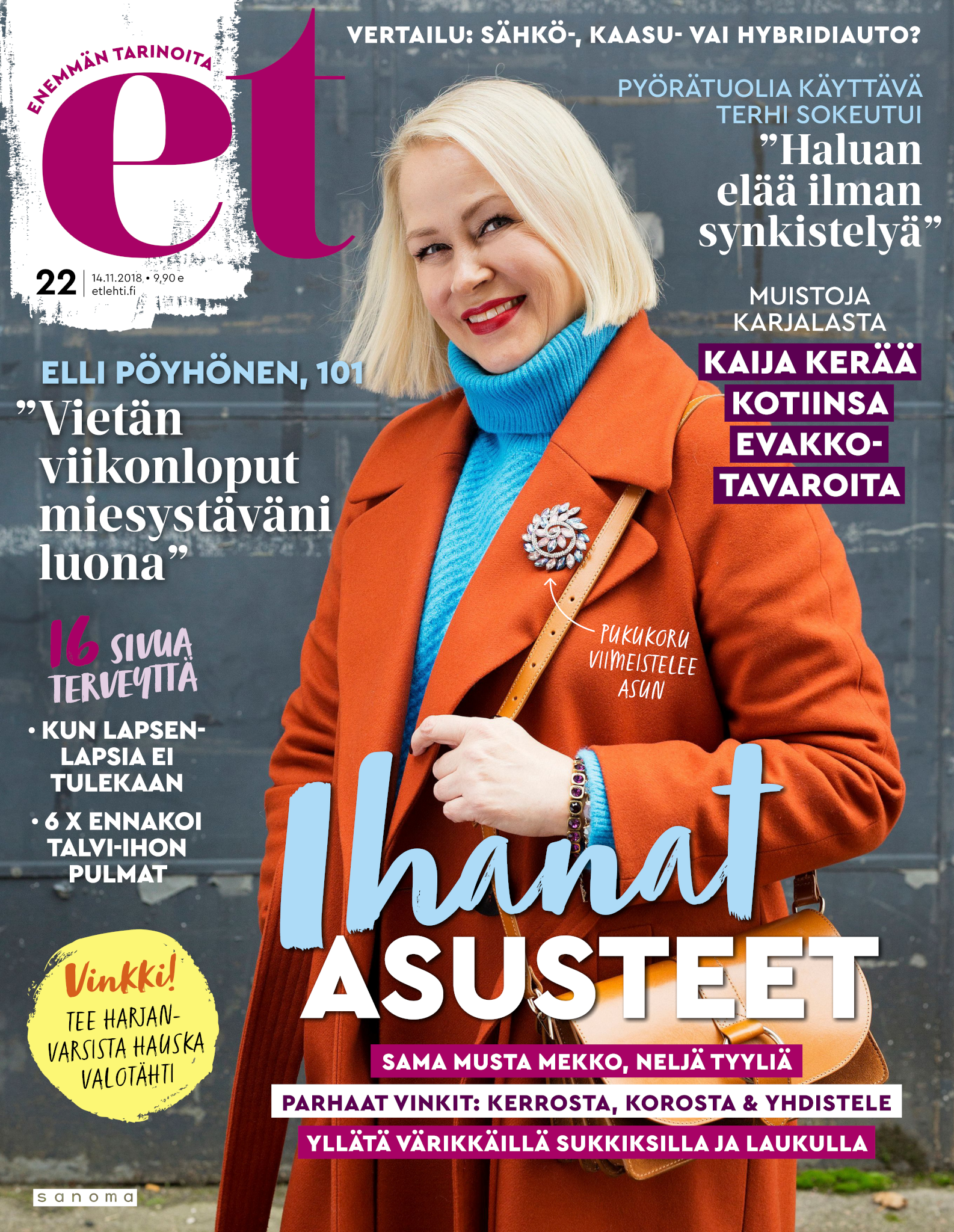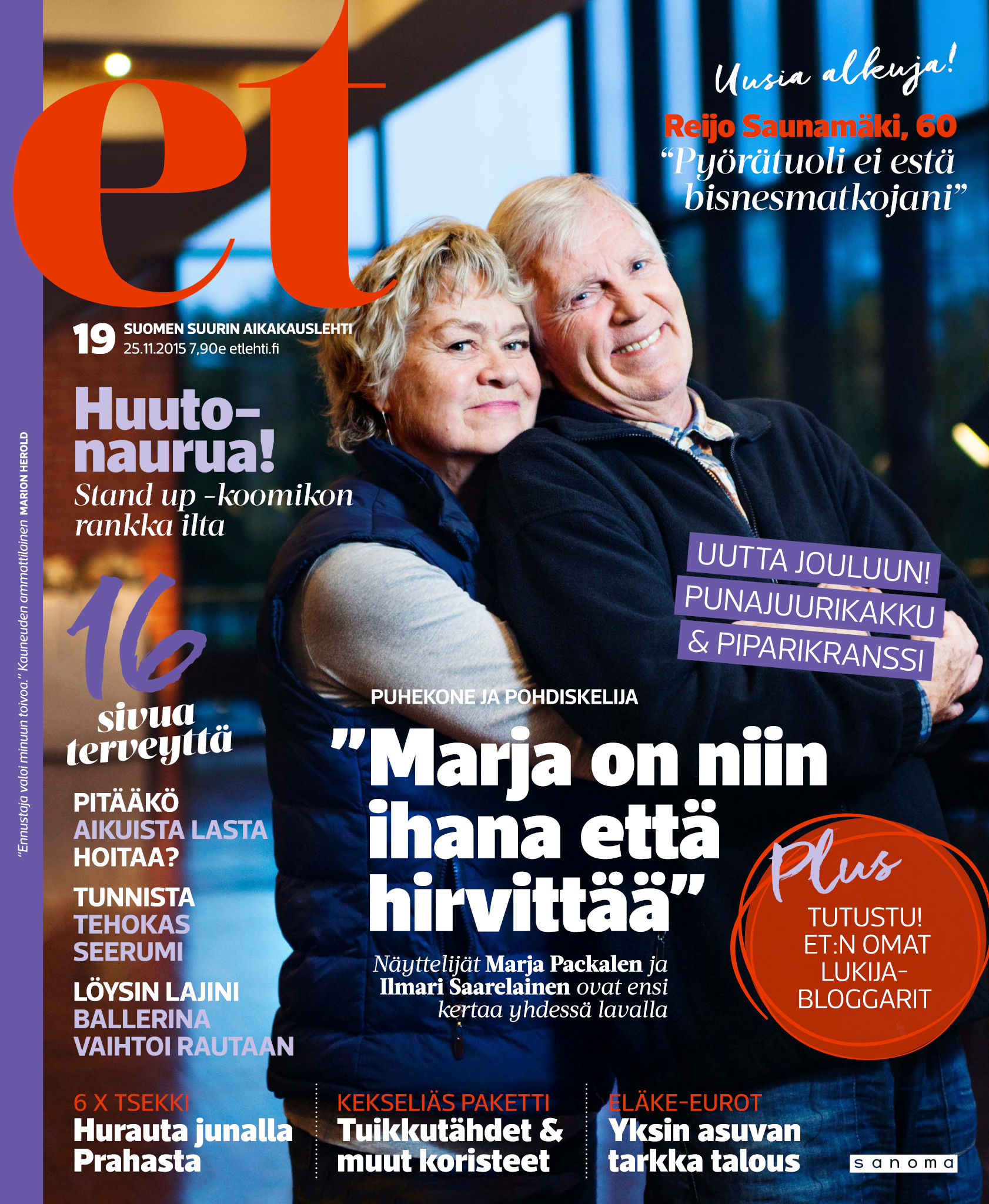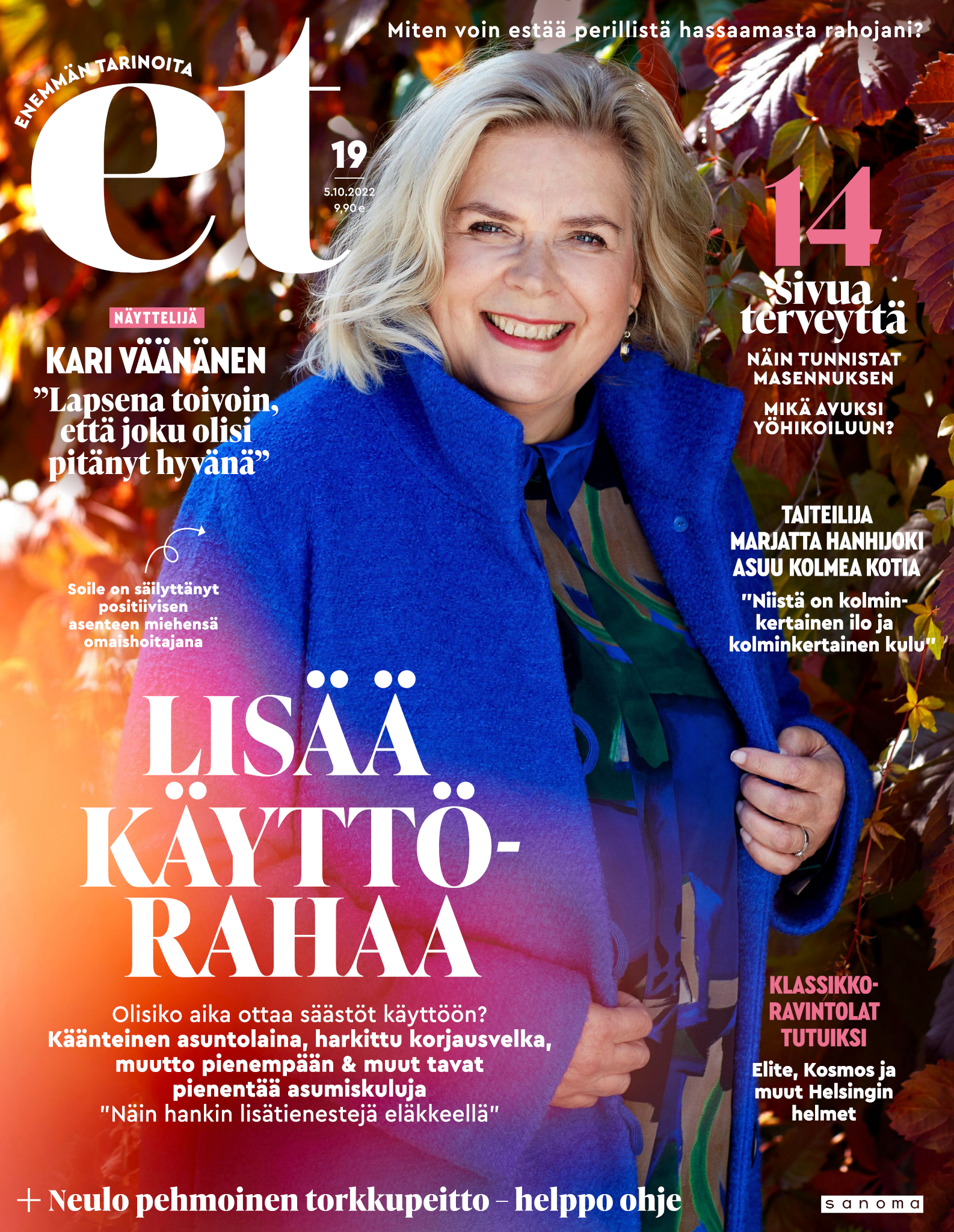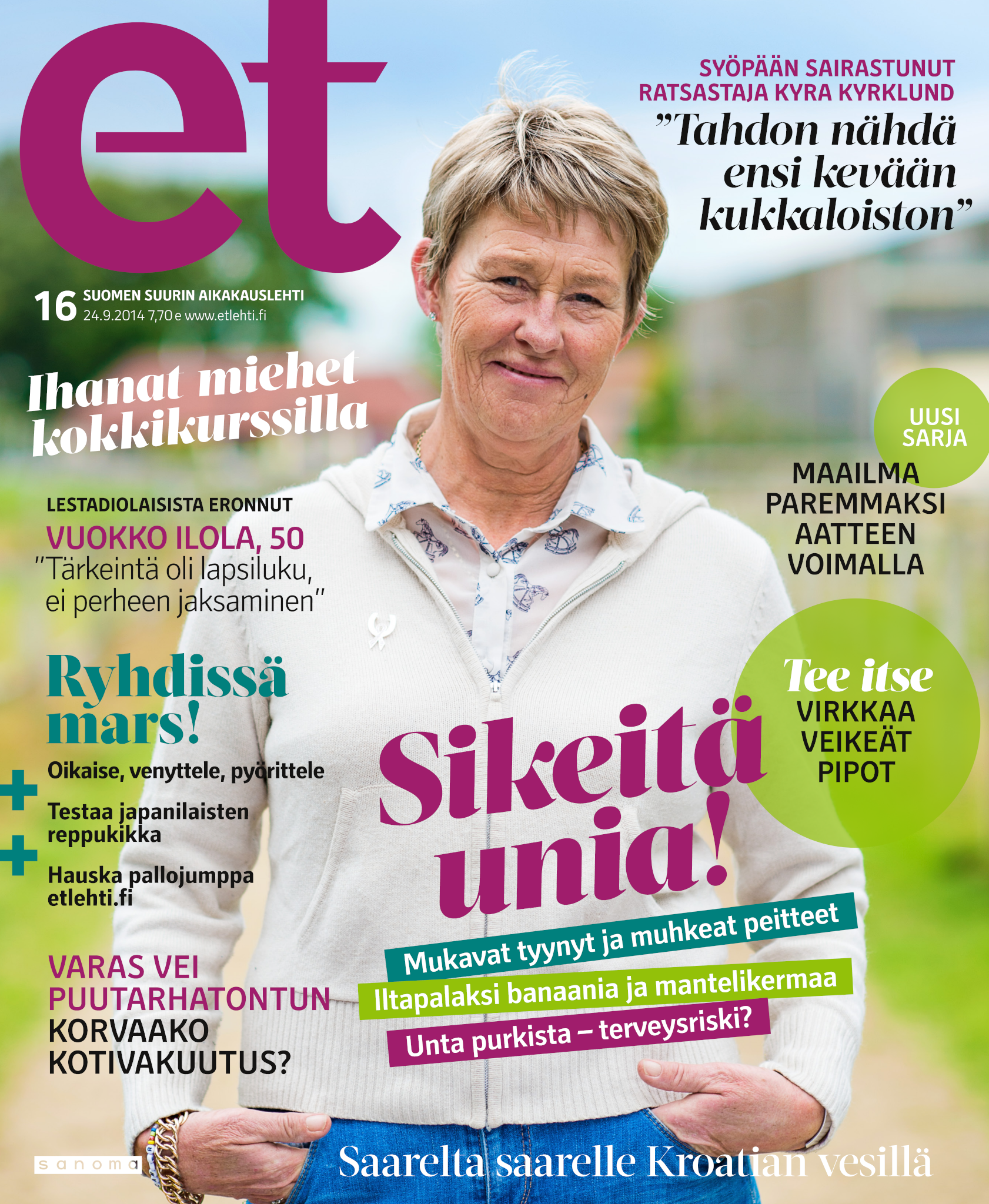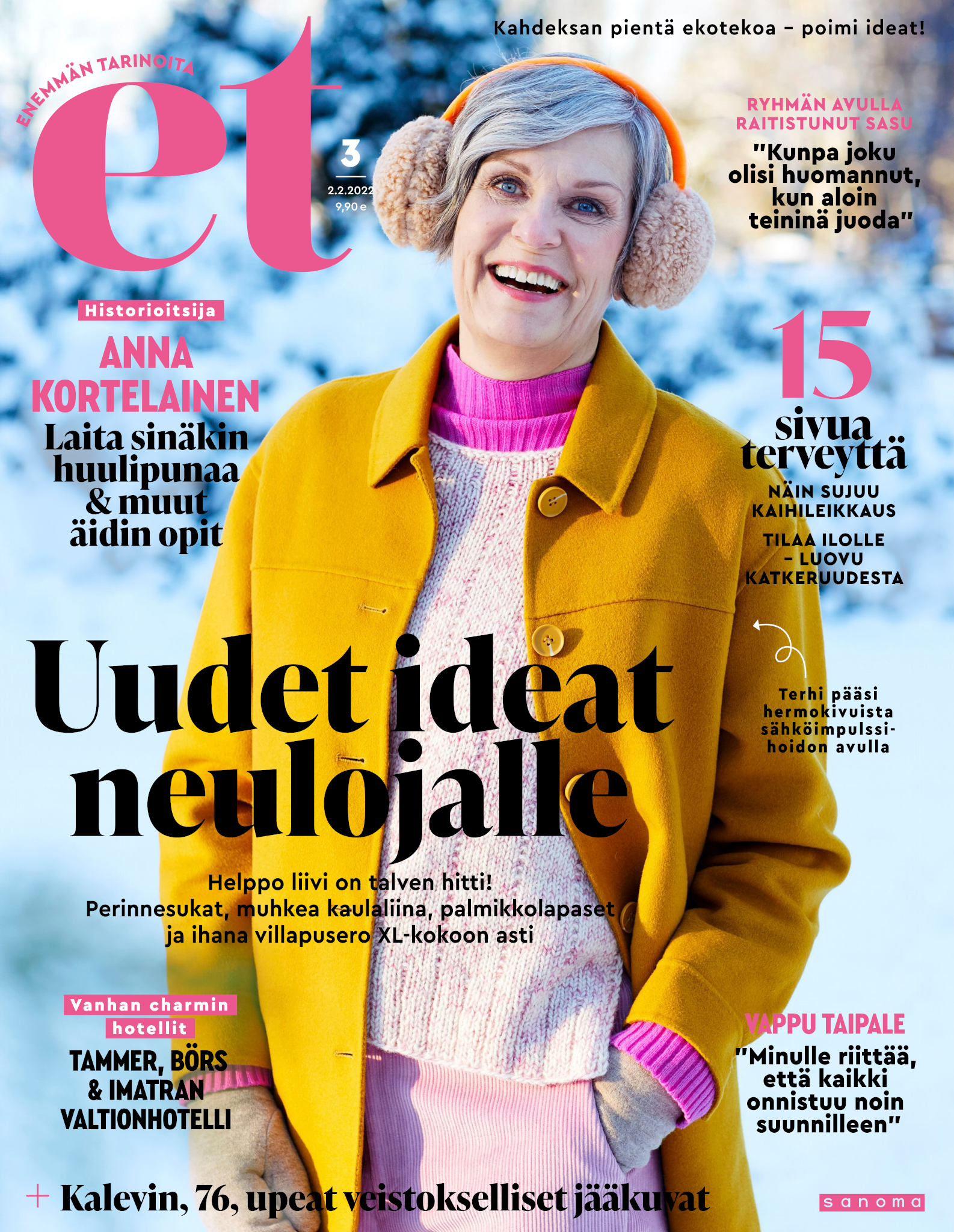 Tervetuloa mukaan ET:n innostavaan seuraan! Annamme vertaistukea ja tarjoamme hyötytiedon lisäksi nautinnollisia lukujuttuja kiinnostavista ihmisistä ja heidän elämänkohtaloistaan. ET kannustaa elämään omannäköistä elämää. Nautiskele arjen arvokkaista, pienistä asioista tai hanki uusia kokemuksia, löydä uusia kiinnostuksen kohteita tai löhöä sohvalla vaikka koko päivä! Kaikki käy! Me ET:ssä uskomme, että uteliaisuus elämän pieniä ja suuria asioita kohtaan pitää jokaisen päivän mielenkiintoisena ja mielen avoimena uusille kokemuksille. Uusi elämänvaihe on ihana ja jännittävä - otetaan siitä kaikki irti!
