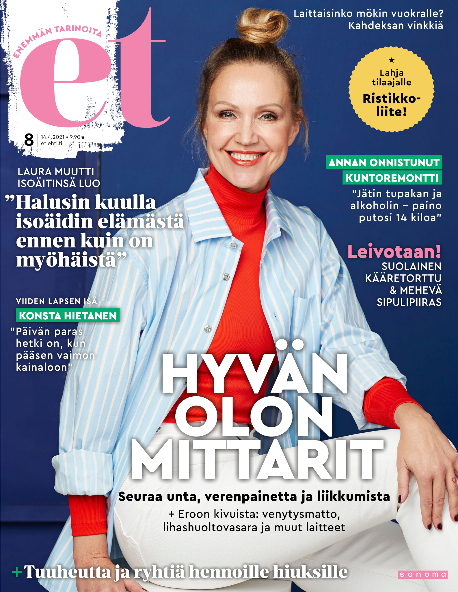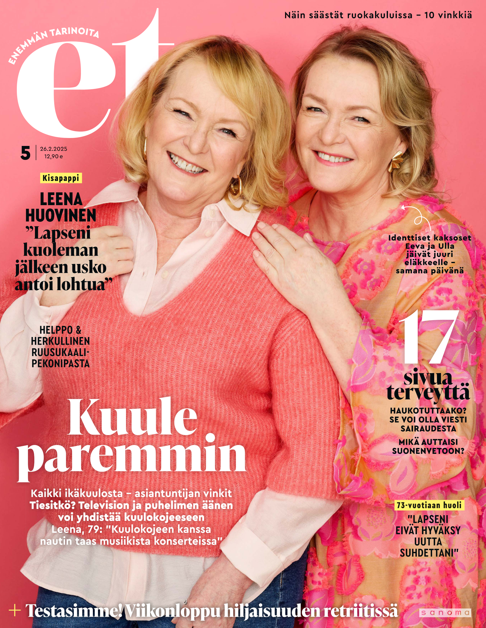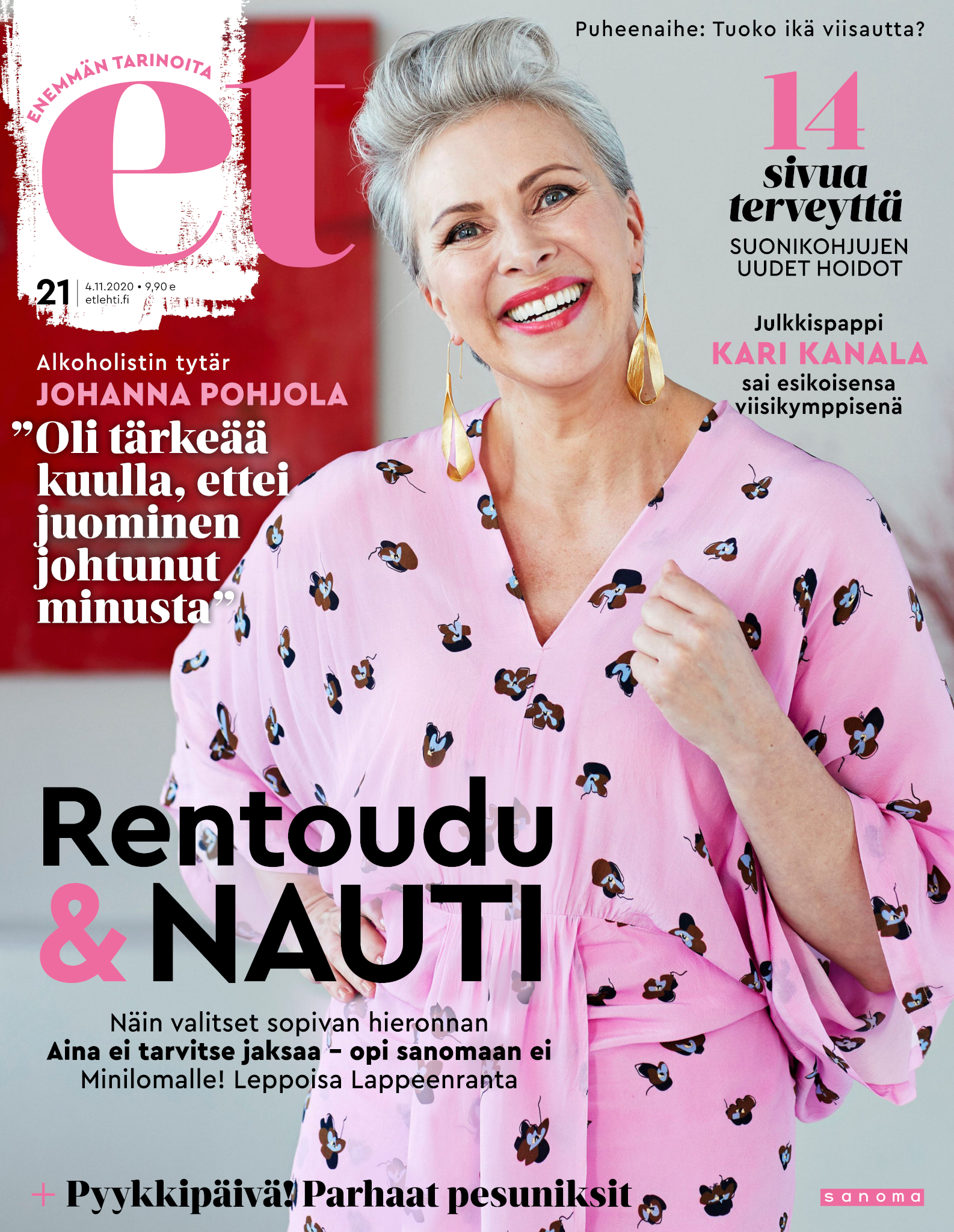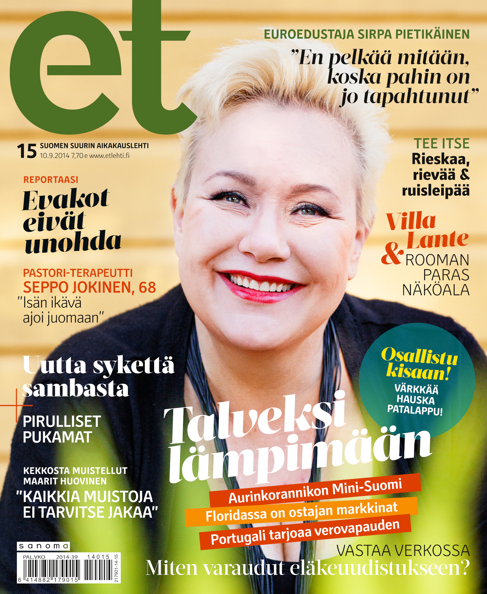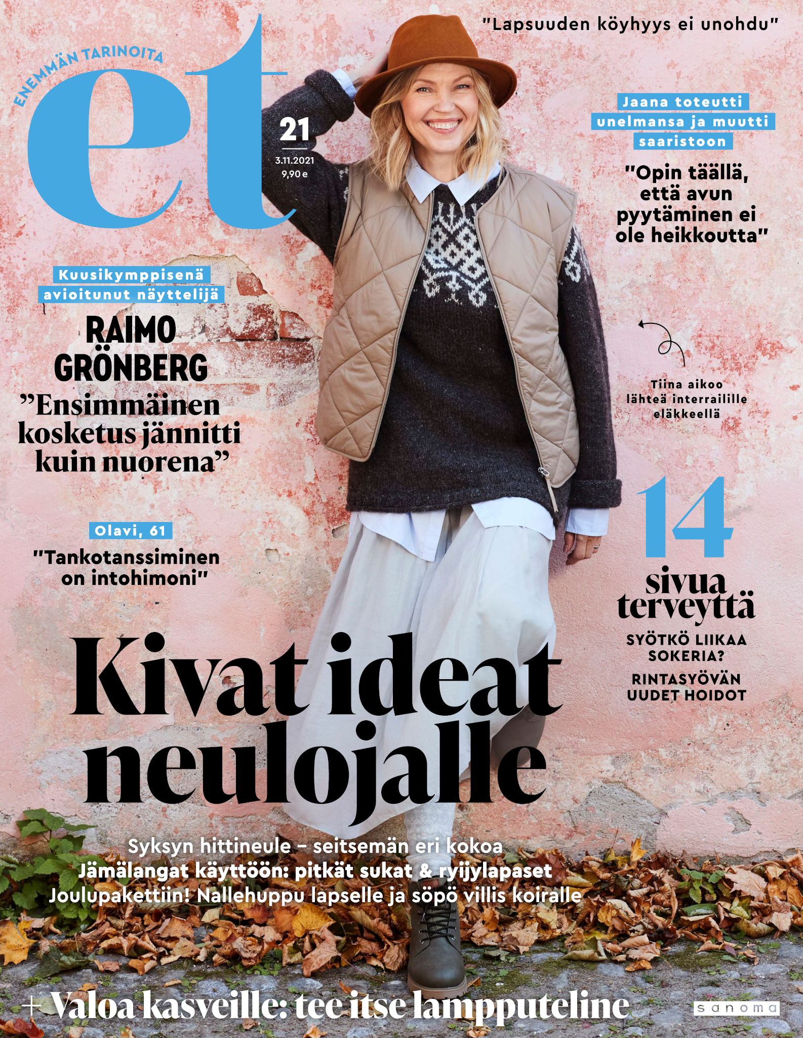 Tervetuloa mukaan ET:n innostavaan seuraan! Annamme vertaistukea ja tarjoamme hyötytiedon lisäksi nautinnollisia lukujuttuja kiinnostavista ihmisistä ja heidän elämänkohtaloistaan. ET kannustaa elämään omannäköistä elämää. Nautiskele arjen arvokkaista, pienistä asioista tai hanki uusia kokemuksia, löydä uusia kiinnostuksen kohteita tai löhöä sohvalla vaikka koko päivä! Kaikki käy! Me ET:ssä uskomme, että uteliaisuus elämän pieniä ja suuria asioita kohtaan pitää jokaisen päivän mielenkiintoisena ja mielen avoimena uusille kokemuksille. Uusi elämänvaihe on ihana ja jännittävä - otetaan siitä kaikki irti!