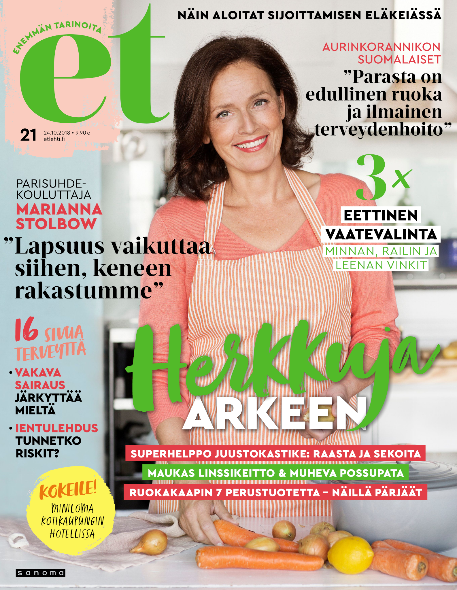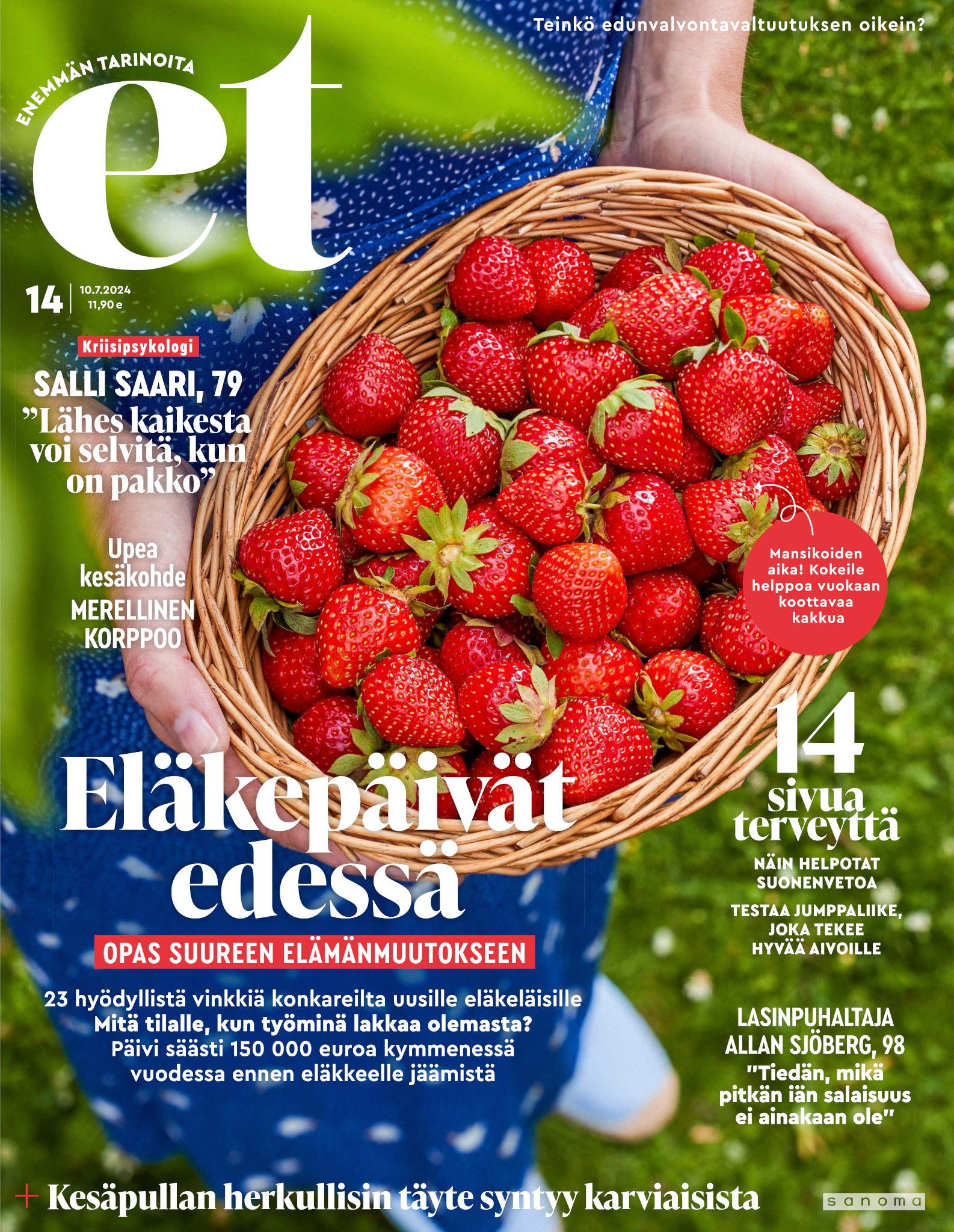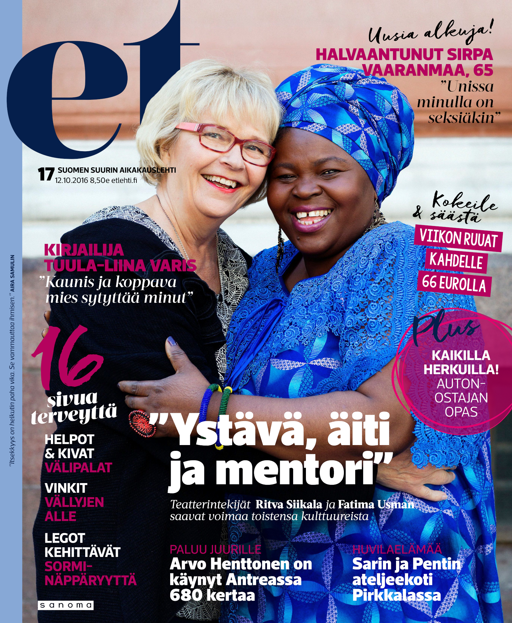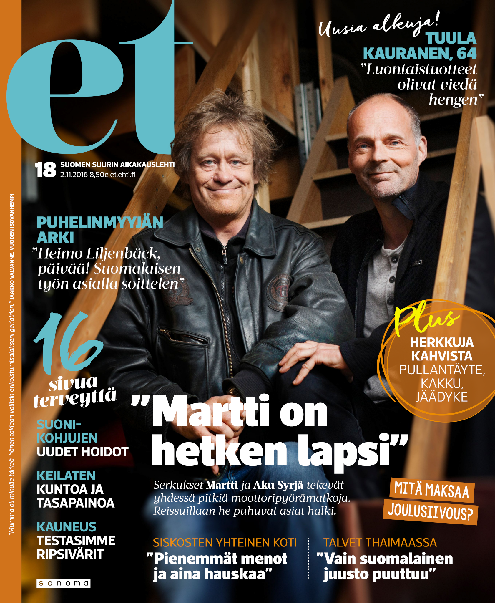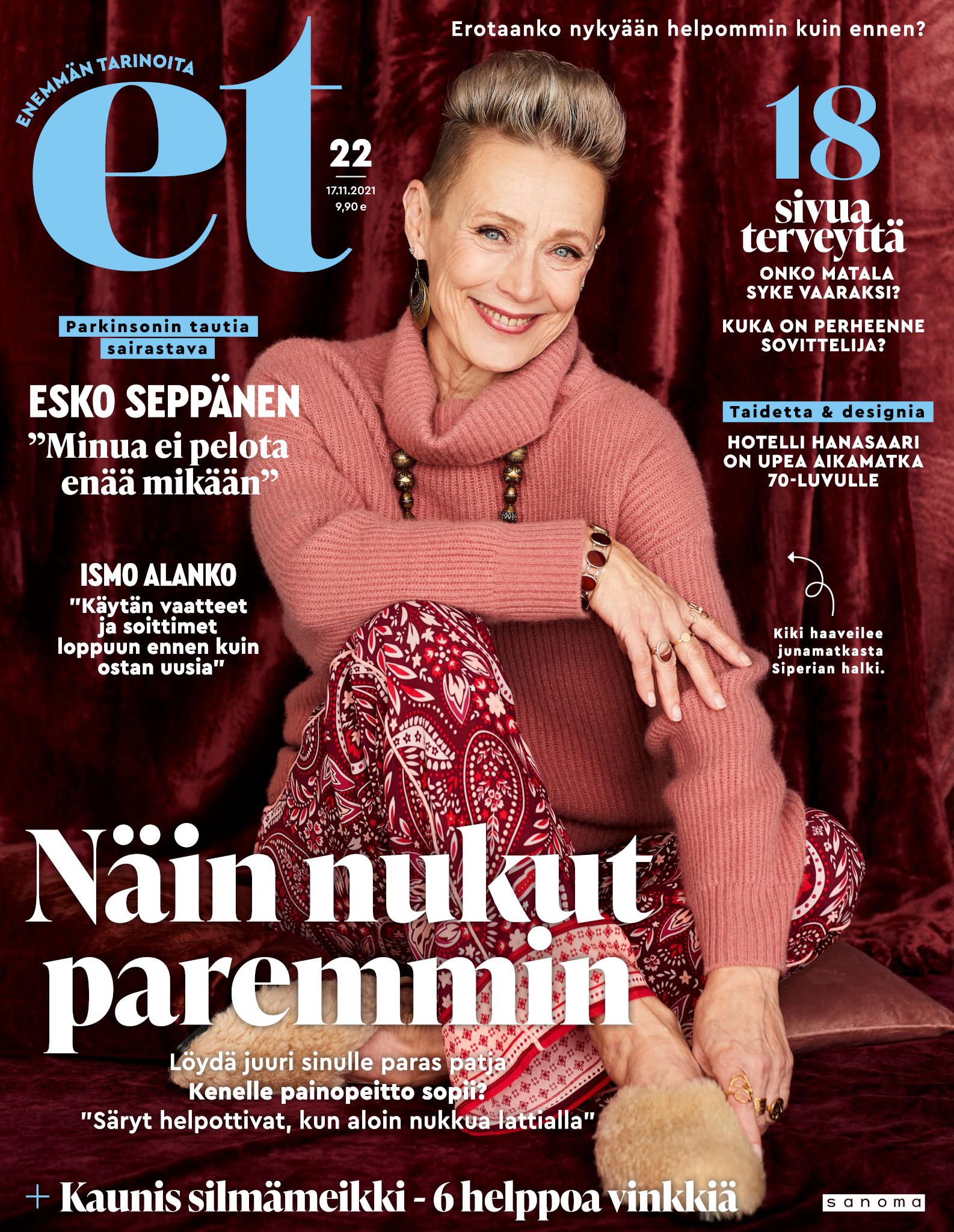 Tervetuloa mukaan ET:n innostavaan seuraan! Annamme vertaistukea ja tarjoamme hyötytiedon lisäksi nautinnollisia lukujuttuja kiinnostavista ihmisistä ja heidän elämänkohtaloistaan. ET kannustaa elämään omannäköistä elämää. Nautiskele arjen arvokkaista, pienistä asioista tai hanki uusia kokemuksia, löydä uusia kiinnostuksen kohteita tai löhöä sohvalla vaikka koko päivä! Kaikki käy! Me ET:ssä uskomme, että uteliaisuus elämän pieniä ja suuria asioita kohtaan pitää jokaisen päivän mielenkiintoisena ja mielen avoimena uusille kokemuksille. Uusi elämänvaihe on ihana ja jännittävä - otetaan siitä kaikki irti!