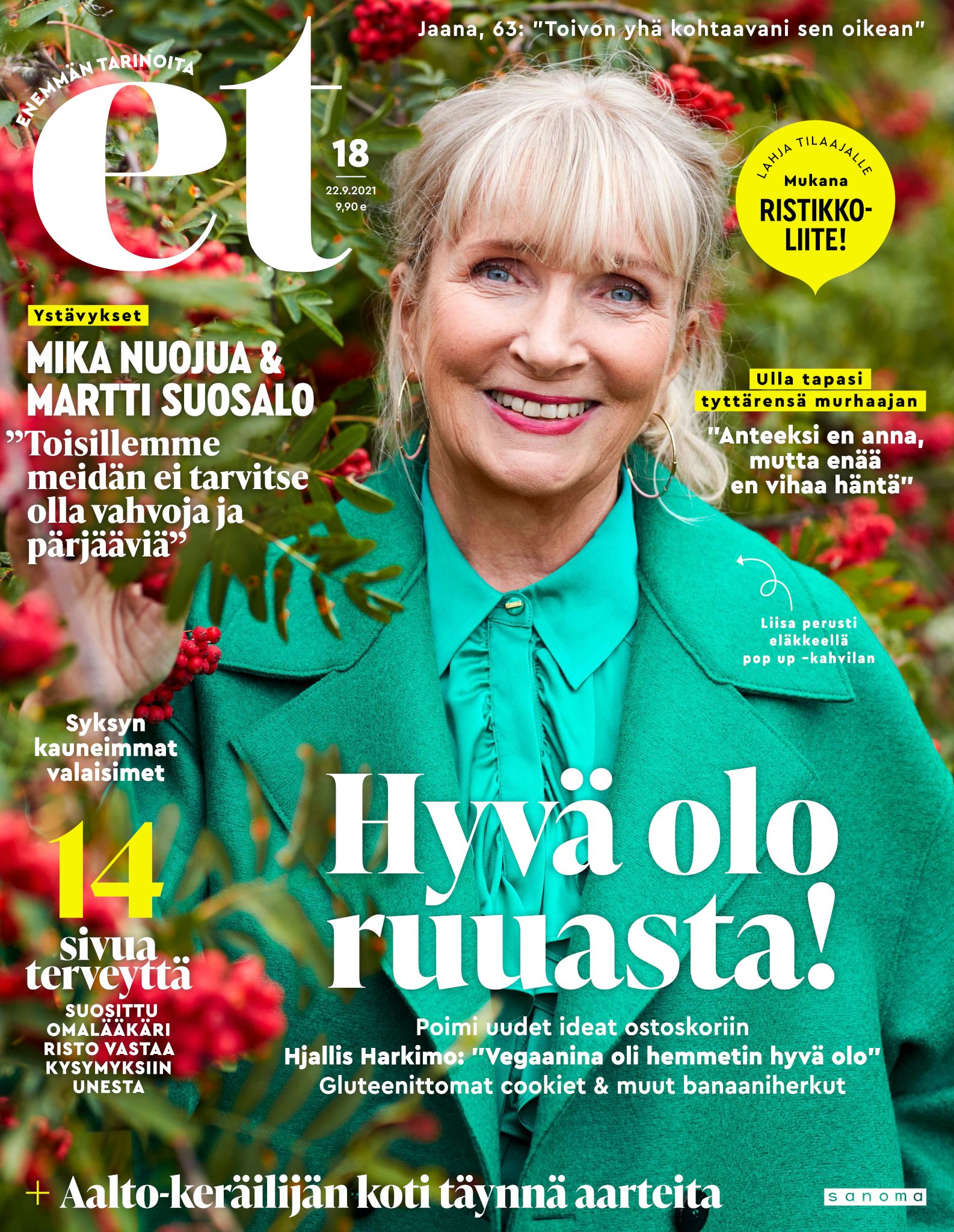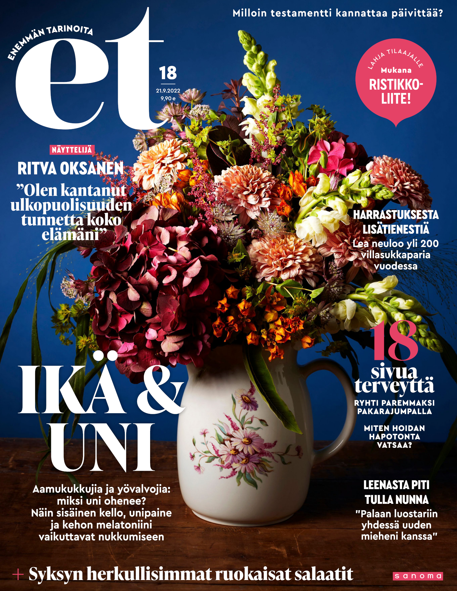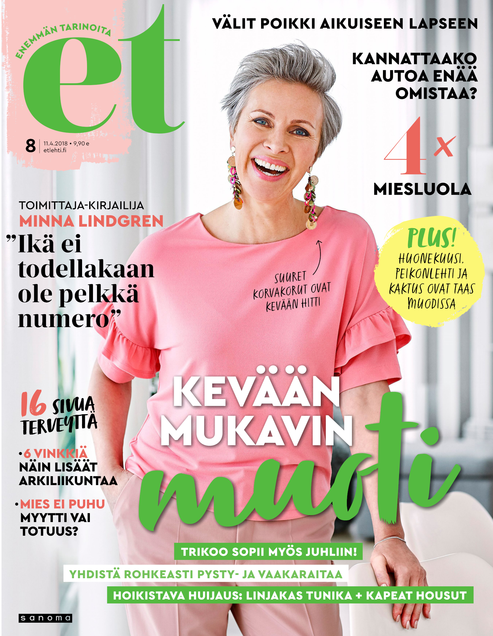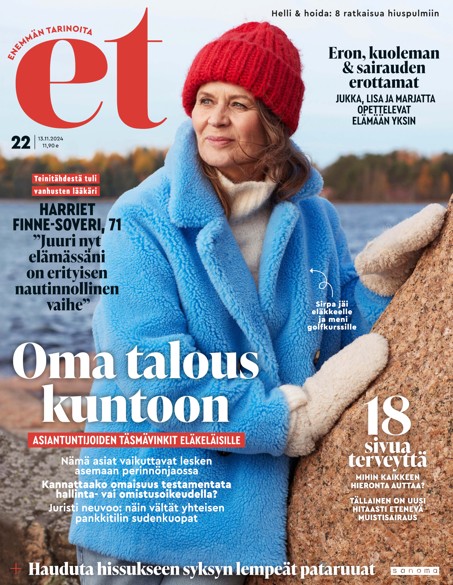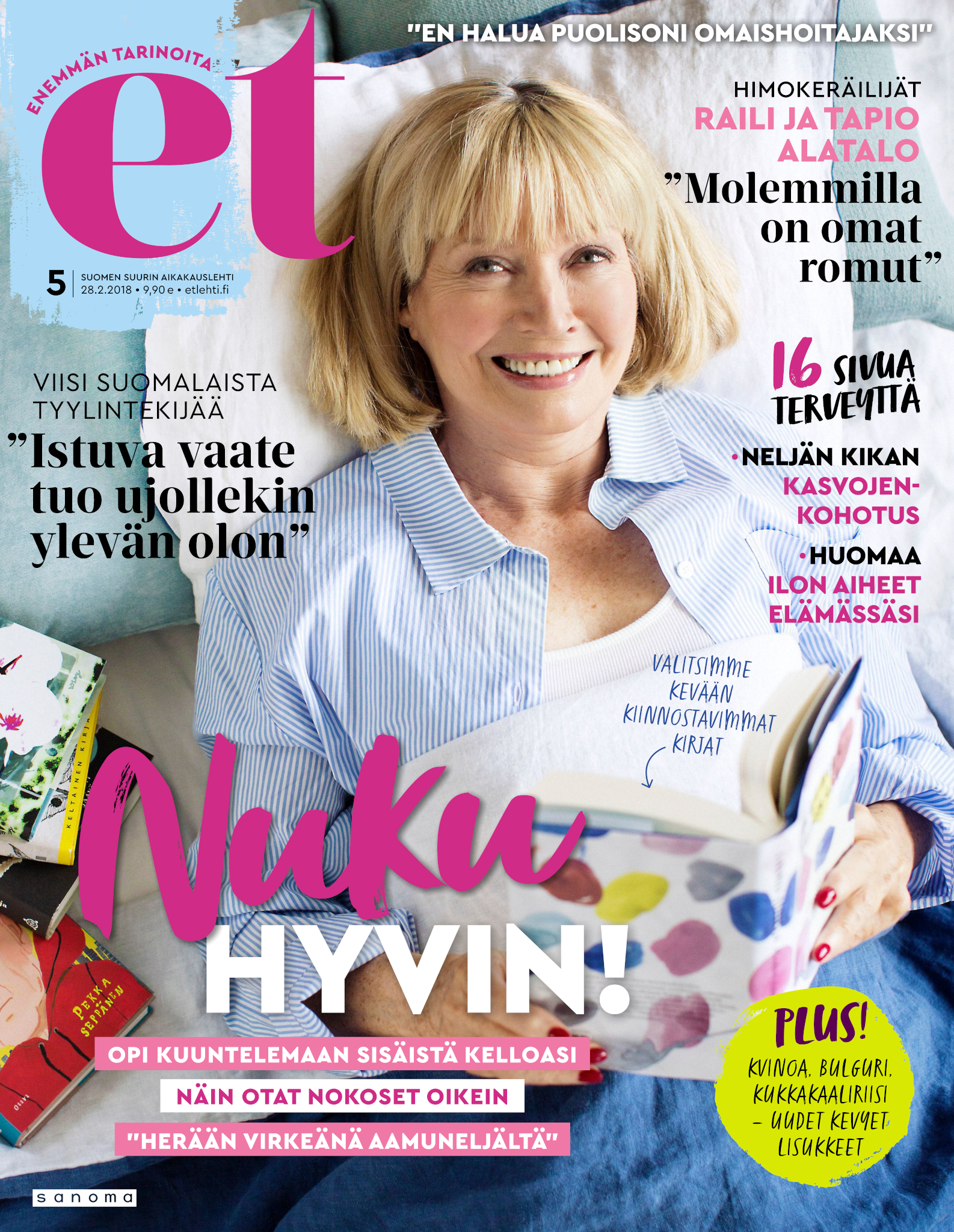 Tervetuloa mukaan ET:n innostavaan seuraan! Annamme vertaistukea ja tarjoamme hyötytiedon lisäksi nautinnollisia lukujuttuja kiinnostavista ihmisistä ja heidän elämänkohtaloistaan. ET kannustaa elämään omannäköistä elämää. Nautiskele arjen arvokkaista, pienistä asioista tai hanki uusia kokemuksia, löydä uusia kiinnostuksen kohteita tai löhöä sohvalla vaikka koko päivä! Kaikki käy! Me ET:ssä uskomme, että uteliaisuus elämän pieniä ja suuria asioita kohtaan pitää jokaisen päivän mielenkiintoisena ja mielen avoimena uusille kokemuksille. Uusi elämänvaihe on ihana ja jännittävä - otetaan siitä kaikki irti!