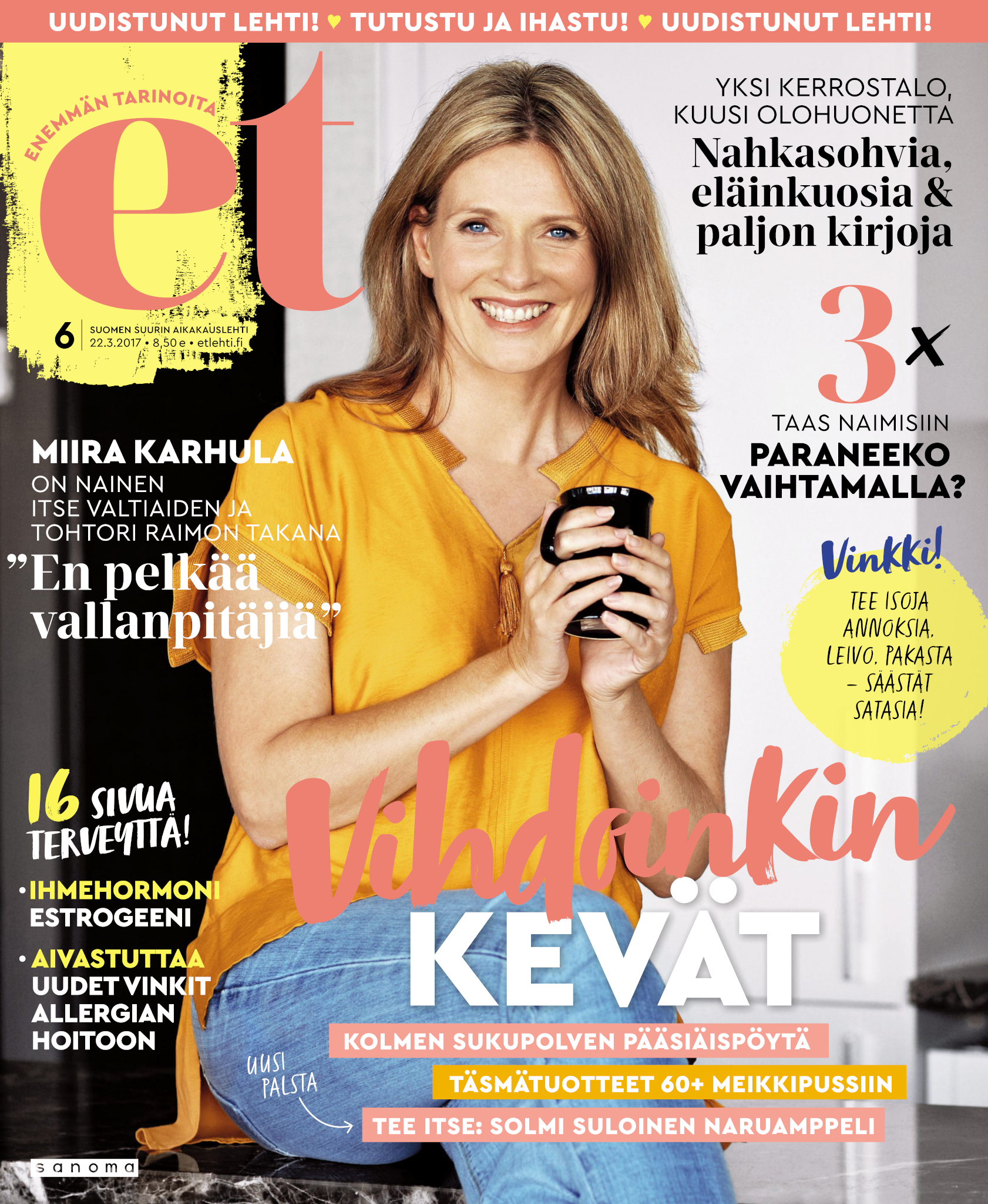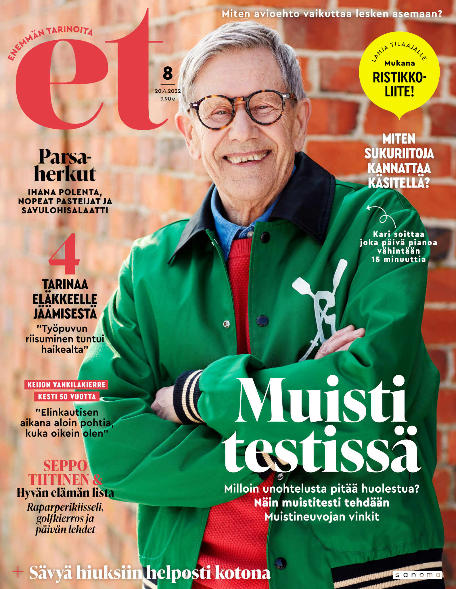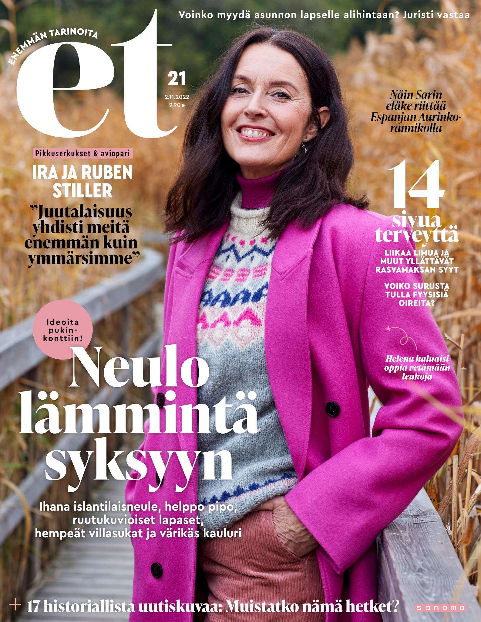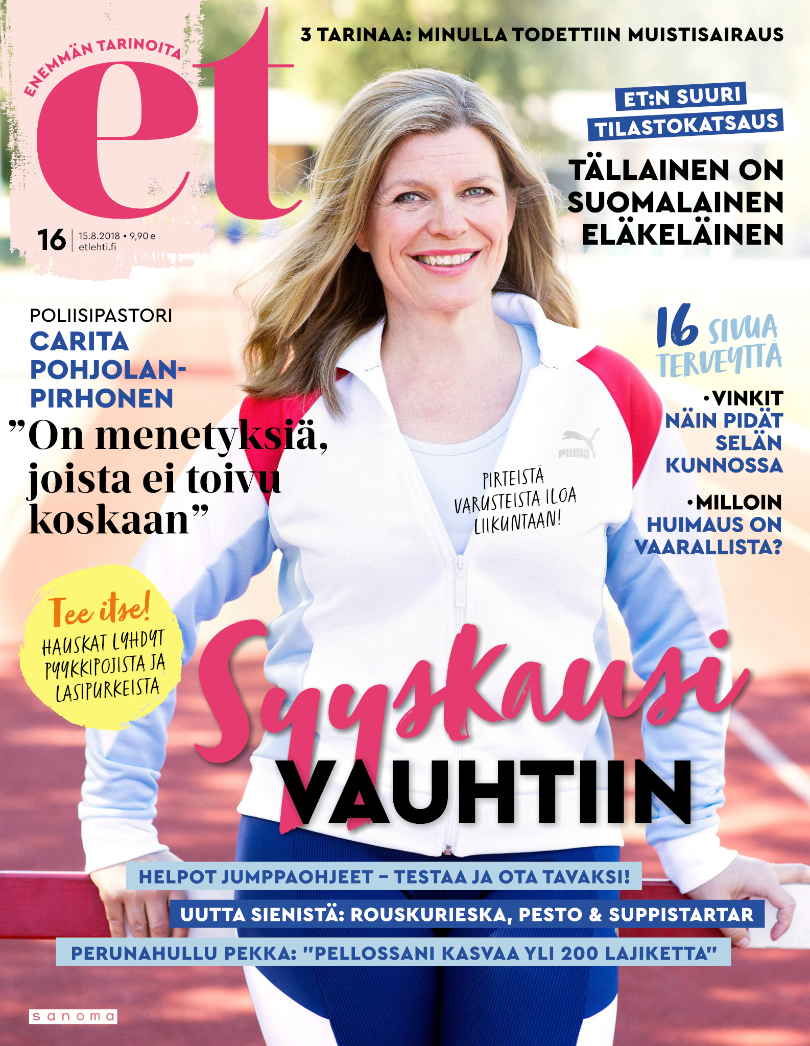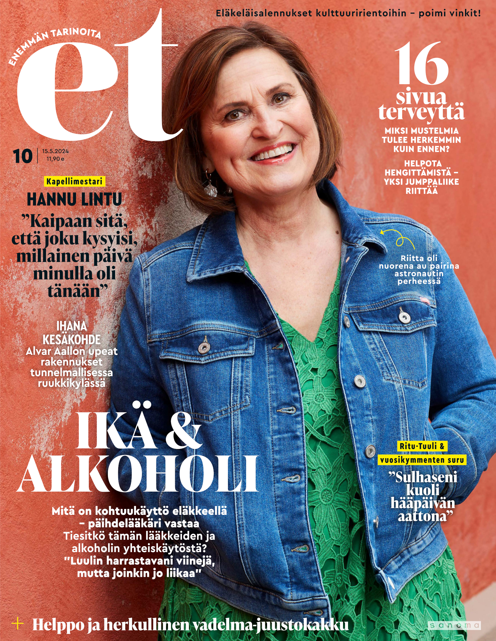 Tervetuloa mukaan ET:n innostavaan seuraan! Annamme vertaistukea ja tarjoamme hyötytiedon lisäksi nautinnollisia lukujuttuja kiinnostavista ihmisistä ja heidän elämänkohtaloistaan. ET kannustaa elämään omannäköistä elämää. Nautiskele arjen arvokkaista, pienistä asioista tai hanki uusia kokemuksia, löydä uusia kiinnostuksen kohteita tai löhöä sohvalla vaikka koko päivä! Kaikki käy! Me ET:ssä uskomme, että uteliaisuus elämän pieniä ja suuria asioita kohtaan pitää jokaisen päivän mielenkiintoisena ja mielen avoimena uusille kokemuksille. Uusi elämänvaihe on ihana ja jännittävä - otetaan siitä kaikki irti!