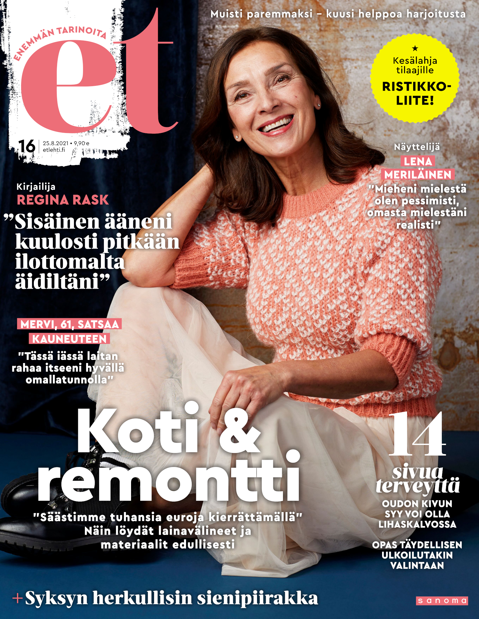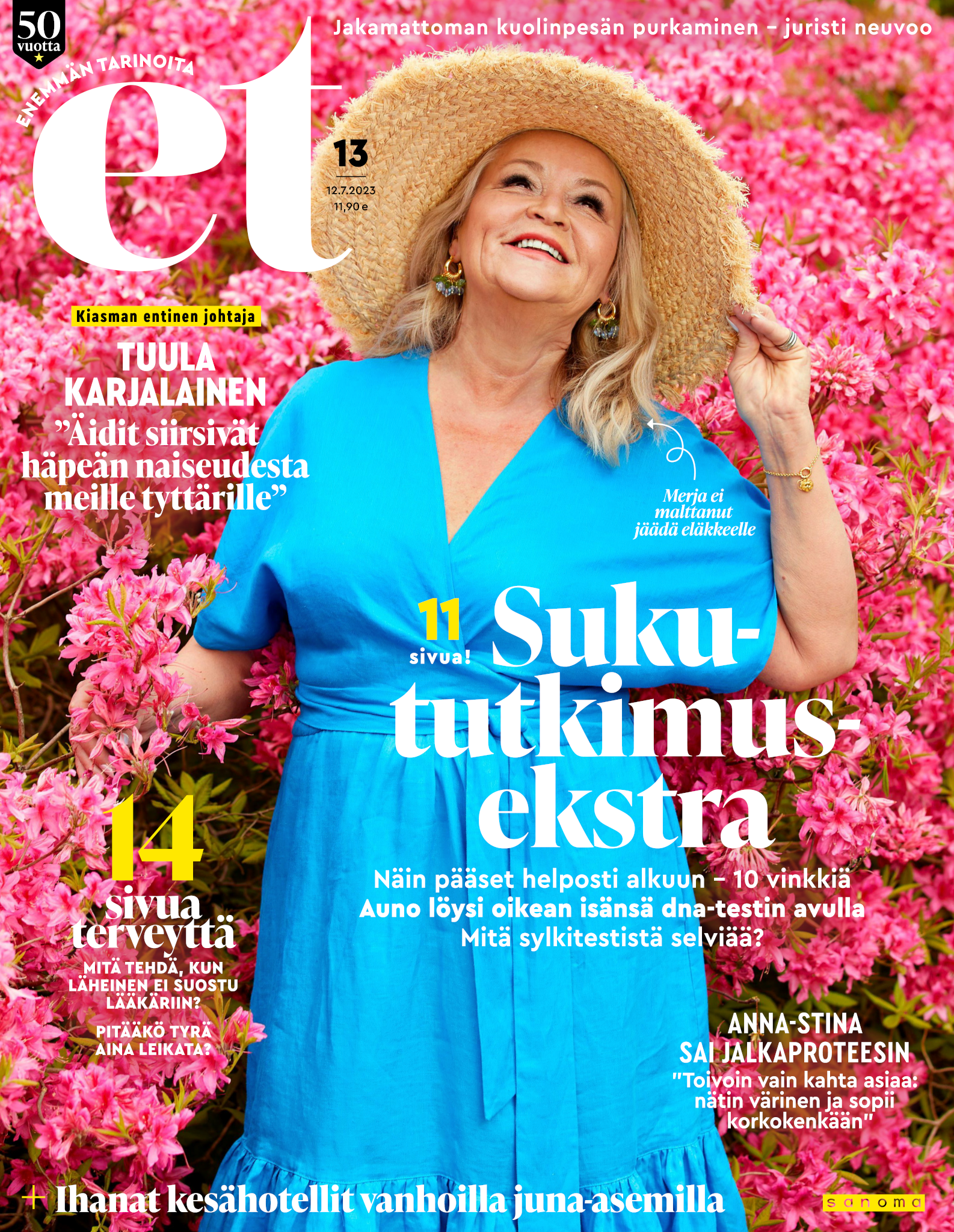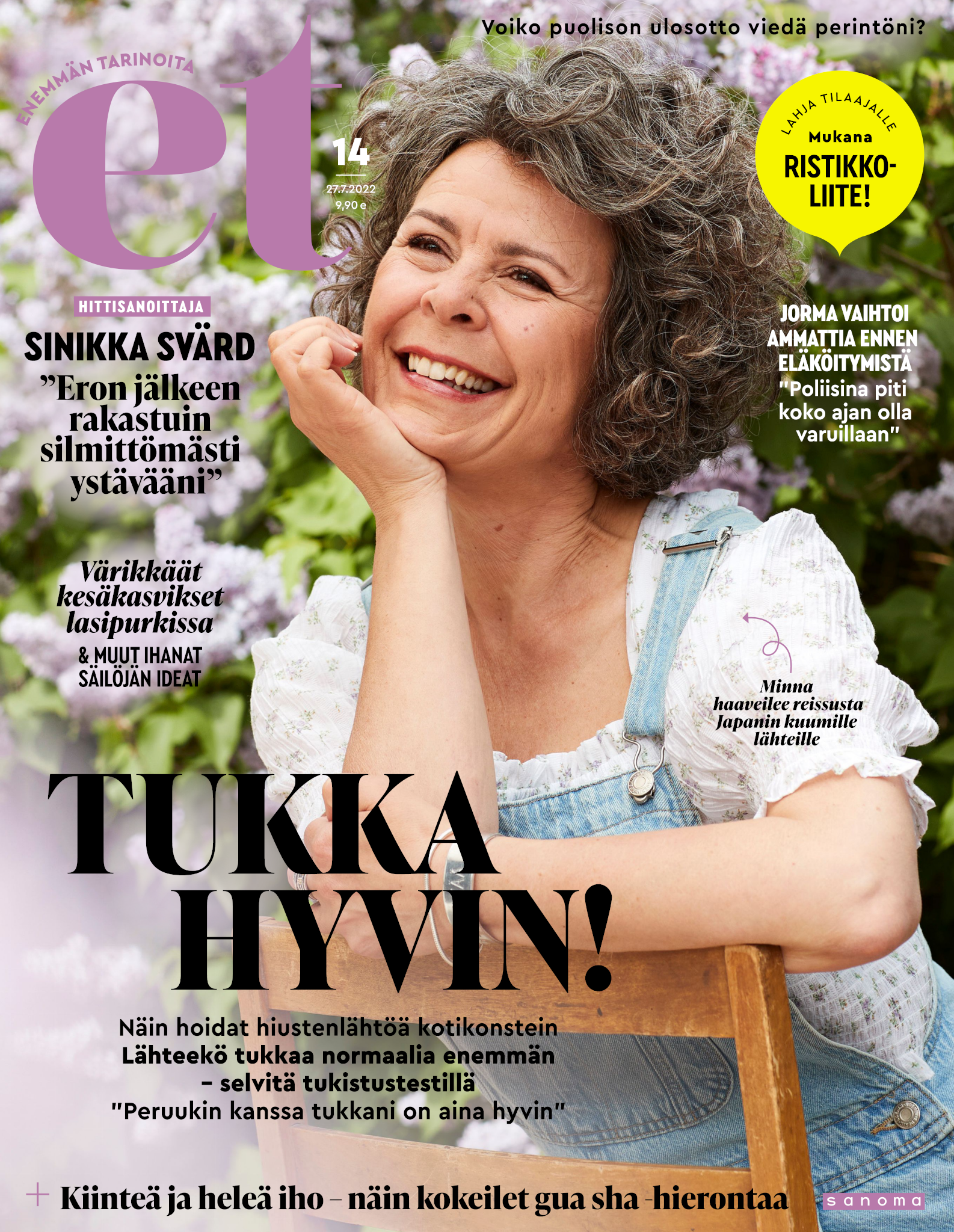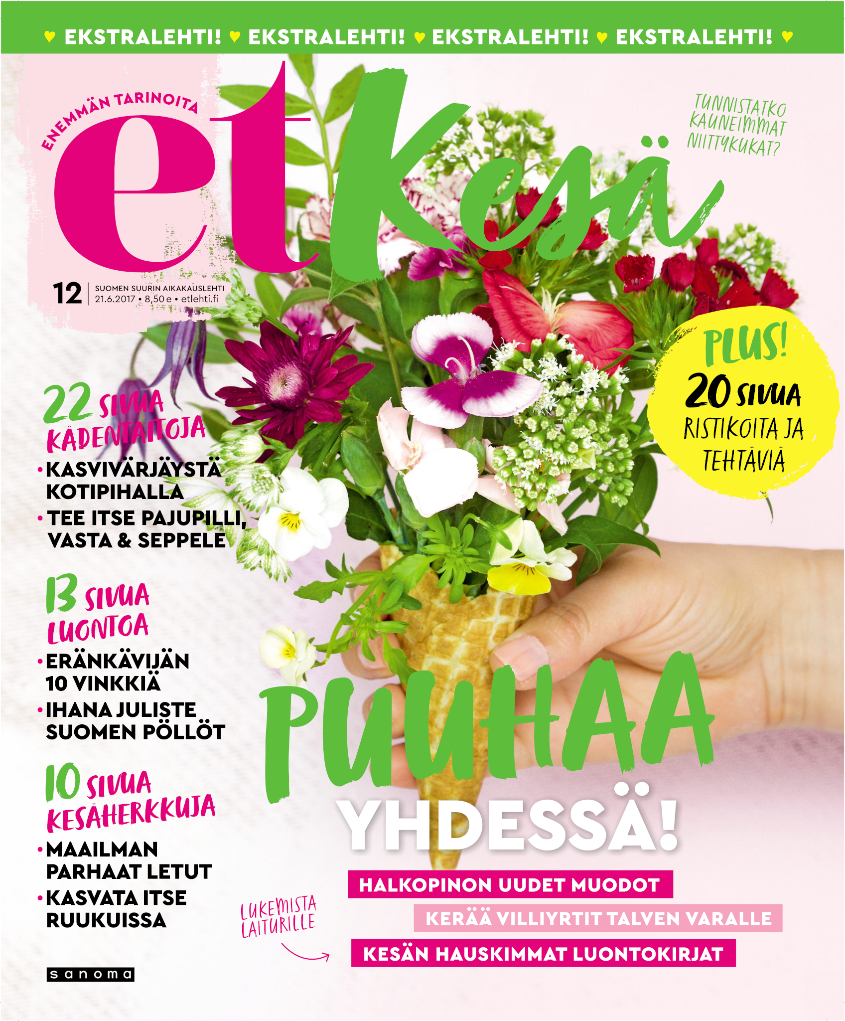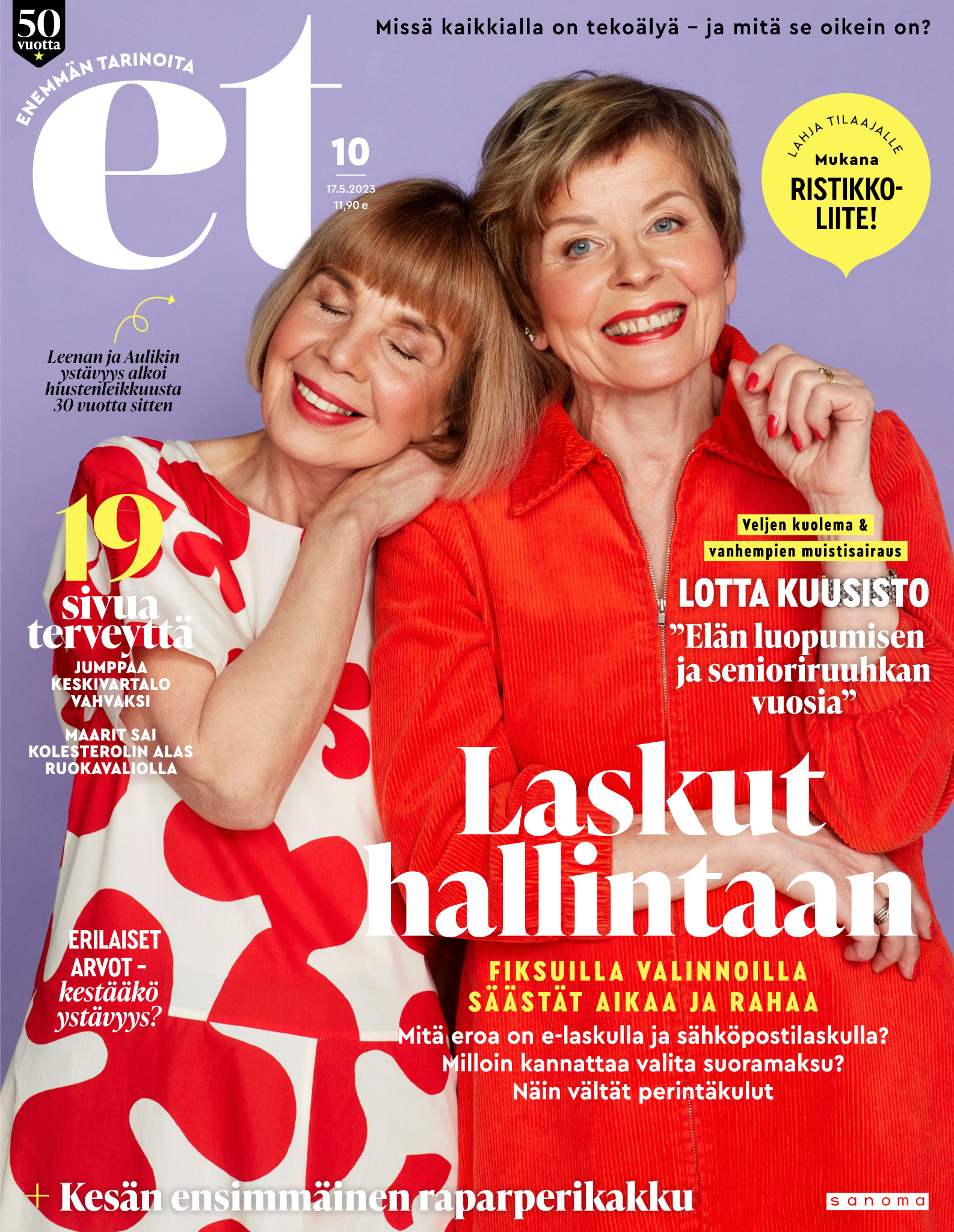 Tervetuloa mukaan ET:n innostavaan seuraan! Annamme vertaistukea ja tarjoamme hyötytiedon lisäksi nautinnollisia lukujuttuja kiinnostavista ihmisistä ja heidän elämänkohtaloistaan. ET kannustaa elämään omannäköistä elämää. Nautiskele arjen arvokkaista, pienistä asioista tai hanki uusia kokemuksia, löydä uusia kiinnostuksen kohteita tai löhöä sohvalla vaikka koko päivä! Kaikki käy! Me ET:ssä uskomme, että uteliaisuus elämän pieniä ja suuria asioita kohtaan pitää jokaisen päivän mielenkiintoisena ja mielen avoimena uusille kokemuksille. Uusi elämänvaihe on ihana ja jännittävä - otetaan siitä kaikki irti!