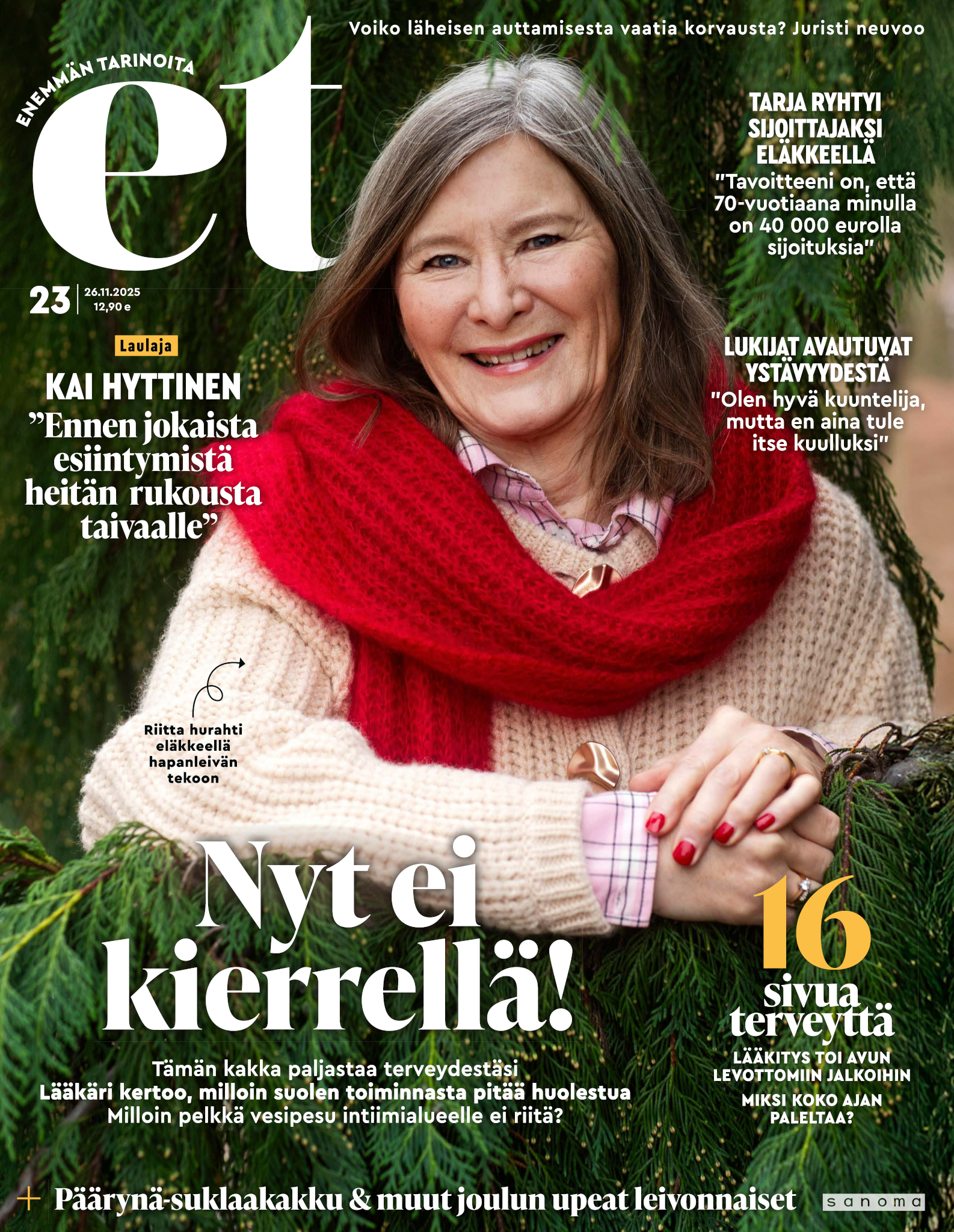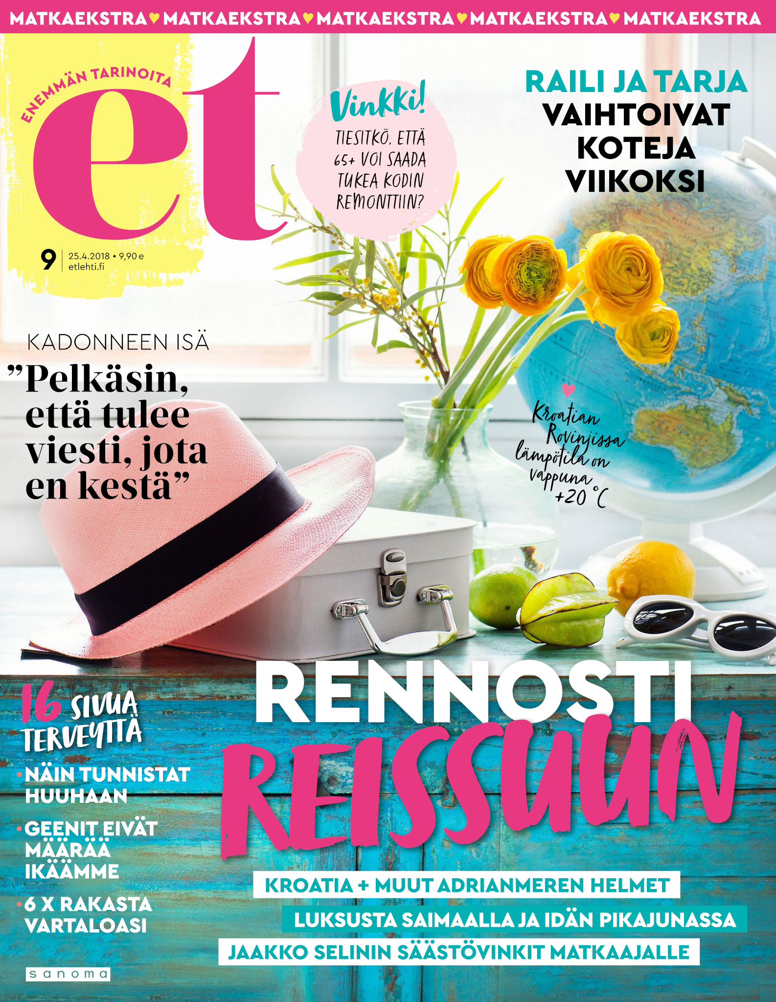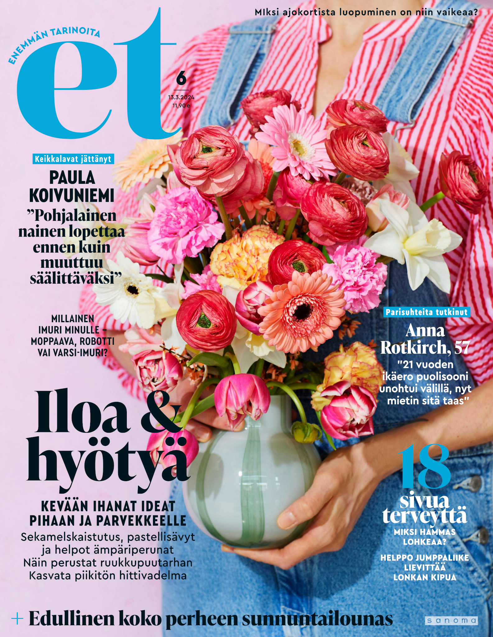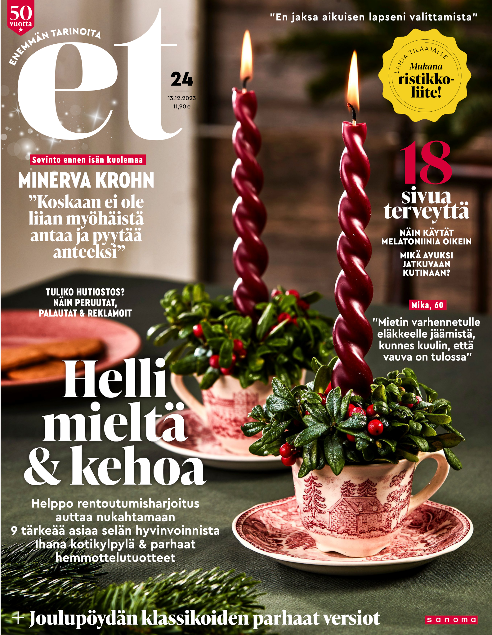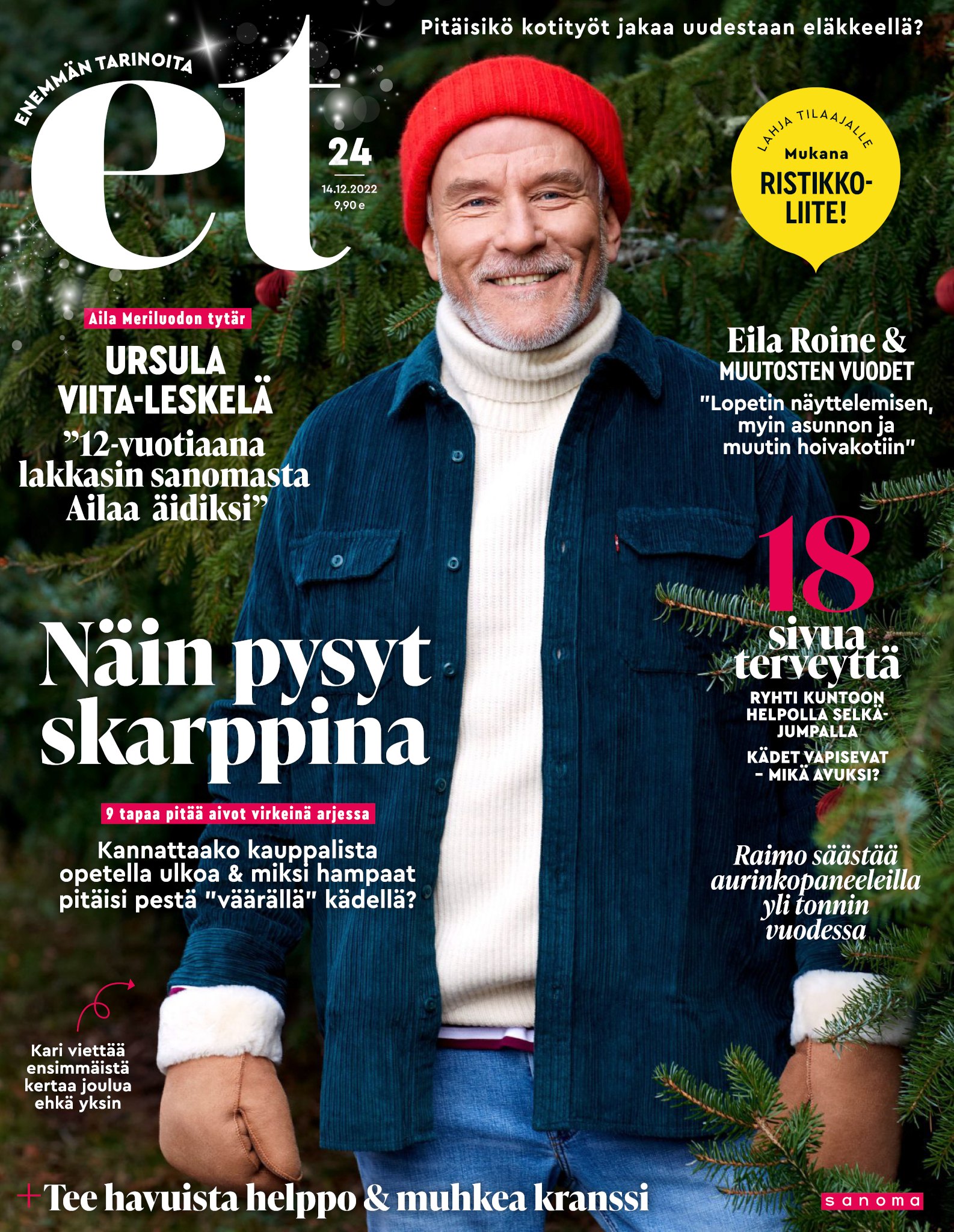 Tervetuloa mukaan ET:n innostavaan seuraan! Annamme vertaistukea ja tarjoamme hyötytiedon lisäksi nautinnollisia lukujuttuja kiinnostavista ihmisistä ja heidän elämänkohtaloistaan. ET kannustaa elämään omannäköistä elämää. Nautiskele arjen arvokkaista, pienistä asioista tai hanki uusia kokemuksia, löydä uusia kiinnostuksen kohteita tai löhöä sohvalla vaikka koko päivä! Kaikki käy! Me ET:ssä uskomme, että uteliaisuus elämän pieniä ja suuria asioita kohtaan pitää jokaisen päivän mielenkiintoisena ja mielen avoimena uusille kokemuksille. Uusi elämänvaihe on ihana ja jännittävä - otetaan siitä kaikki irti!