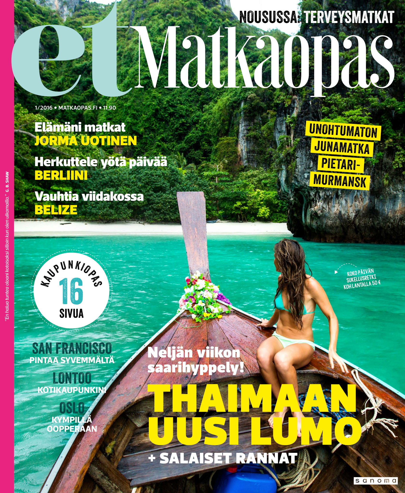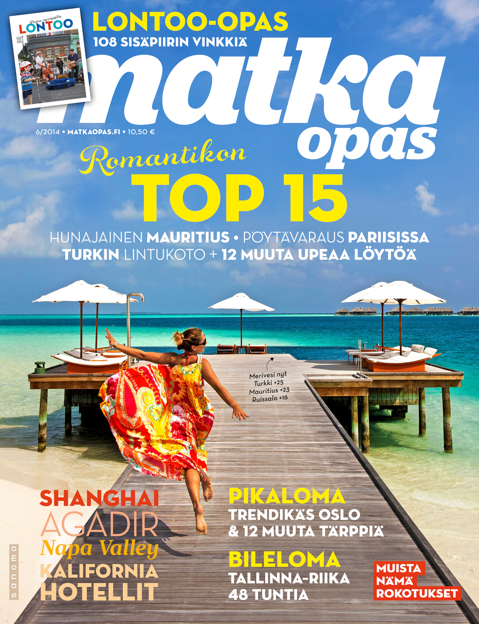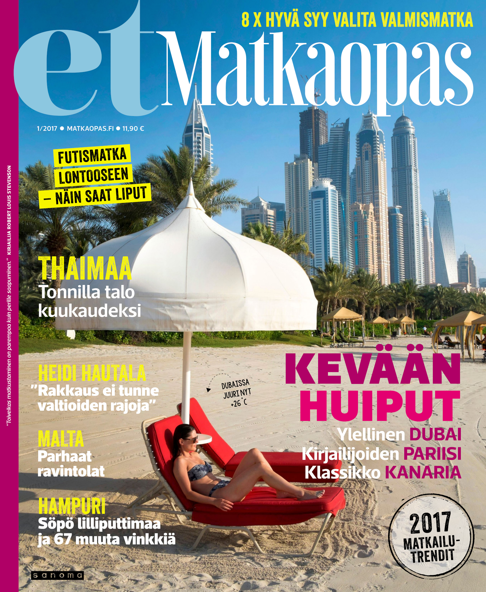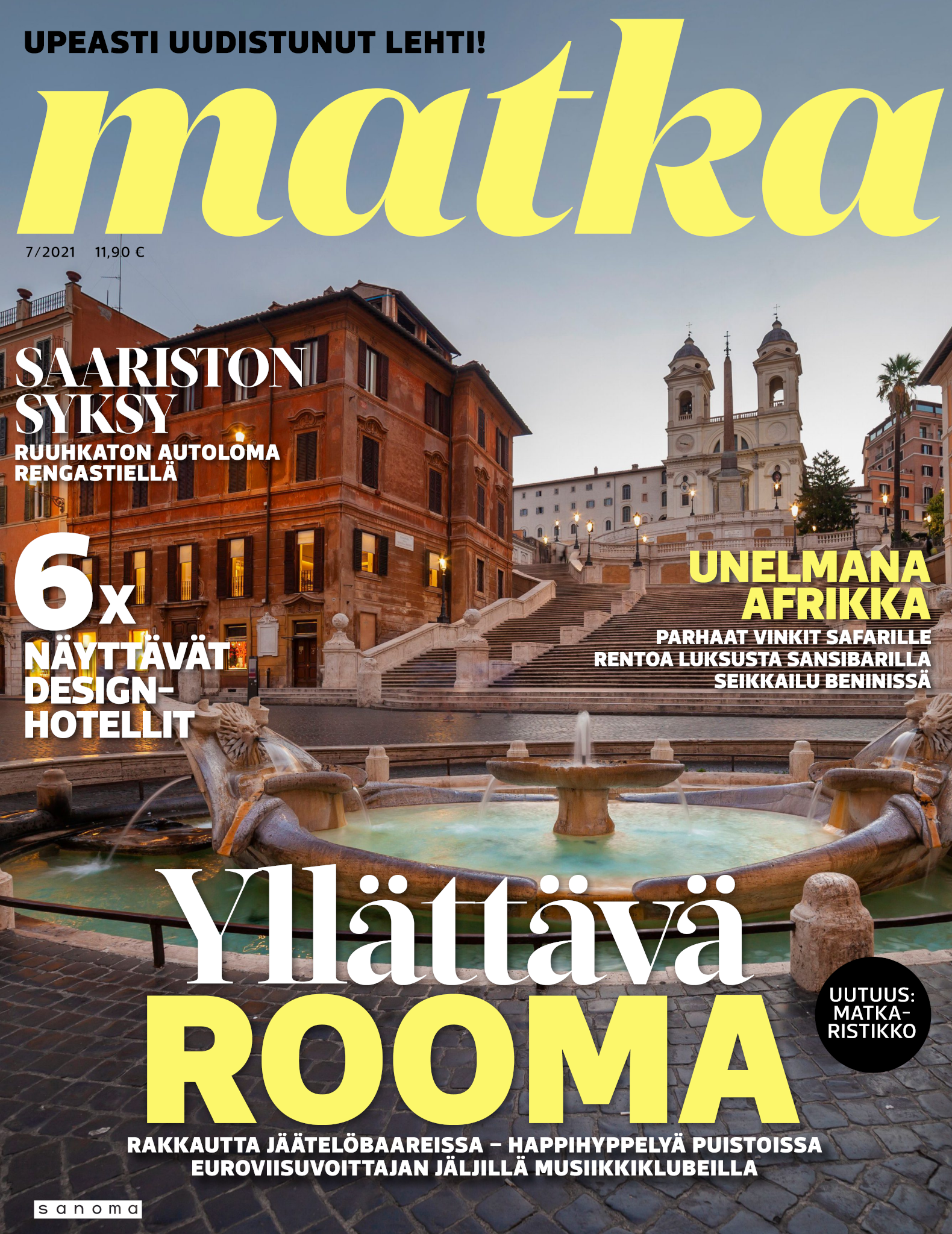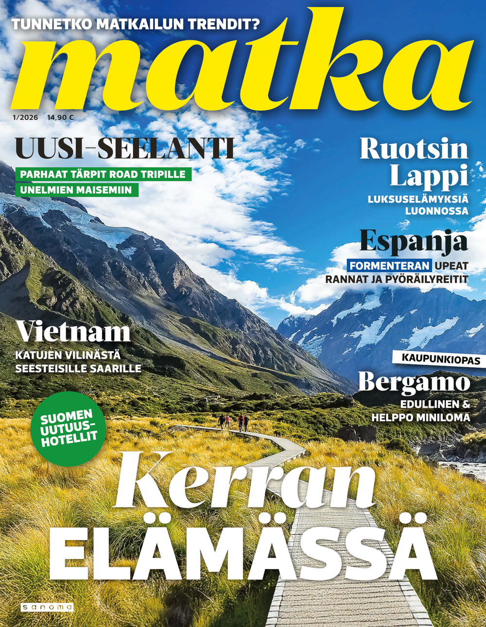 Upea Matka-lehti auttaa unelmoimaan juuri siitä seuraavasta matkasta ja antaa vinkit tuleviin reissuihin. Olipa sitten kohteesi kotimaassa tai ulkomailla, kerromme ja näytämme sinulle ihanien ja kiinnostavien kohteiden parhaat palat. Matka-lehdessä on matkakohteita jokaiselle kukkarolle ja erilaisille matkaajille. Uuutuuskohteita, kaupunki- ja rantalomia, räätälöityjä matkoja ja unelmien kaukomatkoja. Ja tottakai myös upeita nojatuolimatkoja! Jokaiselle jotakin! Matka-lehden avulla voit aloittaa seuraavien matkojen suunnittelun jo kotisohvallasi. Onko seuraava kohteesi lähimatka? Haluatko nauttia Lapin lumosta? Vai kutkuttaako kaukomatka jo? Matka-lehdestä löydät nämä kaikki ja paljon muuta. Matka - minne seuraavaksi?